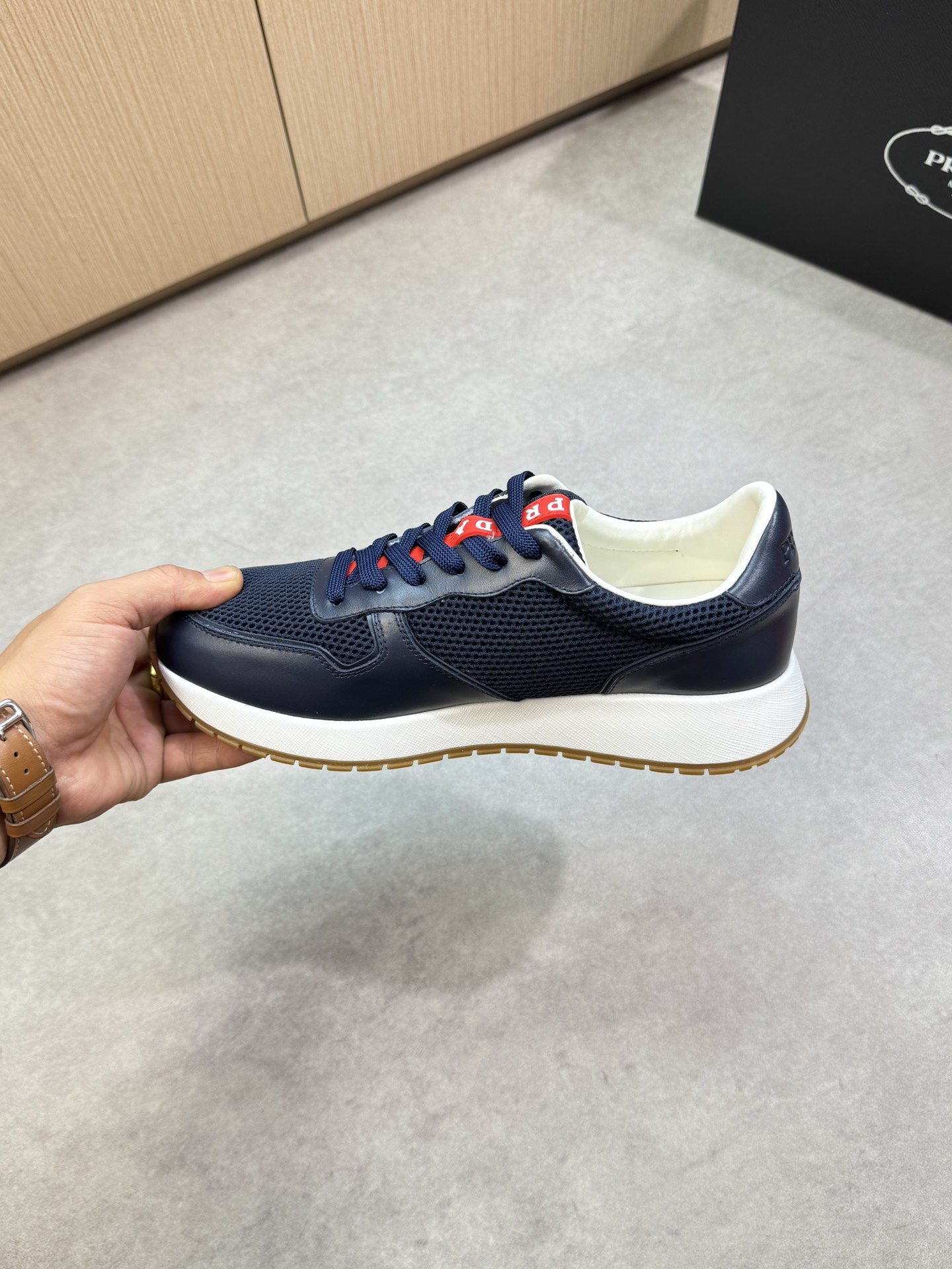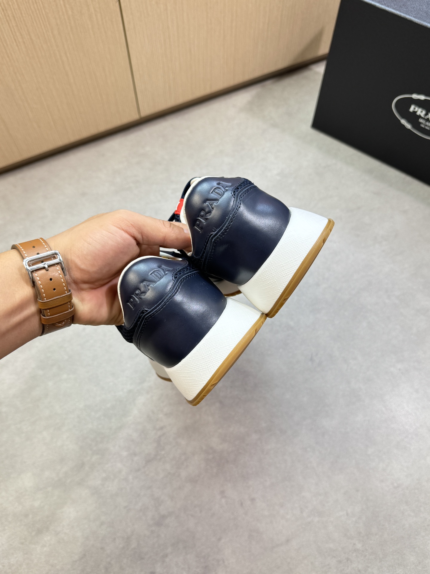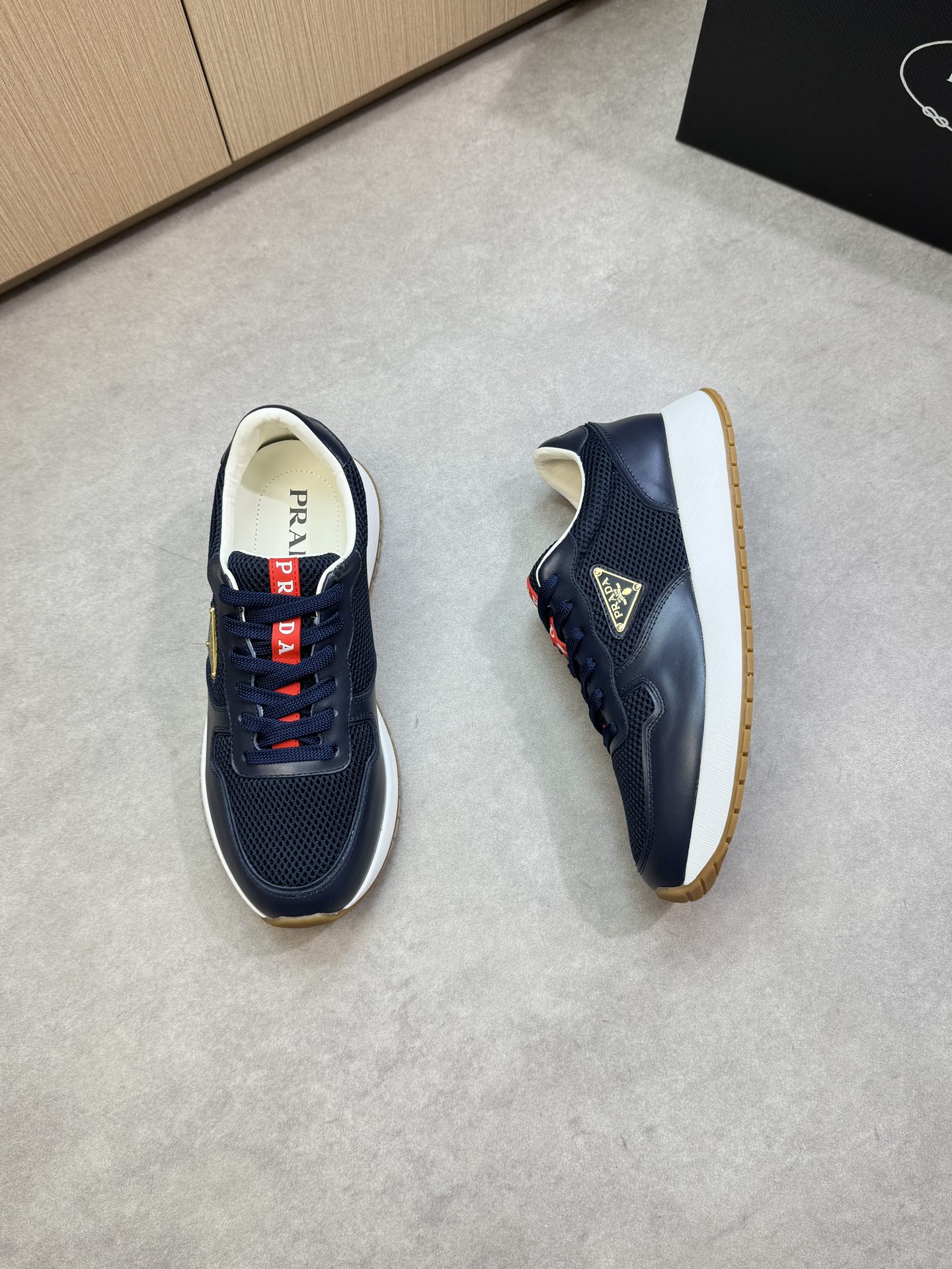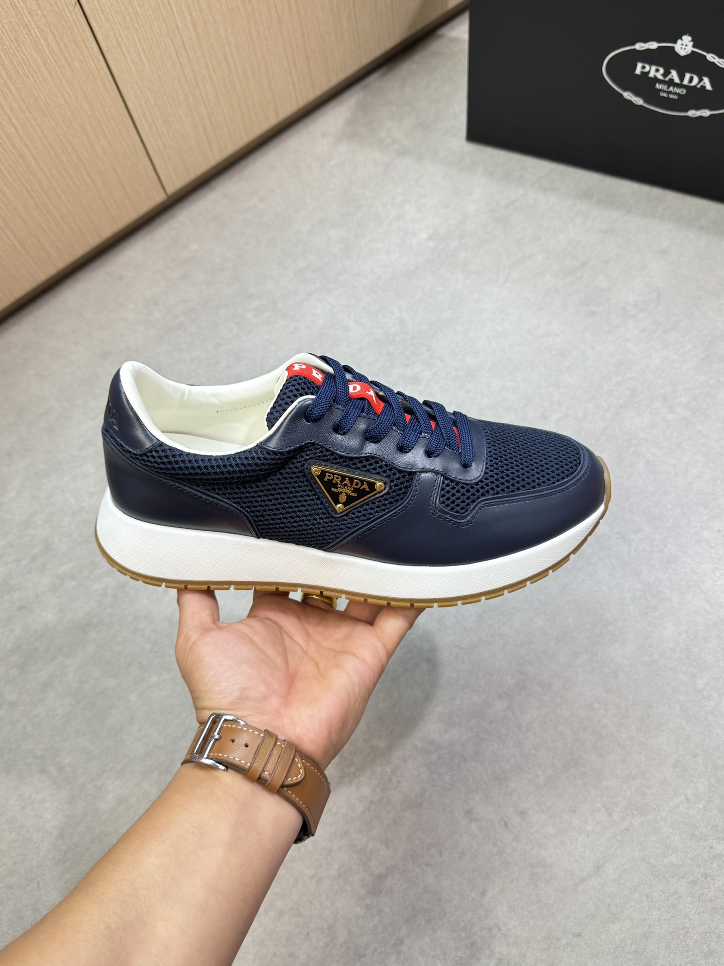 這款鞋子是AAAAA 1:1 質量(非常棒). 使用了和原版一模一樣的材料. 商標部分也保持了和普拉達/Prada一樣. 圖片拍攝是實物鞋子拍攝, 您所收到的實物保證和我們圖片一模一樣.