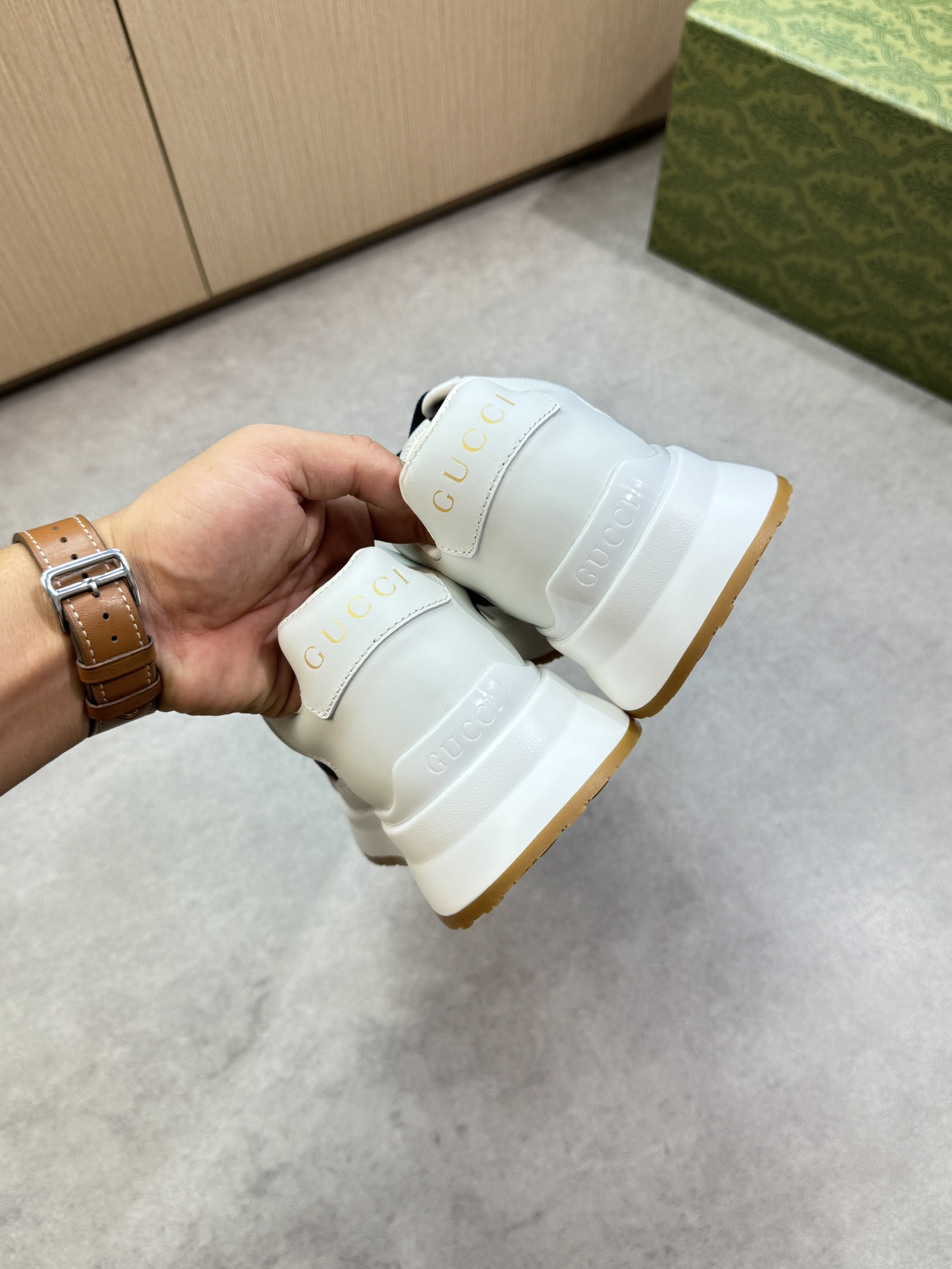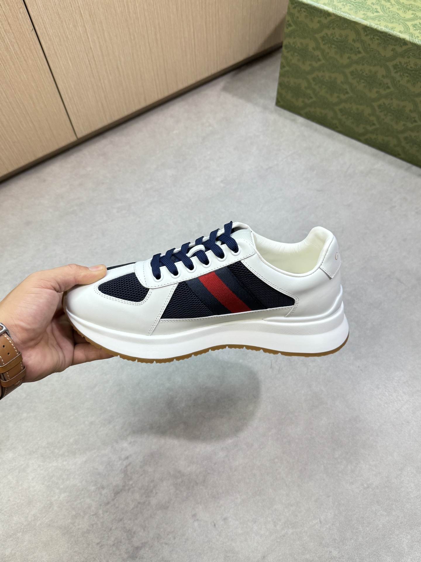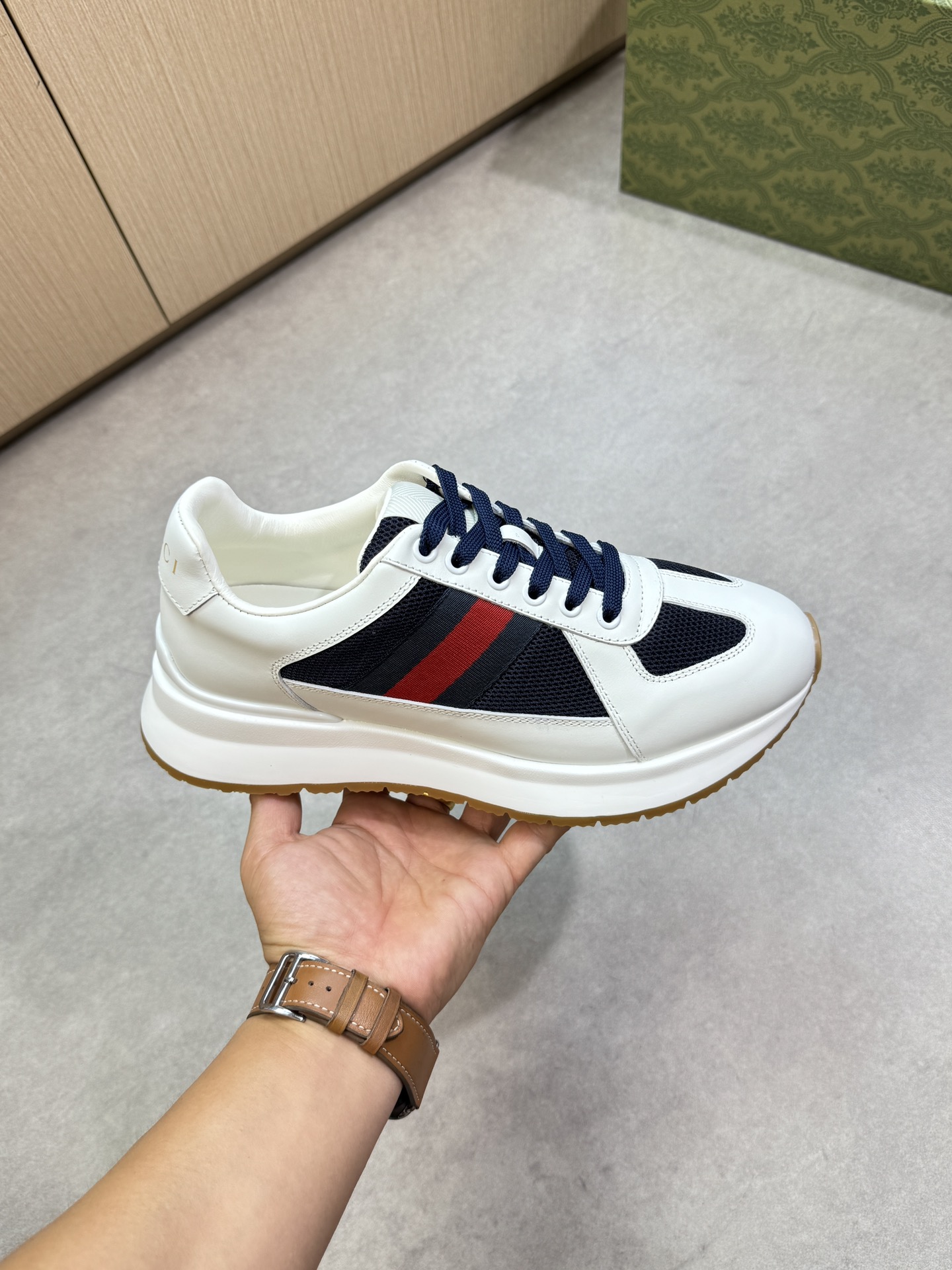 這款鞋子是AAAAA 1:1 質量(非常棒). 使用了和原版一模一樣的材料. 商標部分也保持了和古奇/Gucci一樣. 圖片拍攝是實物鞋子拍攝, 您所收到的實物保證和我們圖片一模一樣.