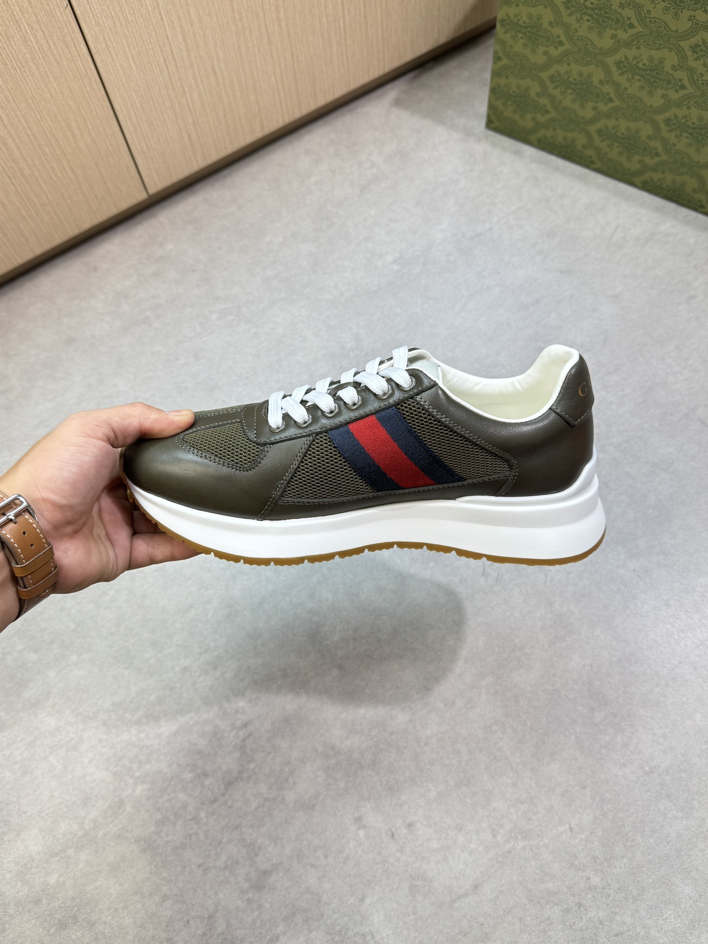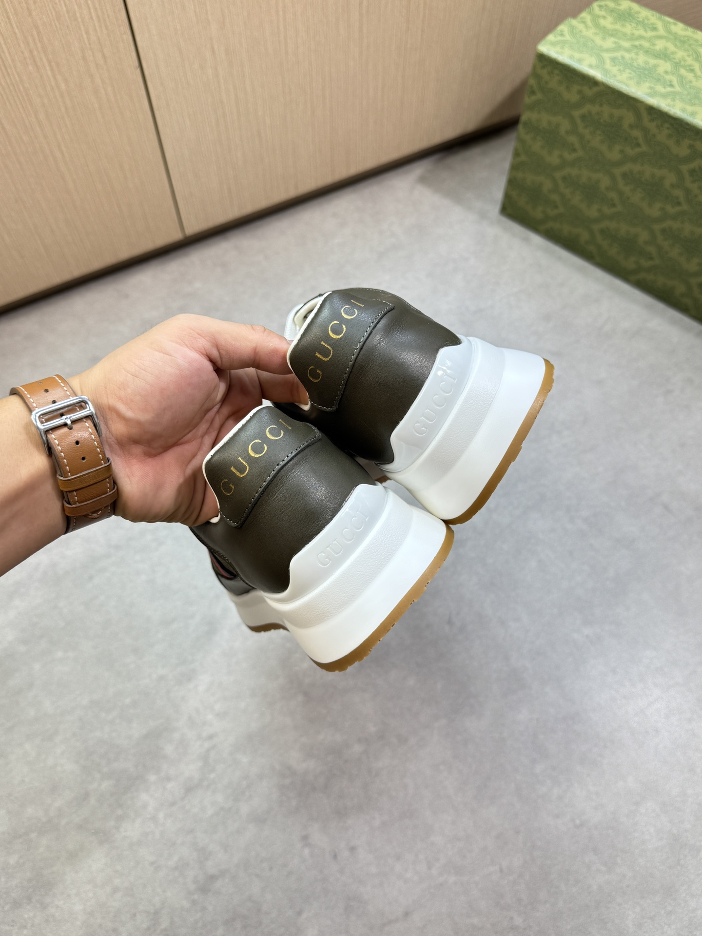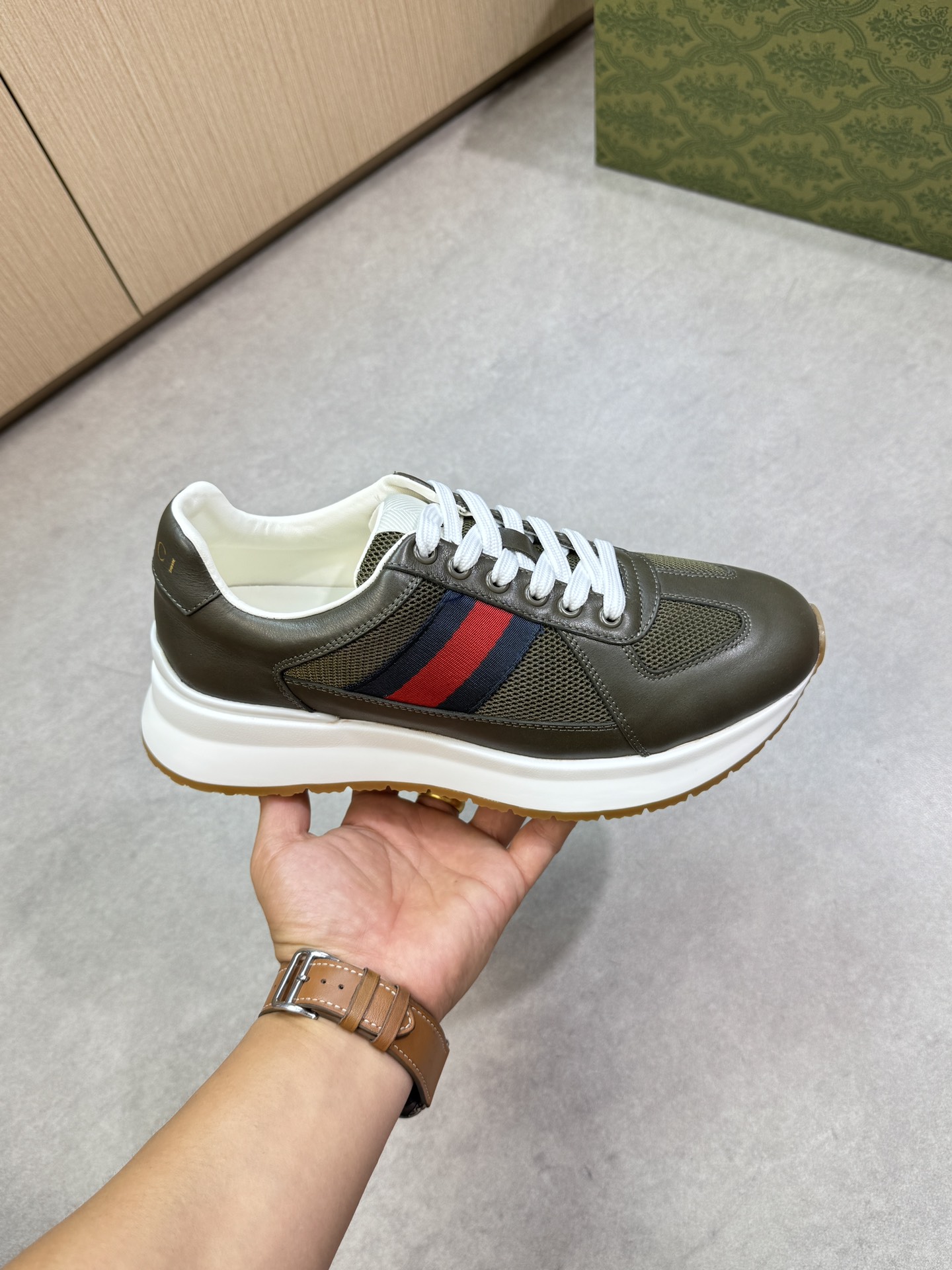 這款鞋子是AAAAA 1:1 質量(非常棒). 使用了和原版一模一樣的材料. 商標部分也保持了和古奇/Gucci一樣. 圖片拍攝是實物鞋子拍攝, 您所收到的實物保證和我們圖片一模一樣.