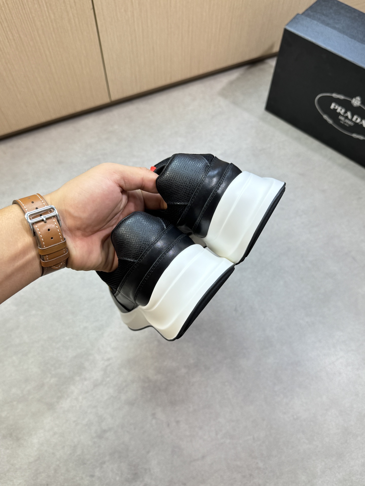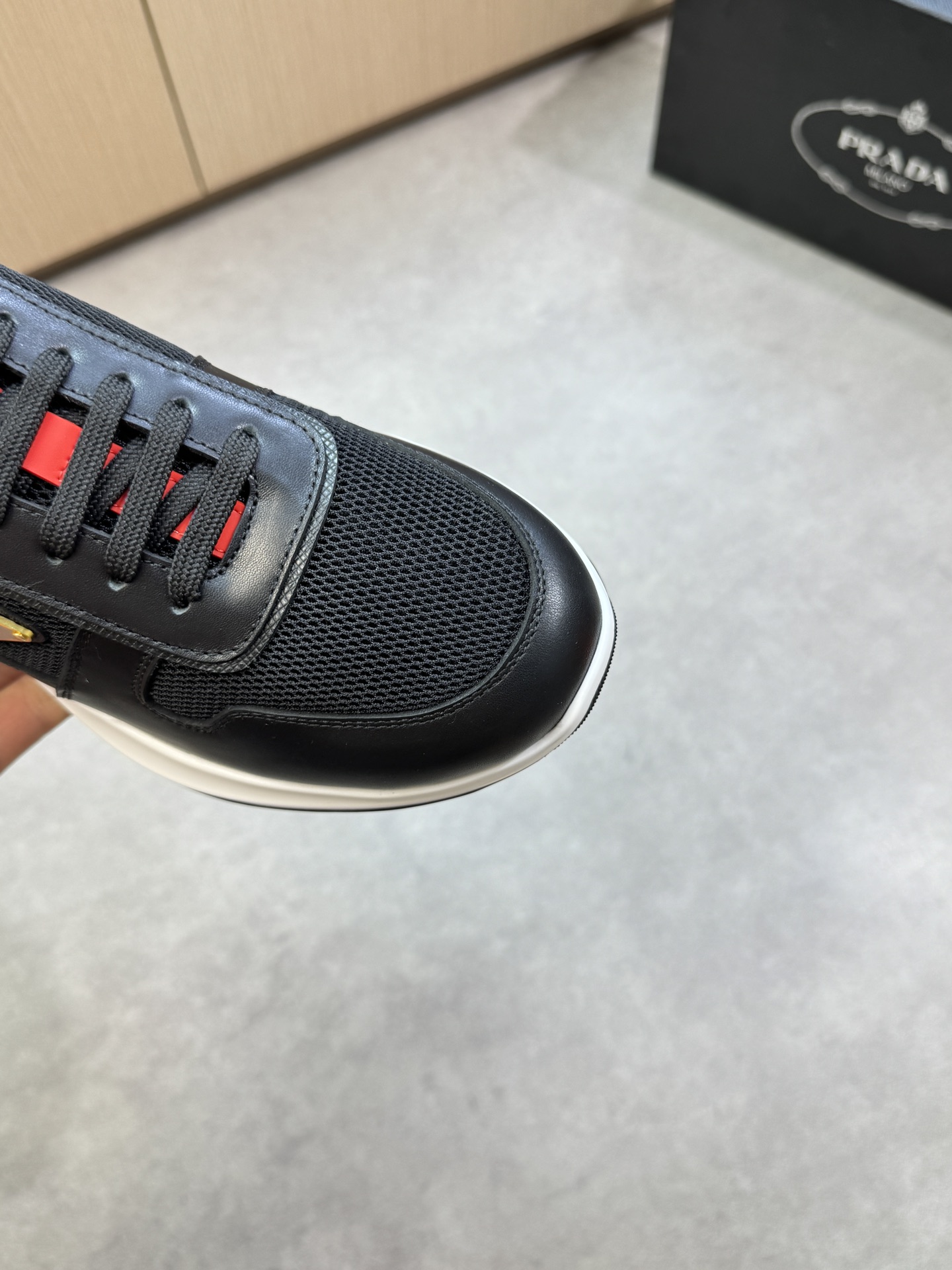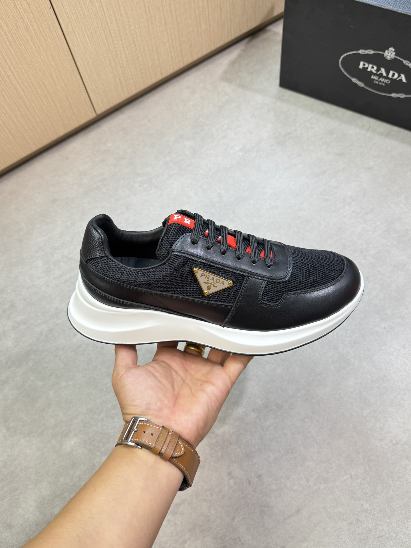 這款鞋子是AAAAA 1:1 質量(非常棒). 使用了和原版一模一樣的材料. 商標部分也保持了和普拉達/Prada一樣. 圖片拍攝是實物鞋子拍攝, 您所收到的實物保證和我們圖片一模一樣.