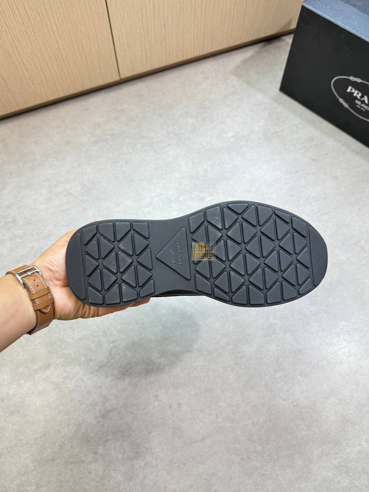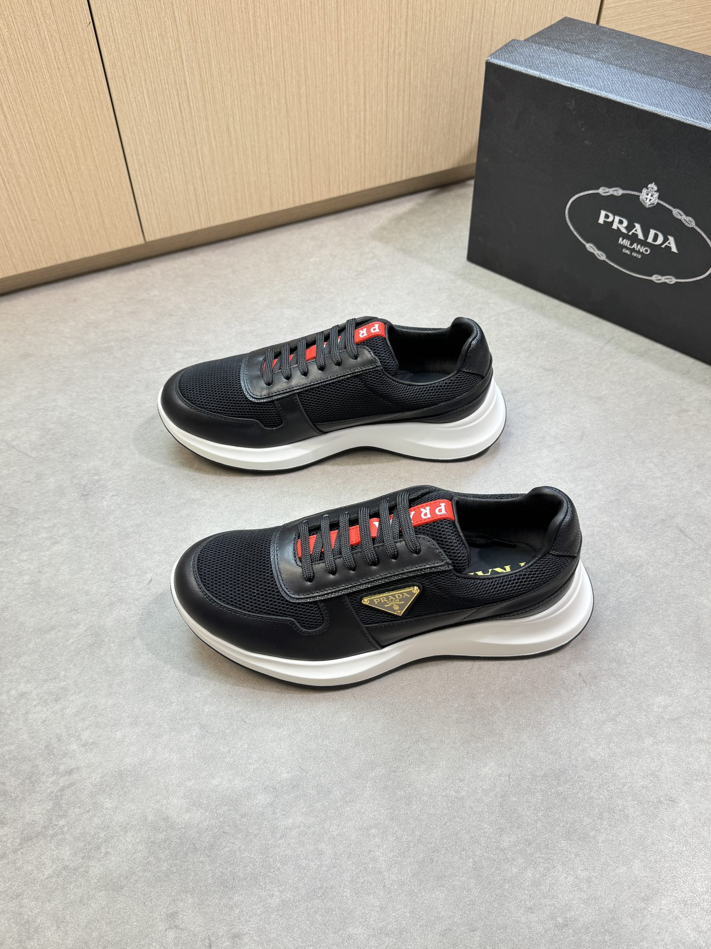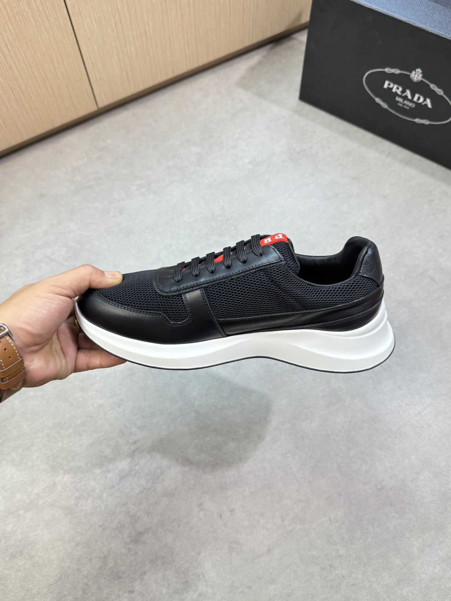 這款鞋子是AAAAA 1:1 質量(非常棒). 使用了和原版一模一樣的材料. 商標部分也保持了和普拉達/Prada一樣. 圖片拍攝是實物鞋子拍攝, 您所收到的實物保證和我們圖片一模一樣.