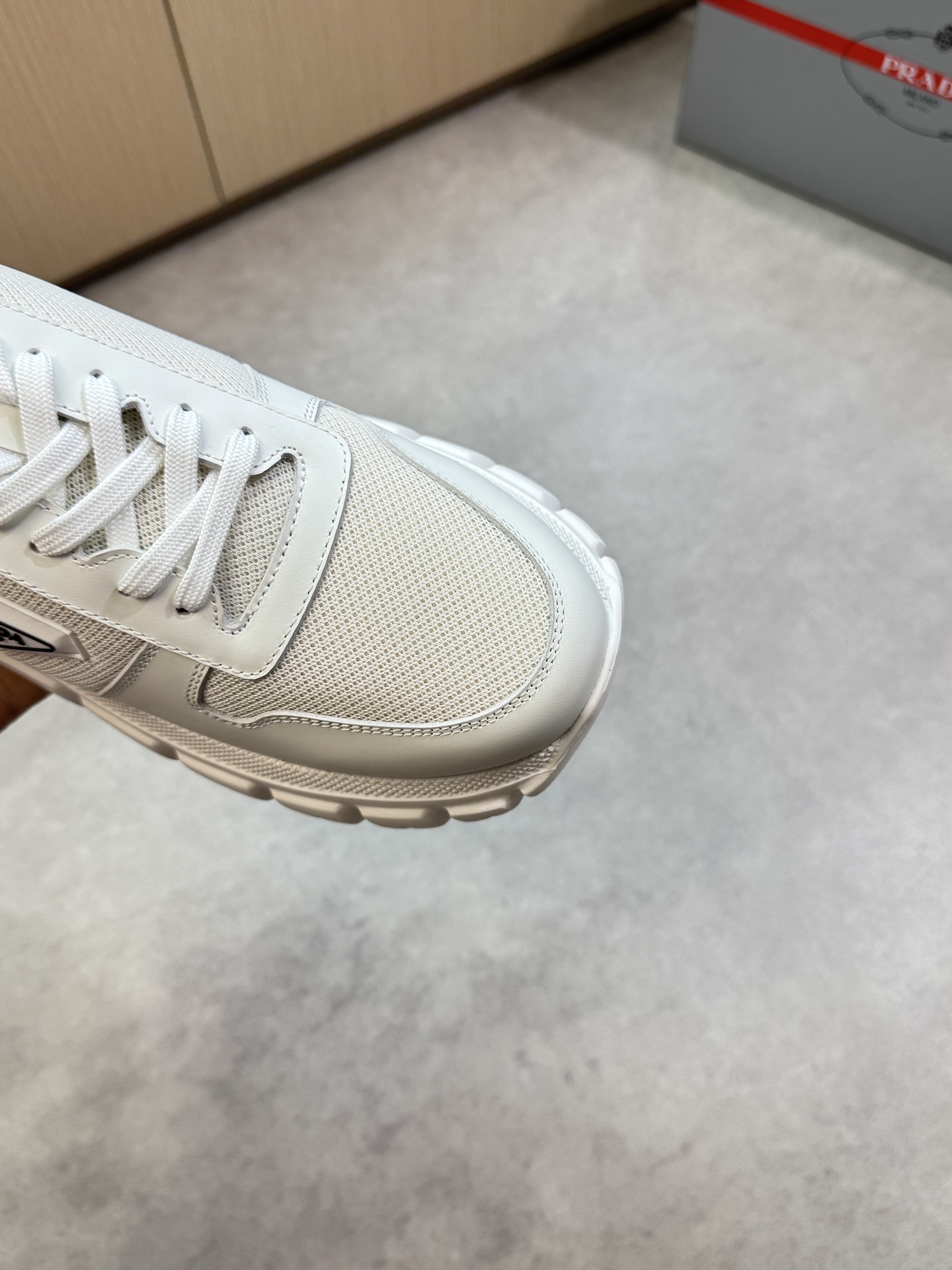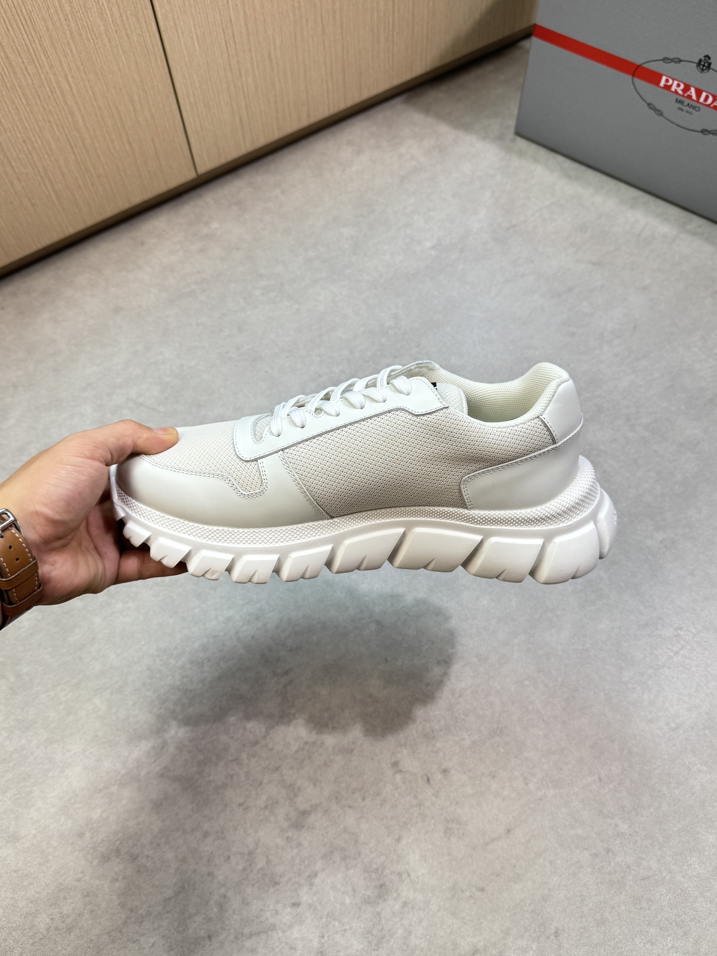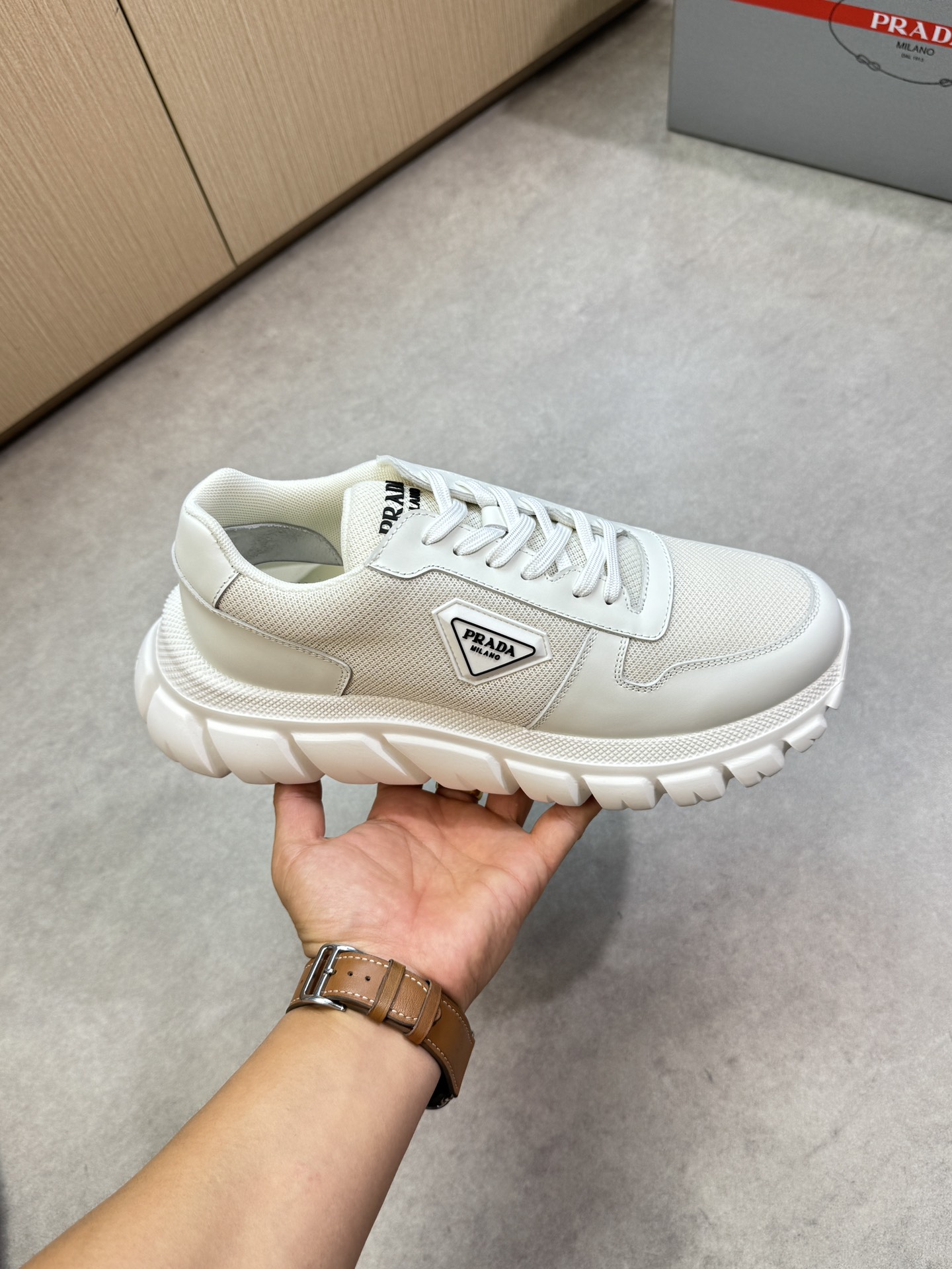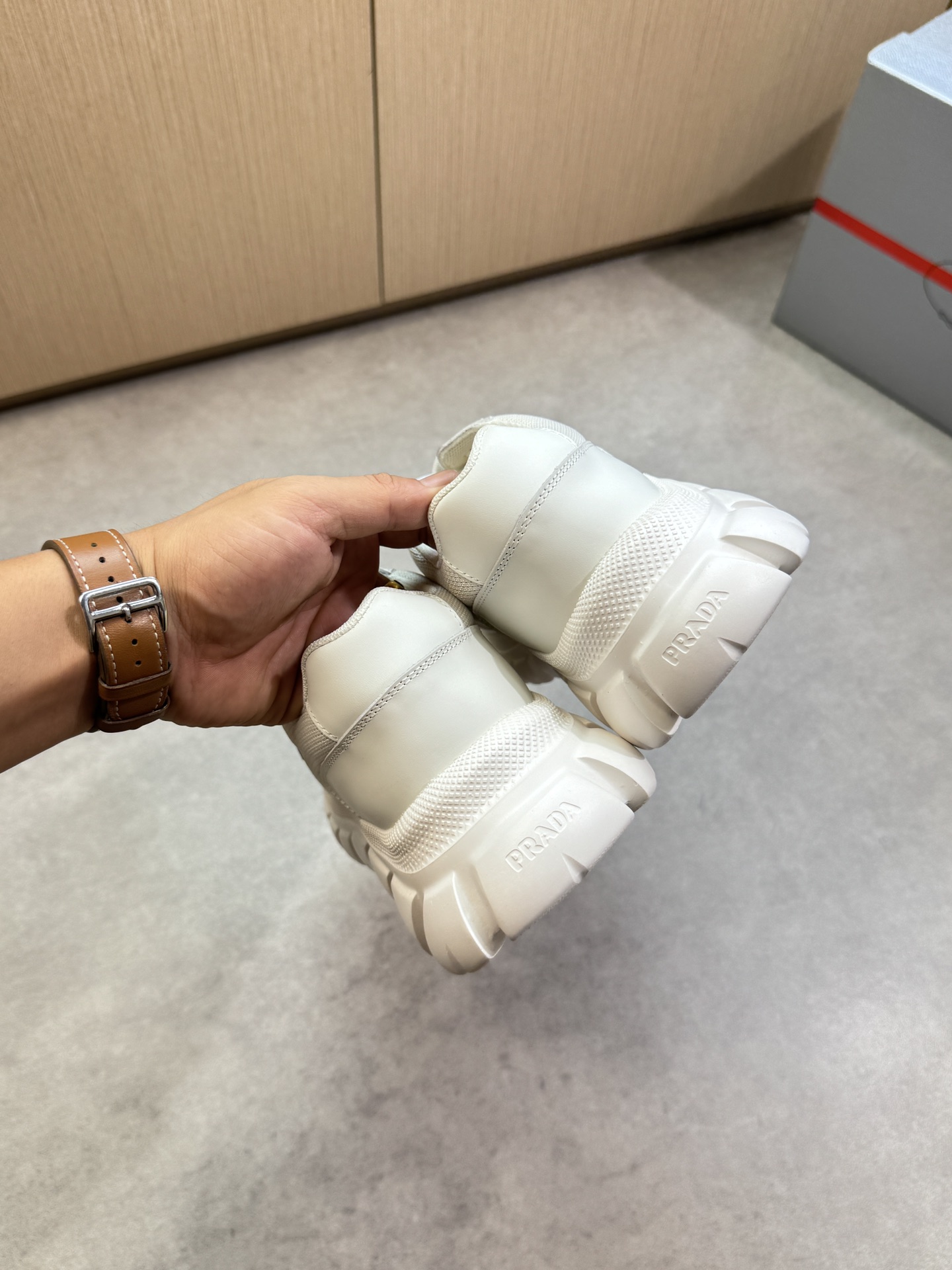 這款鞋子是AAAAA 1:1 質量(非常棒). 使用了和原版一模一樣的材料. 商標部分也保持了和普拉達/Prada一樣. 圖片拍攝是實物鞋子拍攝, 您所收到的實物保證和我們圖片一模一樣.