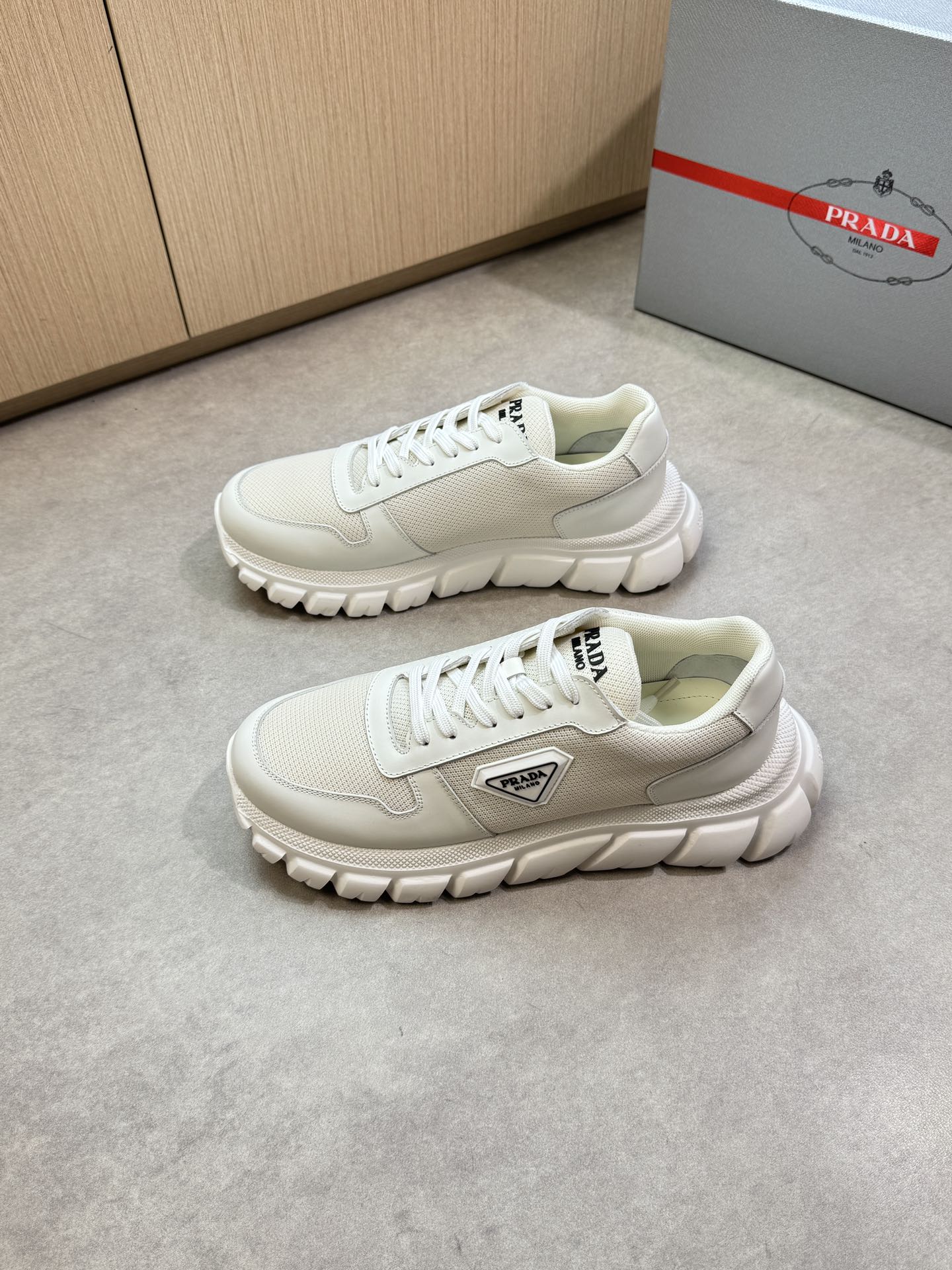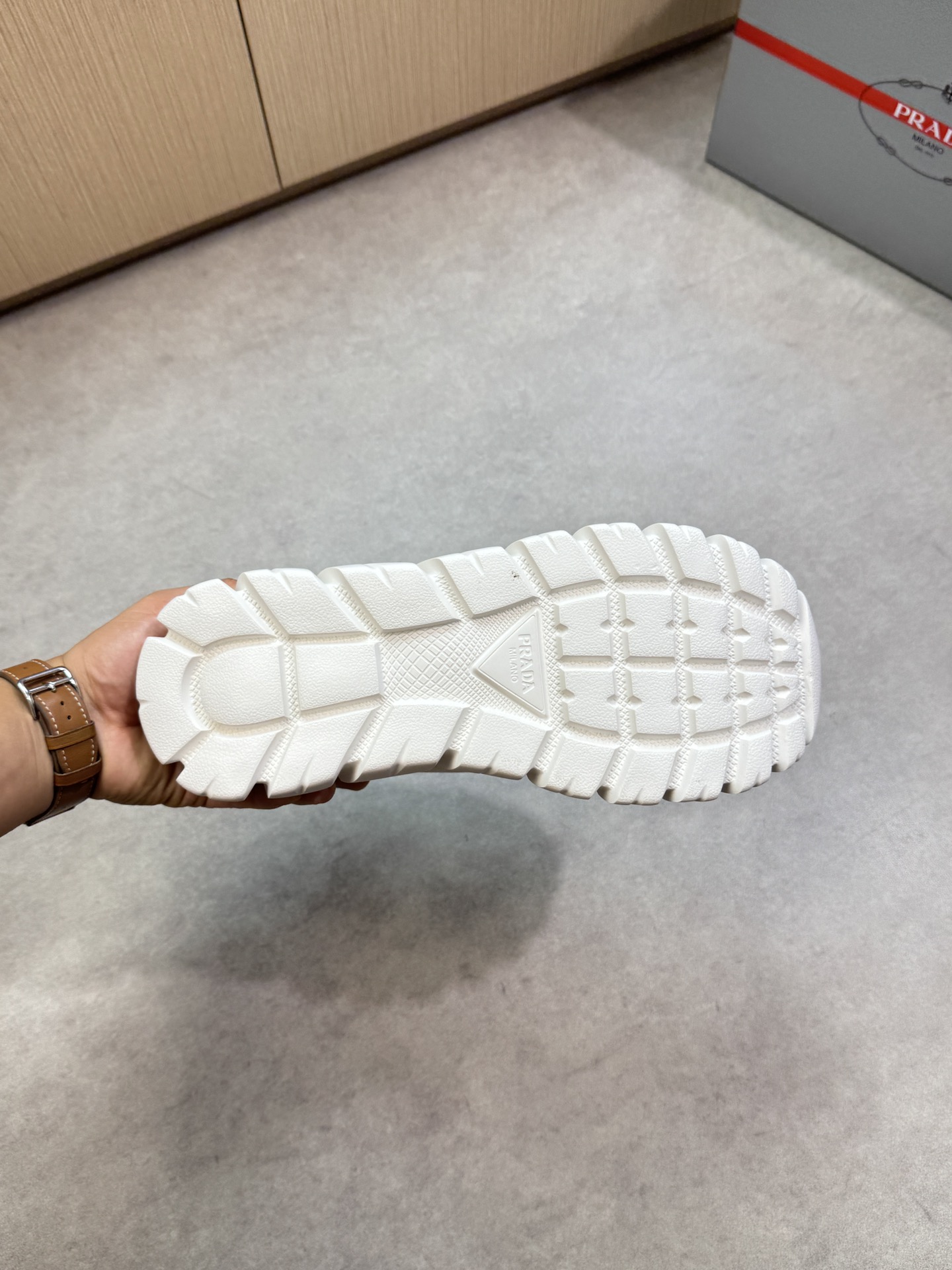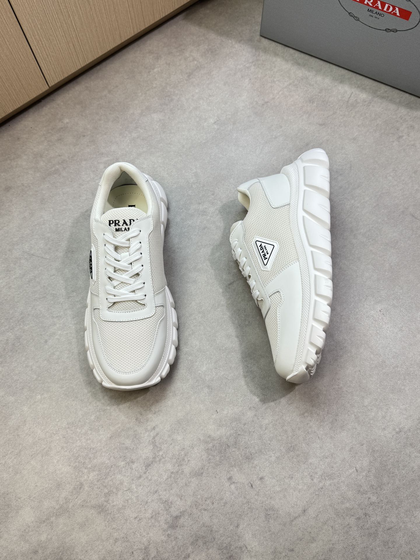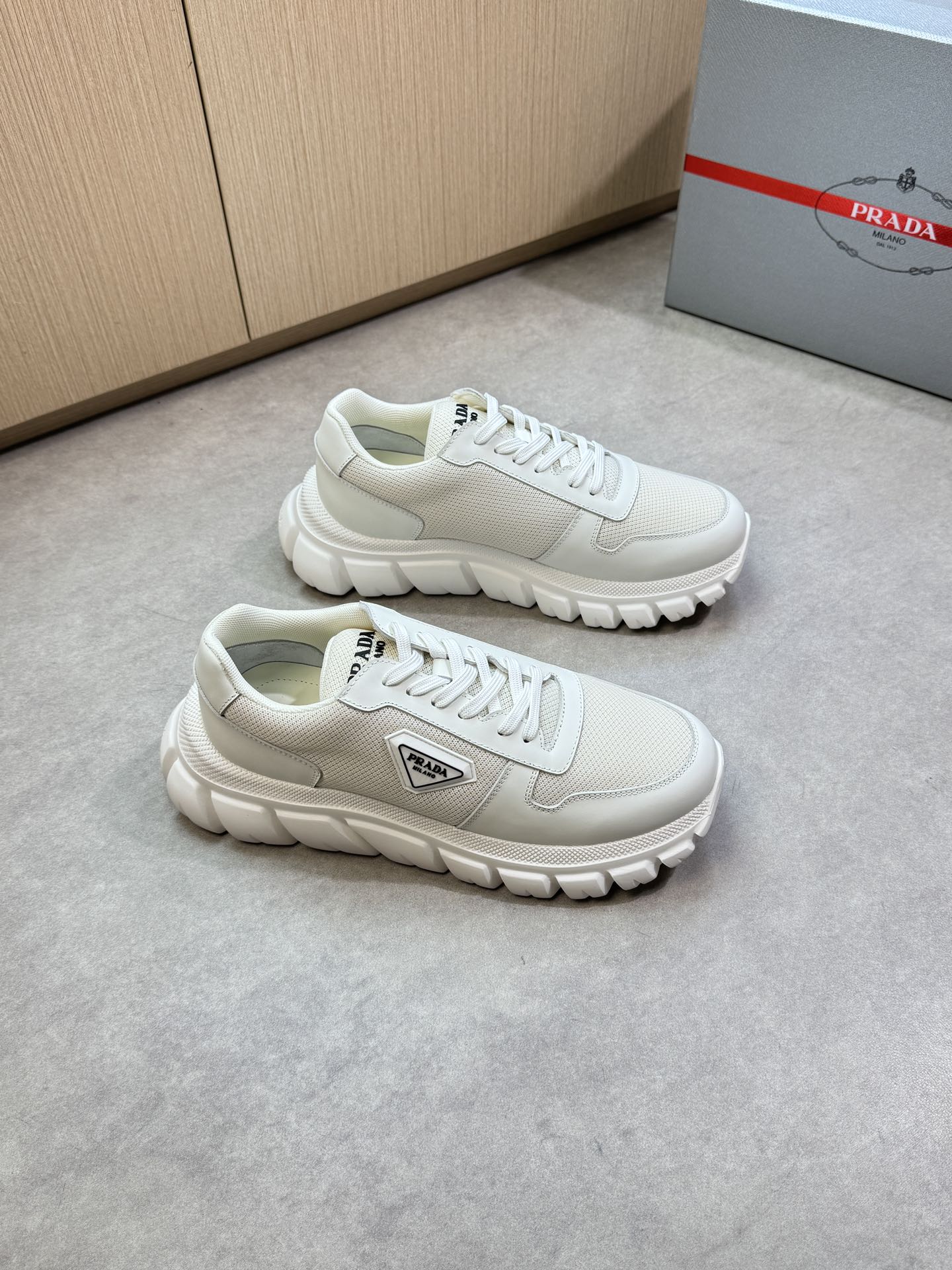 這款鞋子是AAAAA 1:1 質量(非常棒). 使用了和原版一模一樣的材料. 商標部分也保持了和普拉達/Prada一樣. 圖片拍攝是實物鞋子拍攝, 您所收到的實物保證和我們圖片一模一樣.