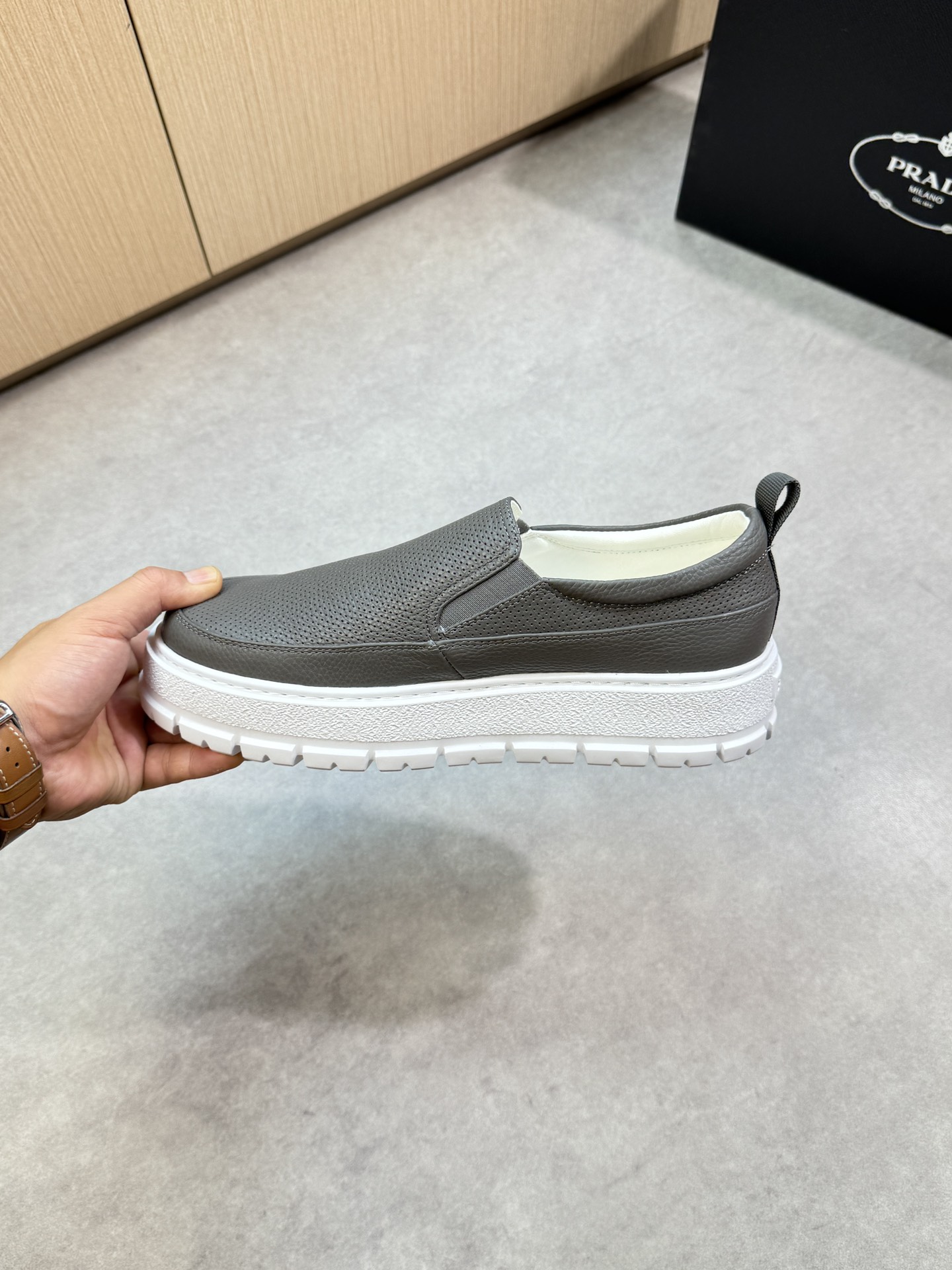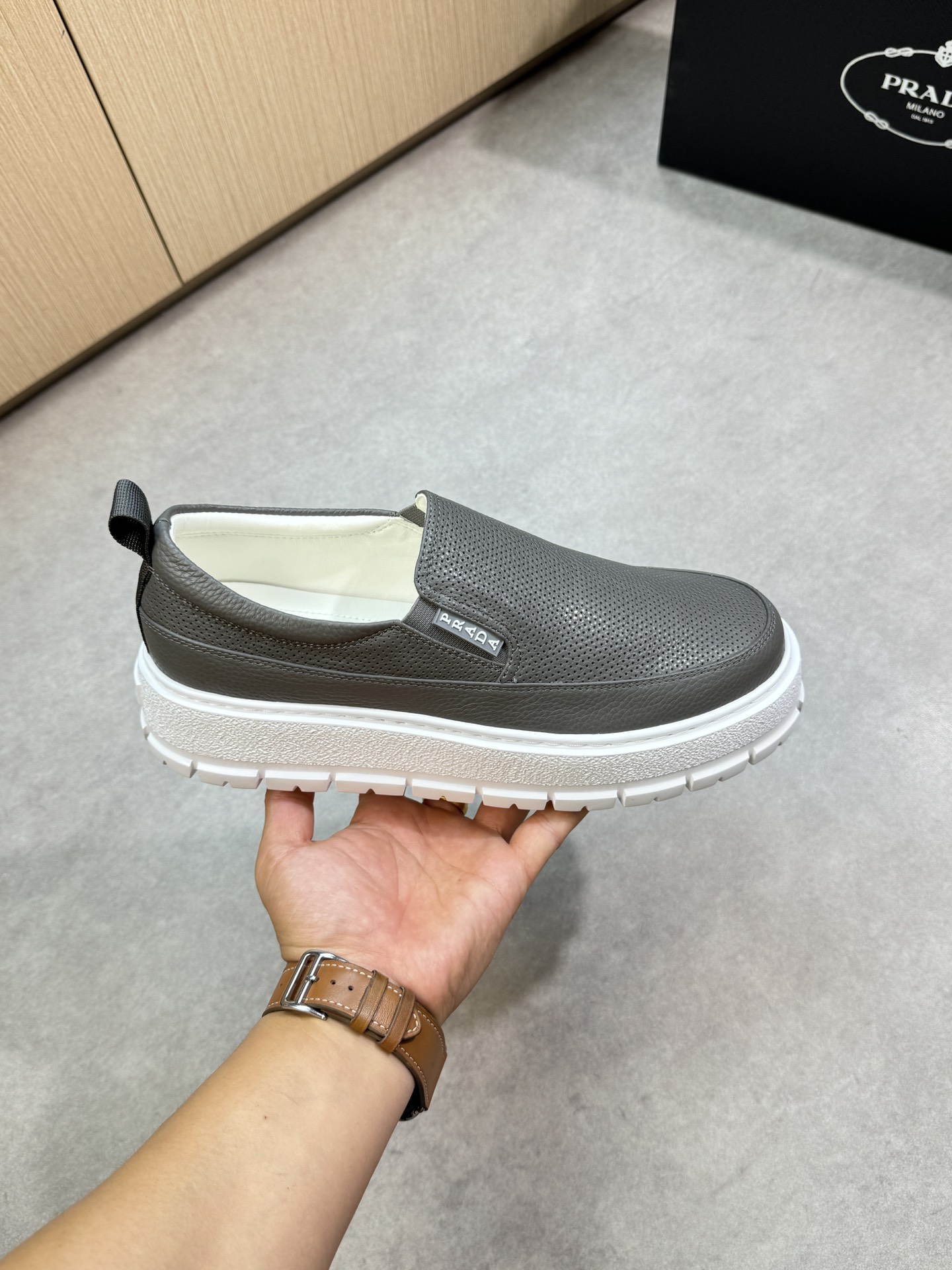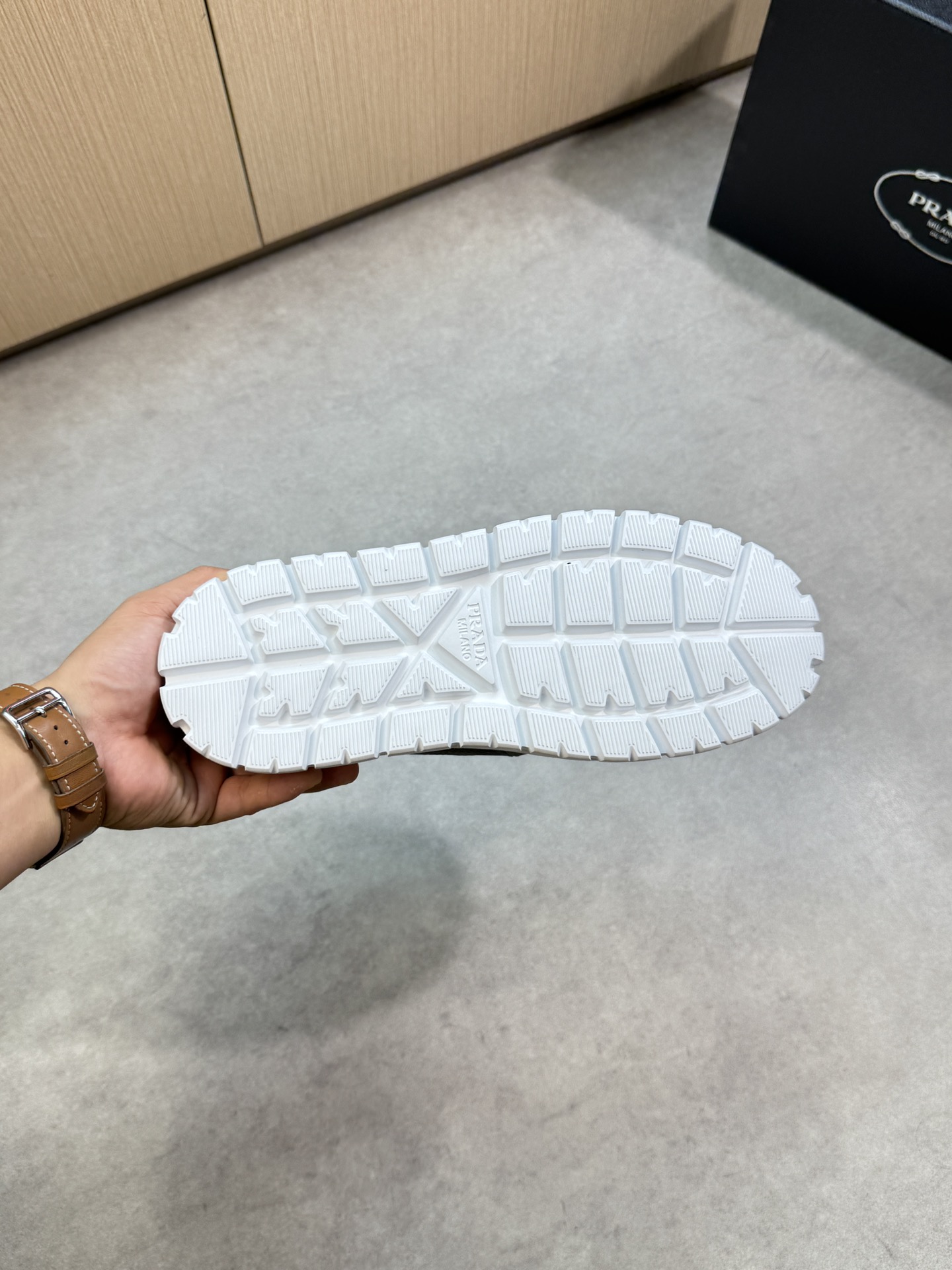 這款鞋子是AAAAA 1:1 質量(非常棒). 使用了和原版一模一樣的材料. 商標部分也保持了和普拉達/Prada一樣. 圖片拍攝是實物鞋子拍攝, 您所收到的實物保證和我們圖片一模一樣.