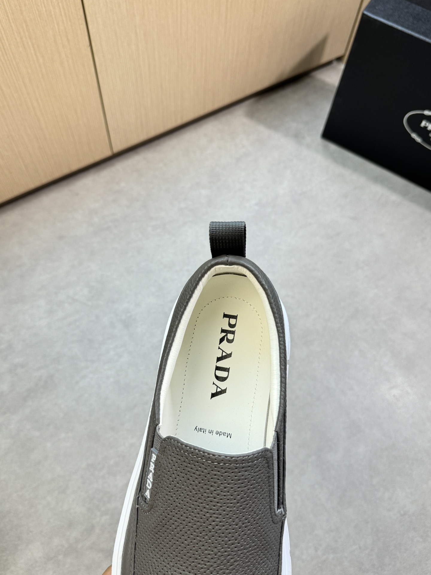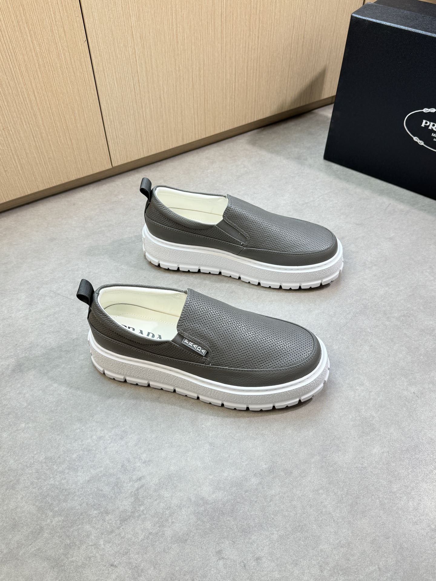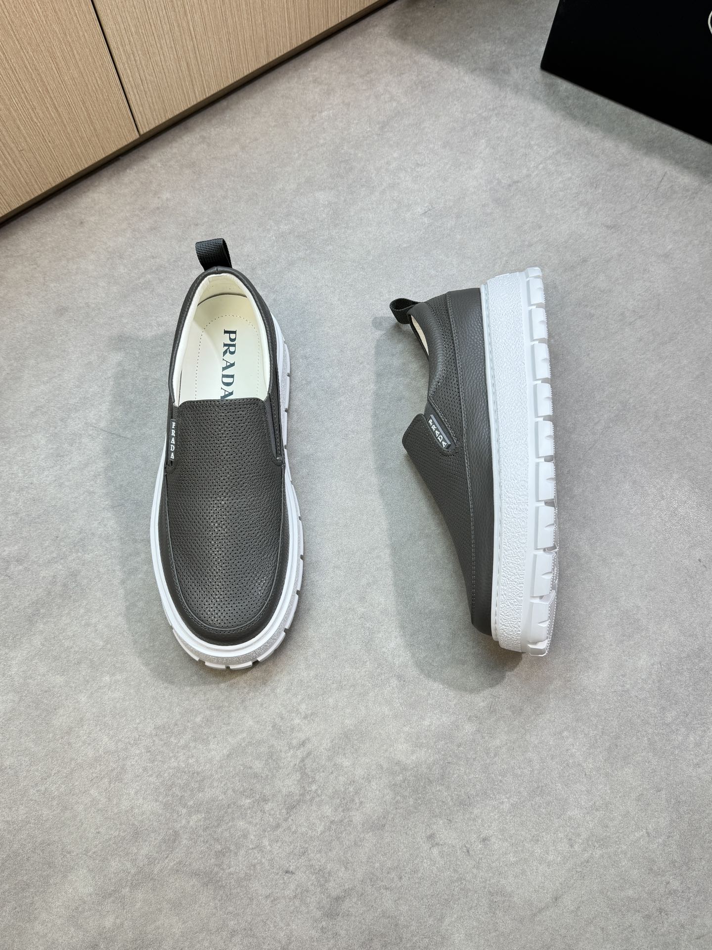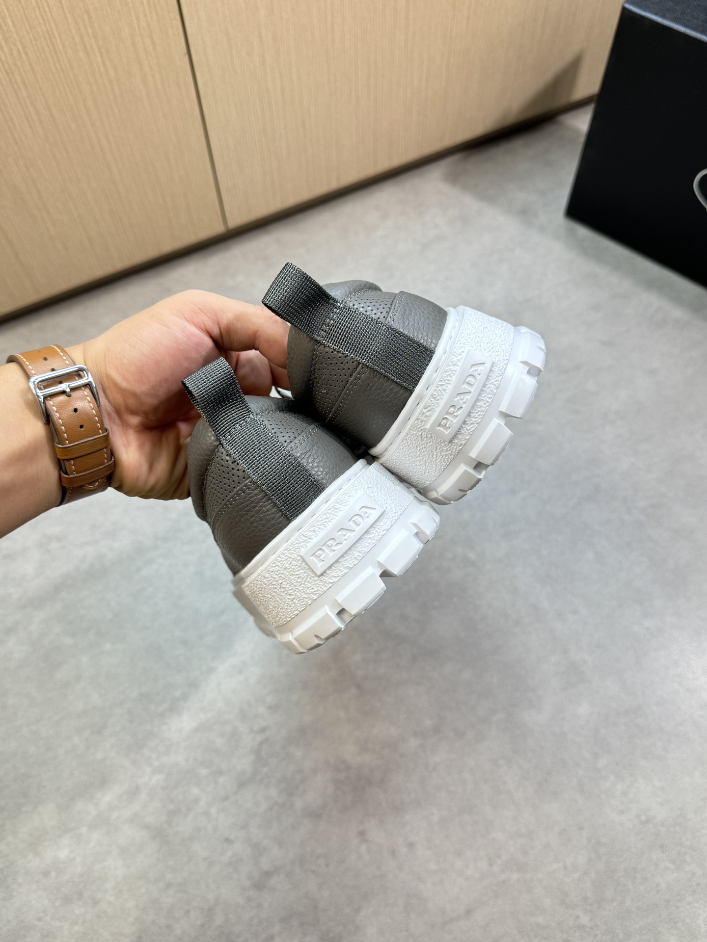 這款鞋子是AAAAA 1:1 質量(非常棒). 使用了和原版一模一樣的材料. 商標部分也保持了和普拉達/Prada一樣. 圖片拍攝是實物鞋子拍攝, 您所收到的實物保證和我們圖片一模一樣.