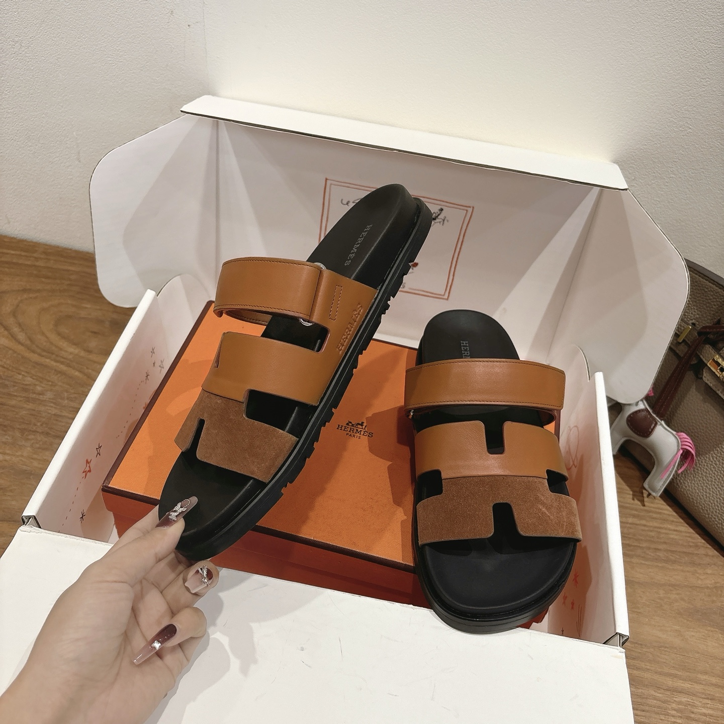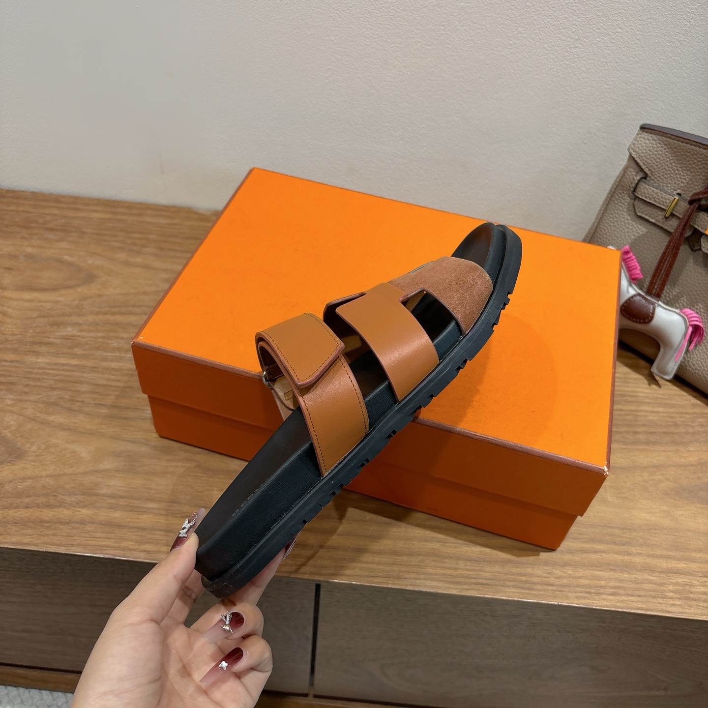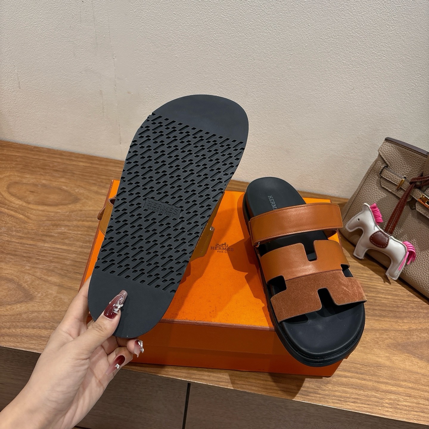 這款鞋子是AAAAA 1:1 質量(非常棒). 使用了和原版一模一樣的材料. 商標部分也保持了和愛馬仕/Hermes一樣. 圖片拍攝是實物鞋子拍攝, 您所收到的實物保證和我們圖片一模一樣.