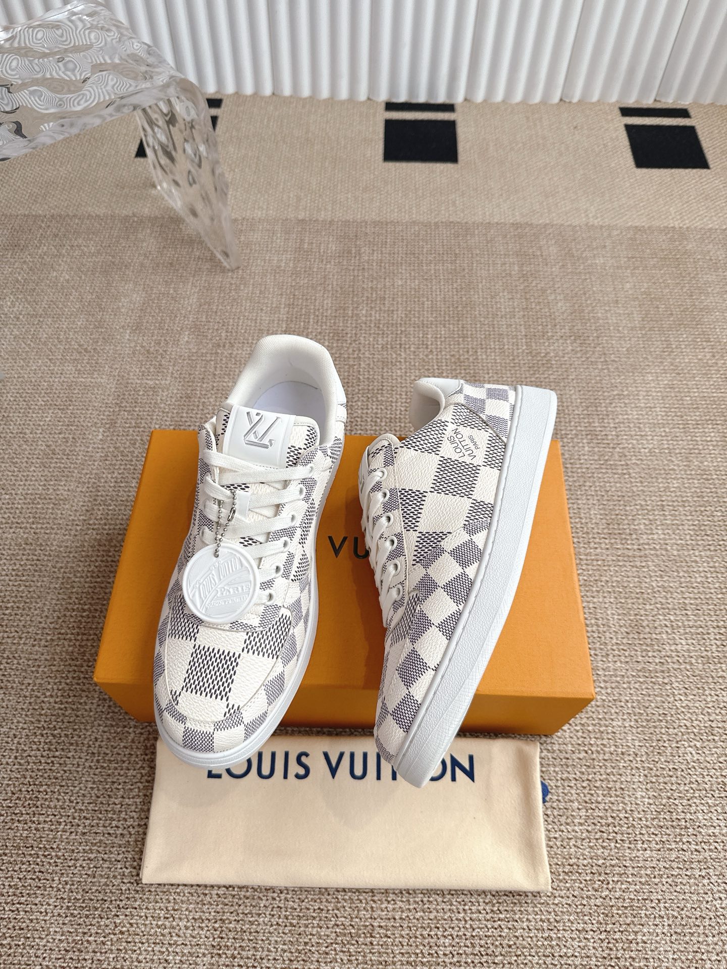 這款鞋子是AAAAA 1:1 質量(非常棒). 使用了和原版一模一樣的材料. 商標部分也保持了和路易威登/Louis Vuitton一樣. 圖片拍攝是實物鞋子拍攝, 您所收到的實物保證和我們圖片一模一樣.