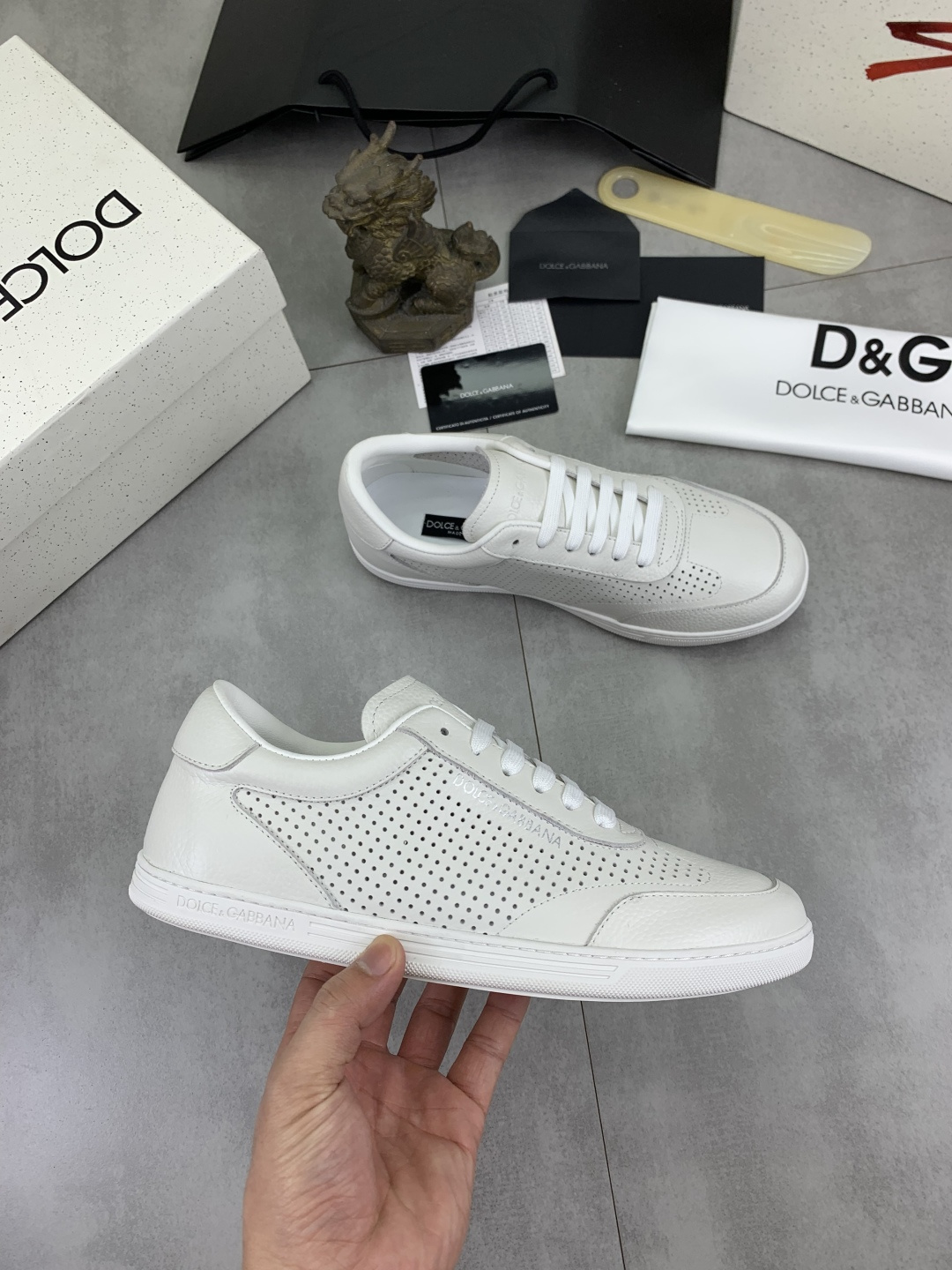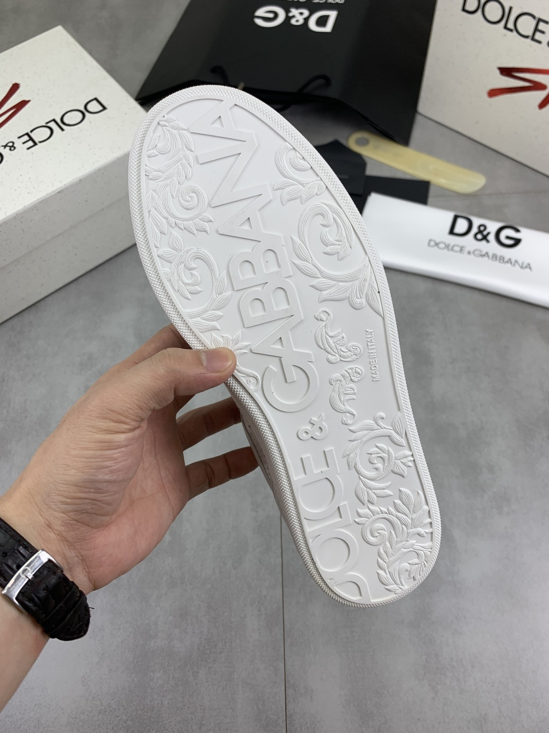 這款鞋子是AAAAA 1:1 質量(非常棒). 使用了和原版一模一樣的材料. 商標部分也保持了和杜嘉班納/Dolce&Gabbana一樣. 圖片拍攝是實物鞋子拍攝, 您所收到的實物保證和我們圖片一模一樣.