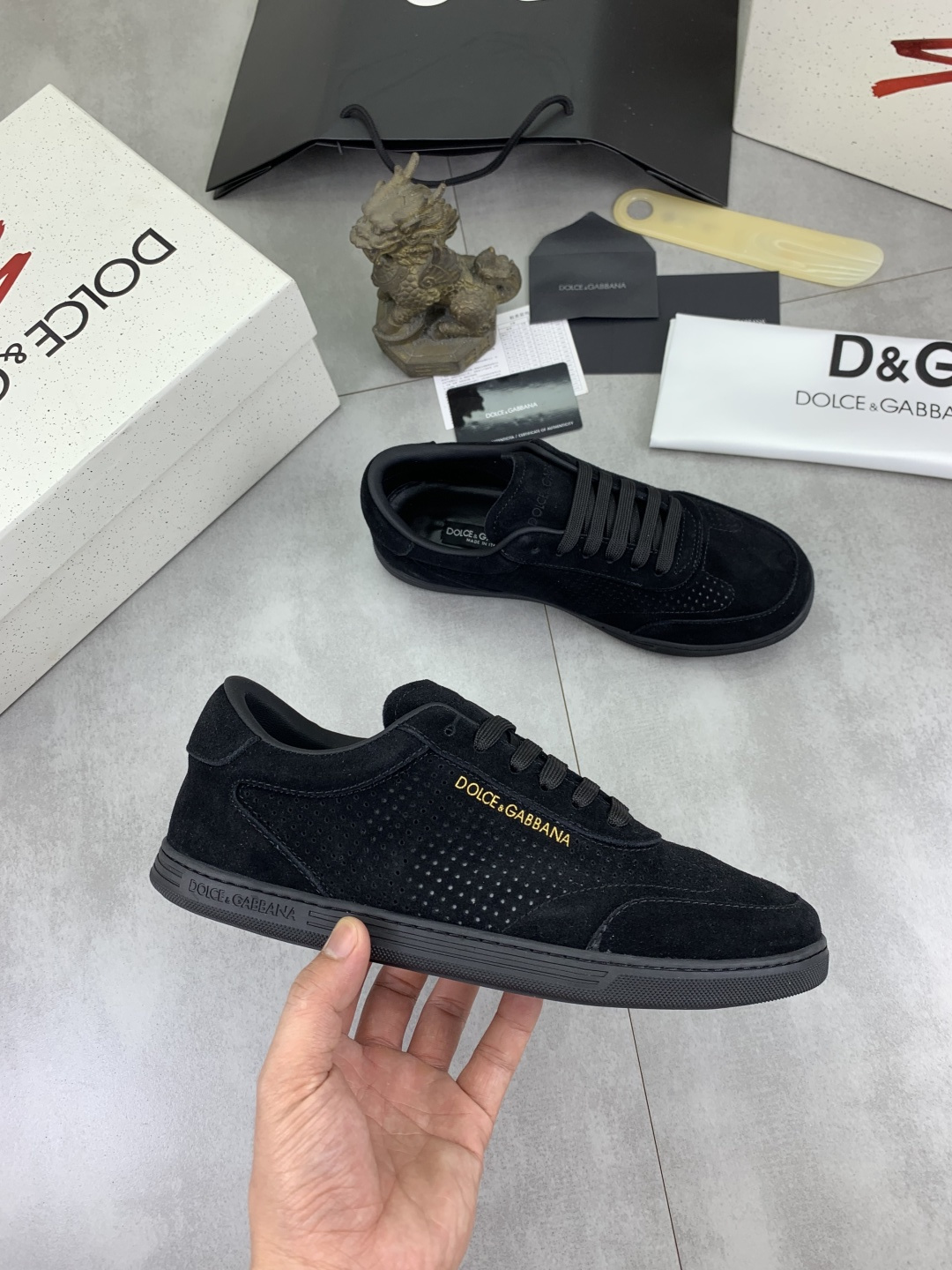 這款鞋子是AAAAA 1:1 質量(非常棒). 使用了和原版一模一樣的材料. 商標部分也保持了和杜嘉班納/Dolce&Gabbana一樣. 圖片拍攝是實物鞋子拍攝, 您所收到的實物保證和我們圖片一模一樣.