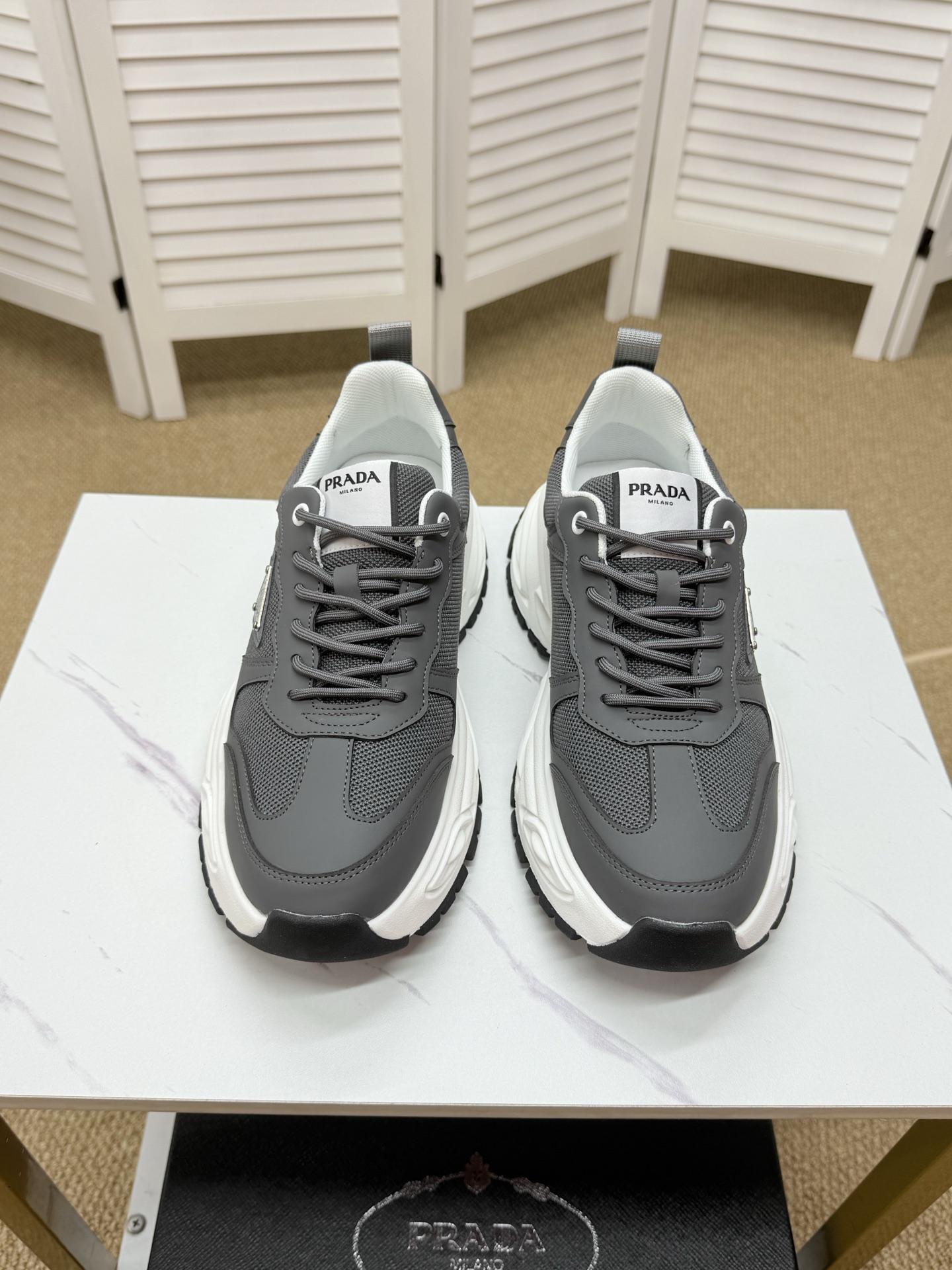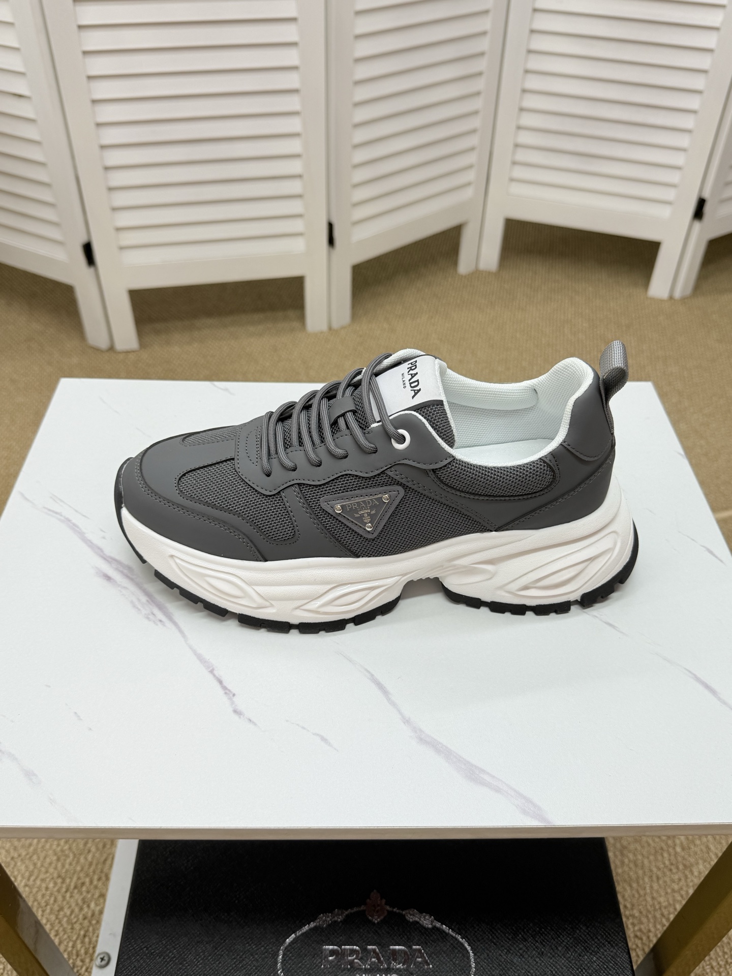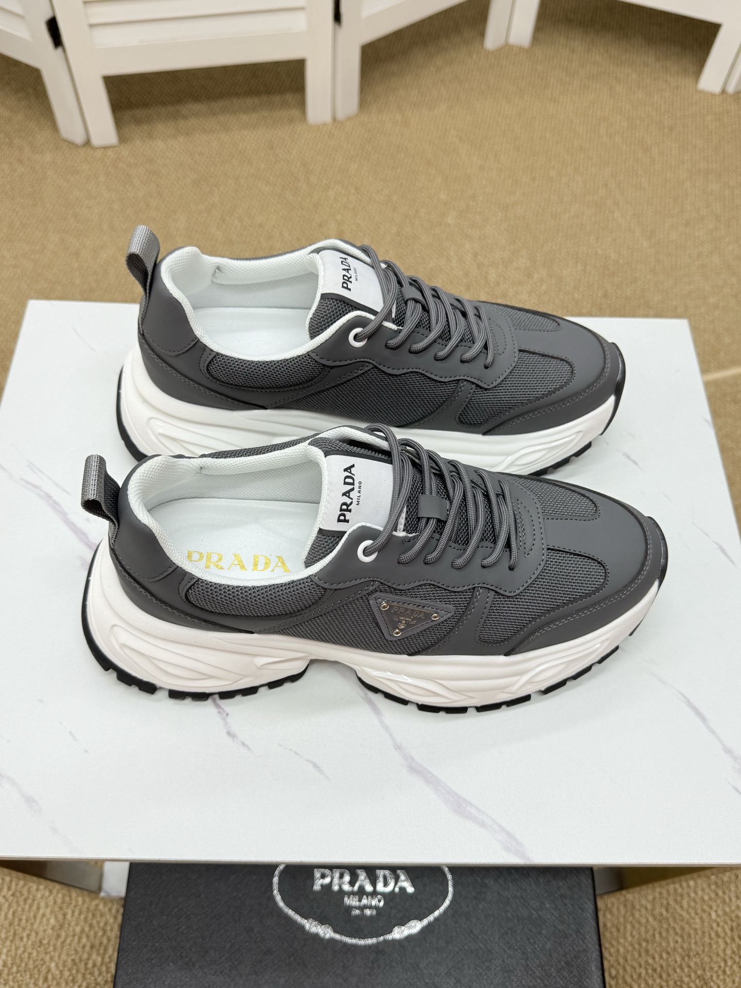 這款鞋子是AAAAA 1:1 質量(非常棒). 使用了和原版一模一樣的材料. 商標部分也保持了和普拉達/Prada一樣. 圖片拍攝是實物鞋子拍攝, 您所收到的實物保證和我們圖片一模一樣.
