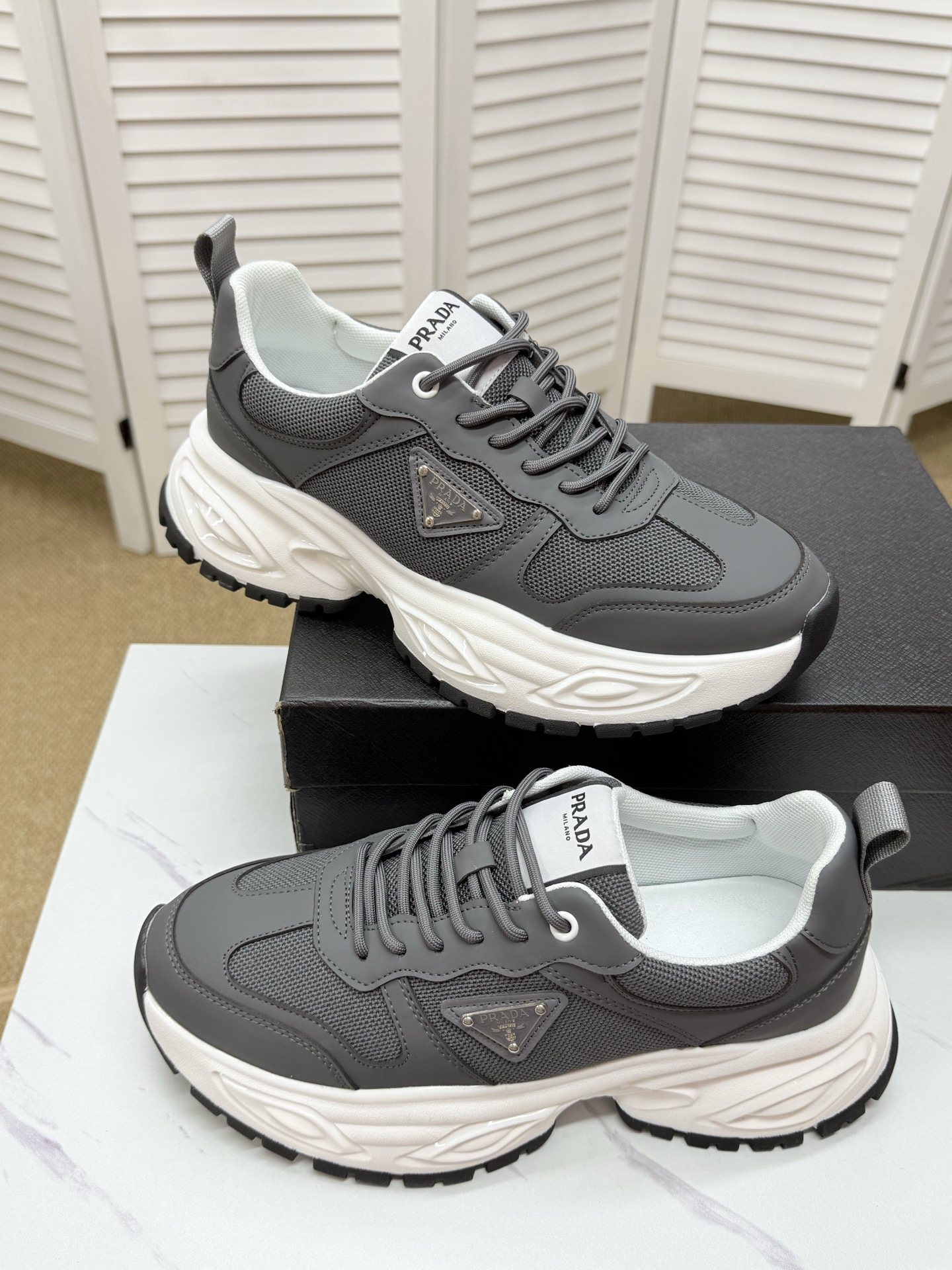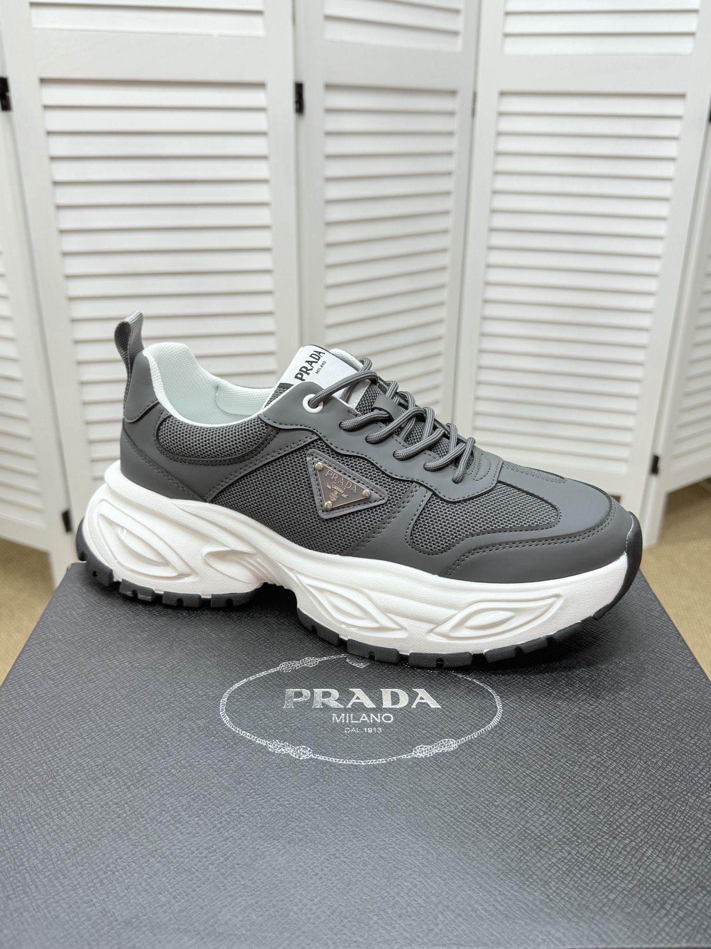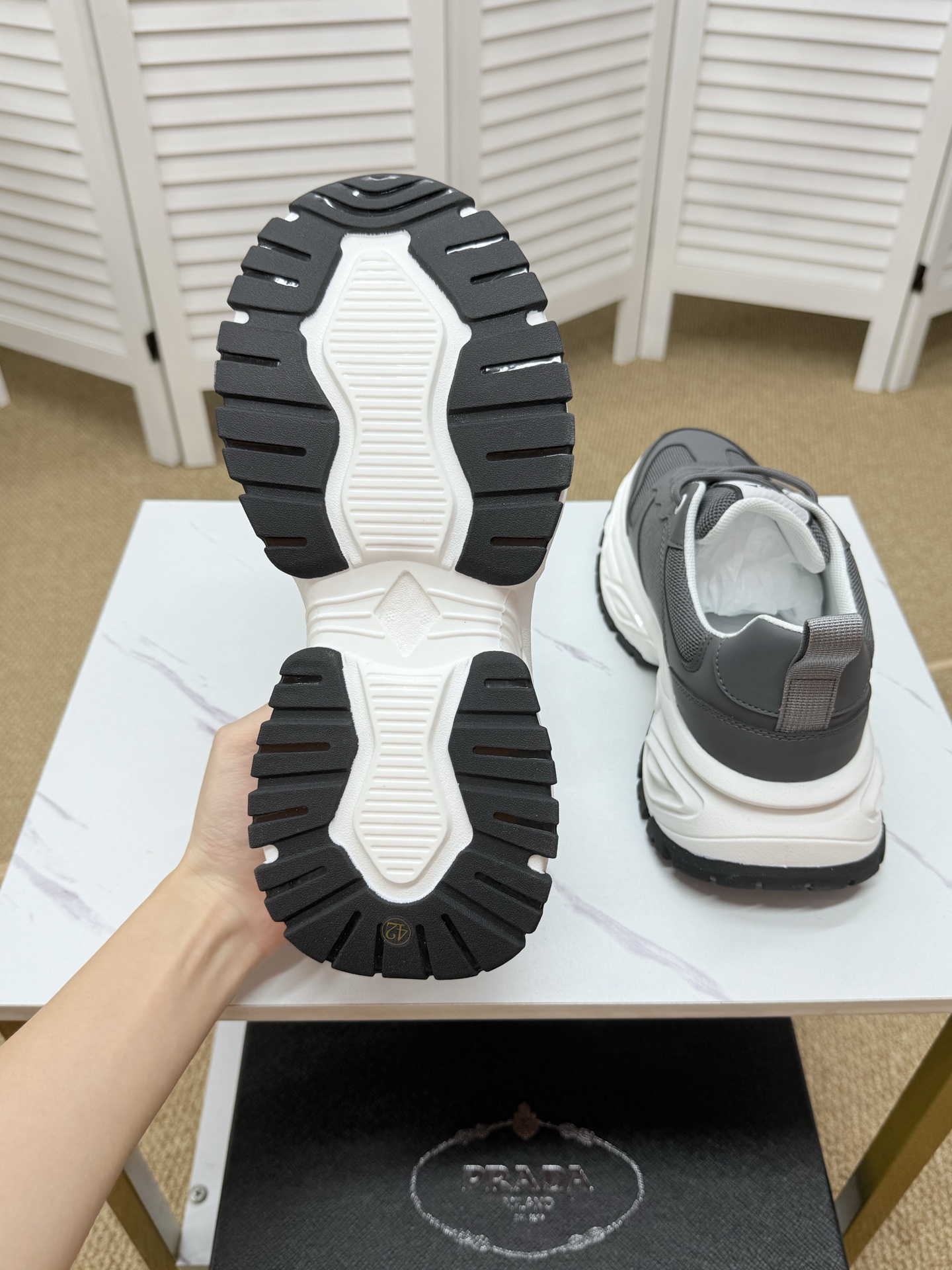 這款鞋子是AAAAA 1:1 質量(非常棒). 使用了和原版一模一樣的材料. 商標部分也保持了和普拉達/Prada一樣. 圖片拍攝是實物鞋子拍攝, 您所收到的實物保證和我們圖片一模一樣.