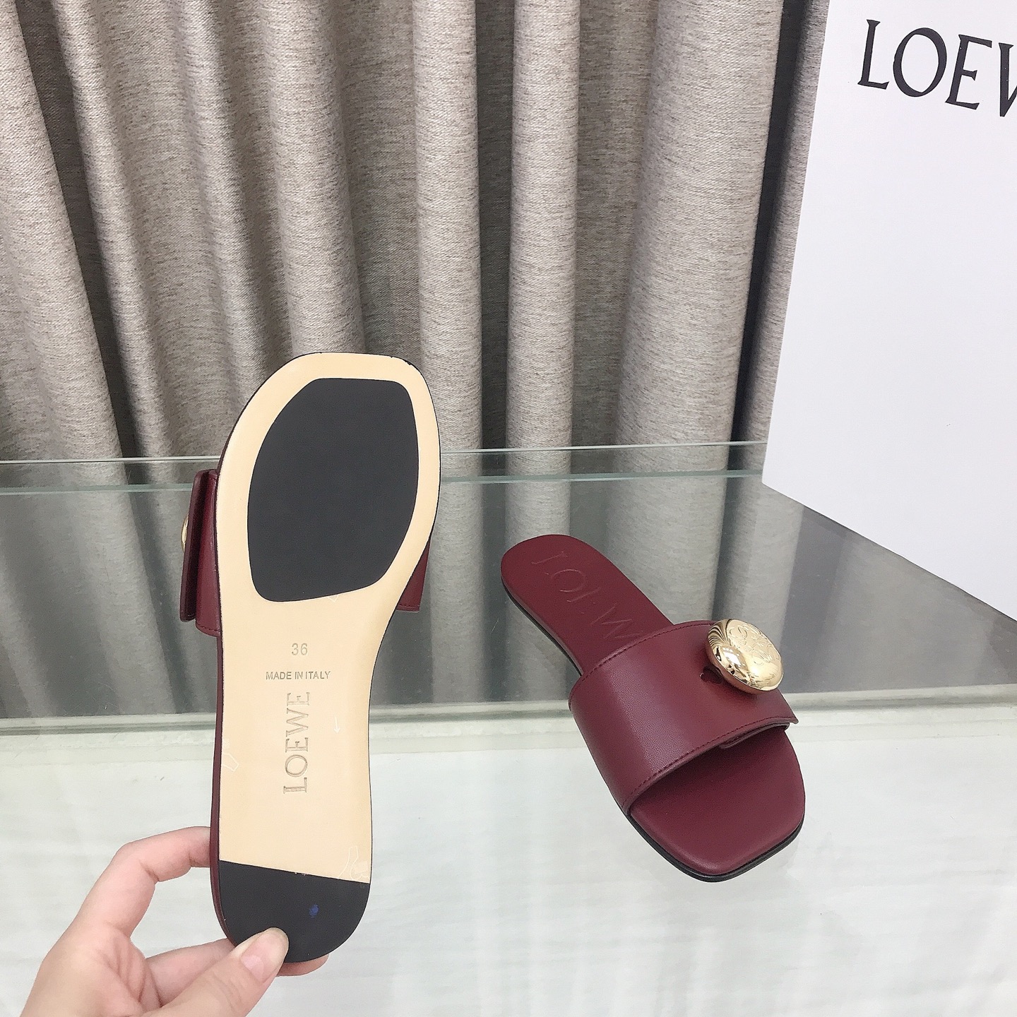 這款鞋子是AAAAA 1:1 質量(非常棒). 使用了和原版一模一樣的材料. 商標部分也保持了和Loewe一樣. 圖片拍攝是實物鞋子拍攝, 您所收到的實物保證和我們圖片一模一樣.
