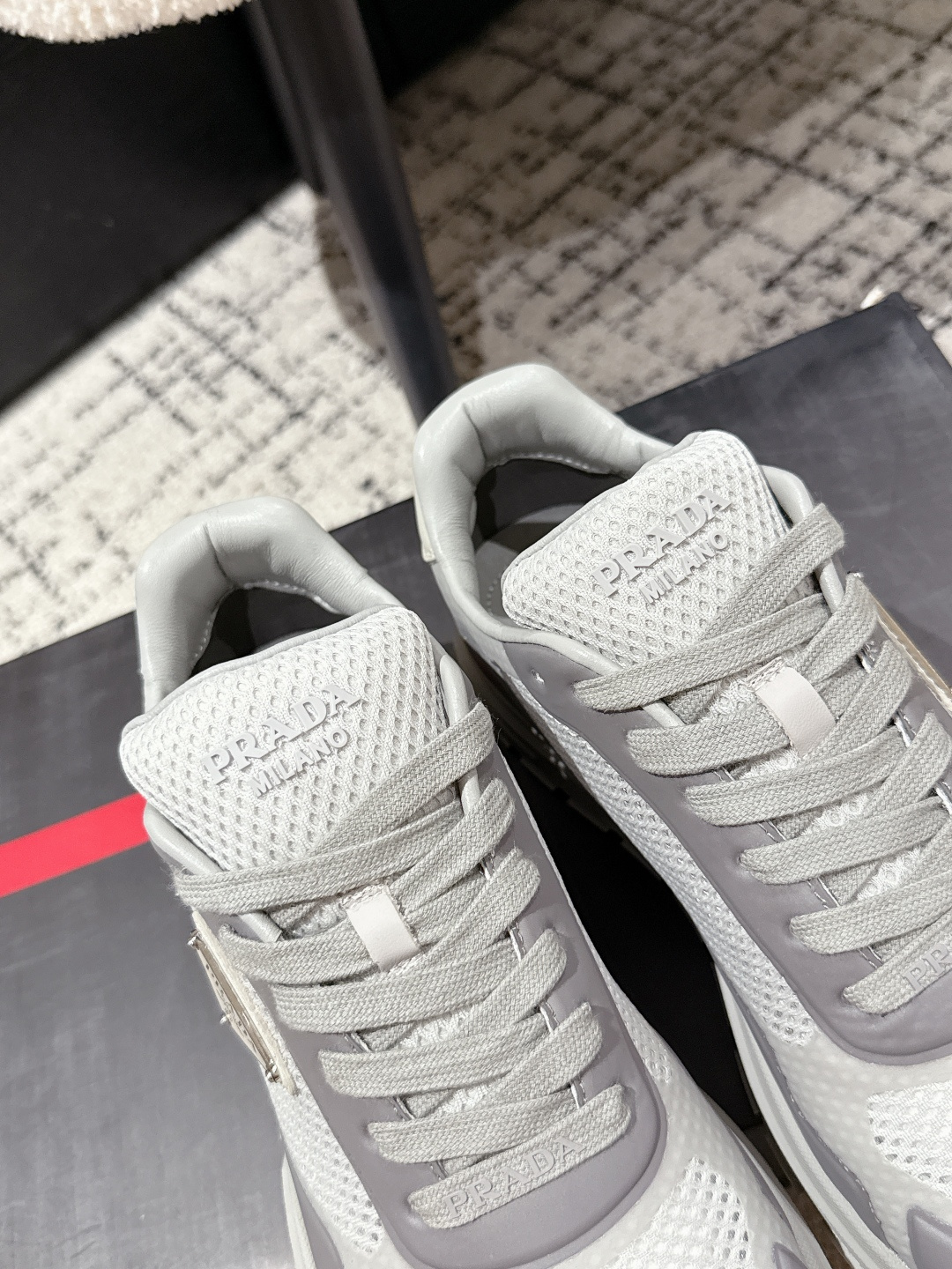 這款鞋子是AAAAA 1:1 質量(非常棒). 使用了和原版一模一樣的材料. 商標部分也保持了和普拉達/Prada一樣. 圖片拍攝是實物鞋子拍攝, 您所收到的實物保證和我們圖片一模一樣.
