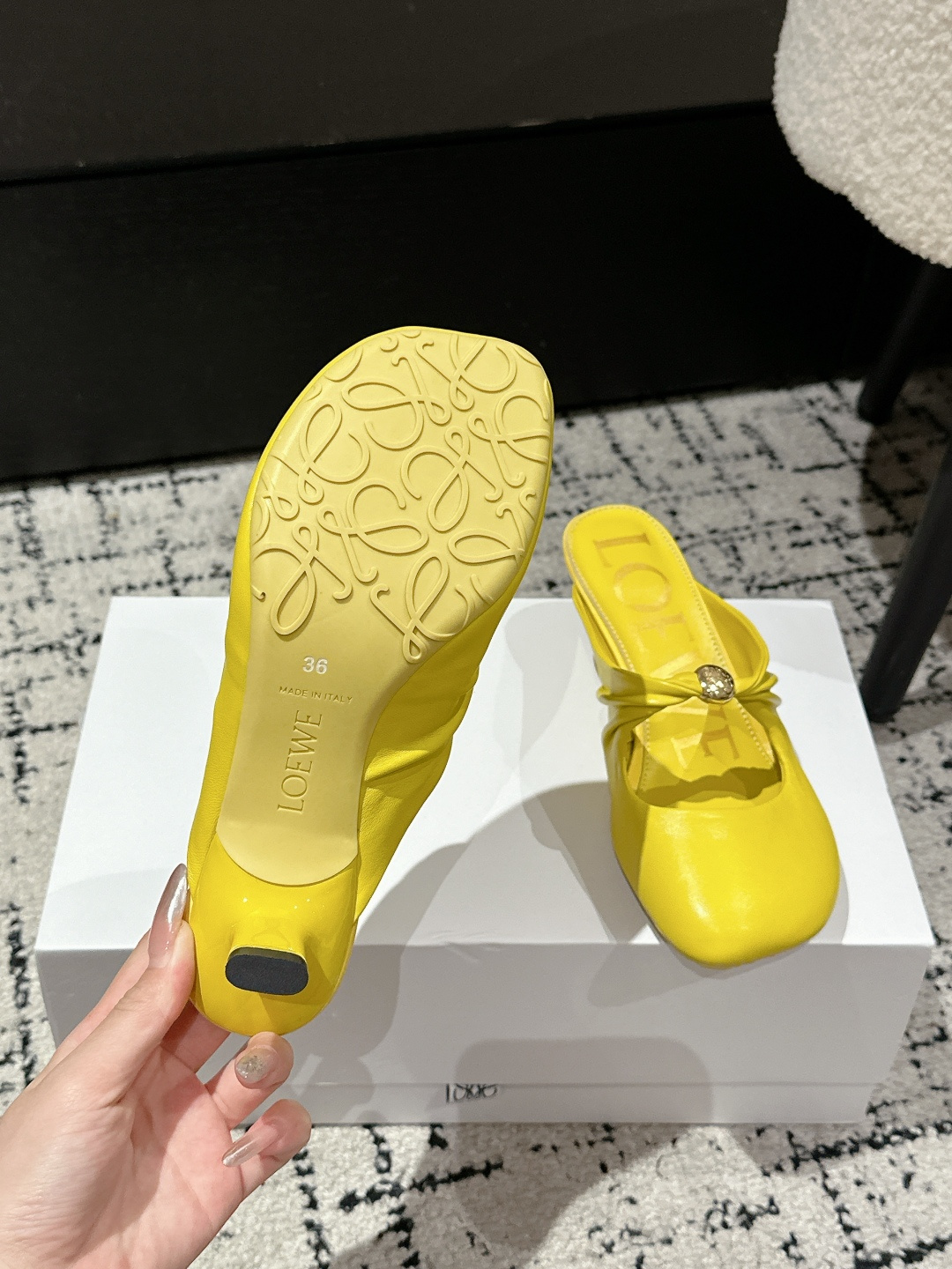 這款鞋子是AAAAA 1:1 質量(非常棒). 使用了和原版一模一樣的材料. 商標部分也保持了和Loewe一樣. 圖片拍攝是實物鞋子拍攝, 您所收到的實物保證和我們圖片一模一樣.
