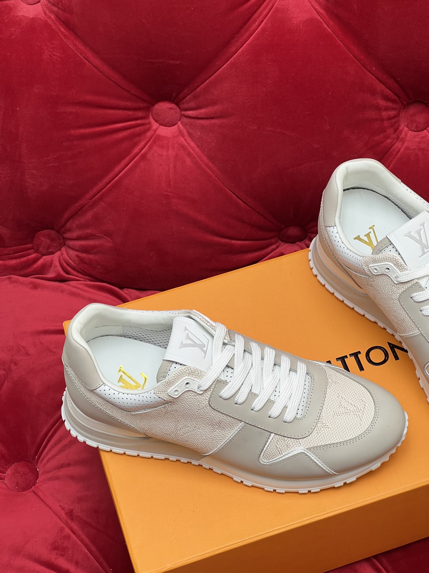 這款鞋子是AAAAA 1:1 質量(非常棒). 使用了和原版一模一樣的材料. 商標部分也保持了和路易威登/Louis Vuitton一樣. 圖片拍攝是實物鞋子拍攝, 您所收到的實物保證和我們圖片一模一樣.