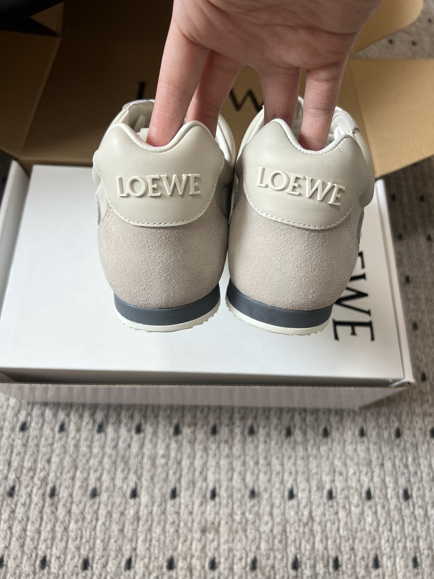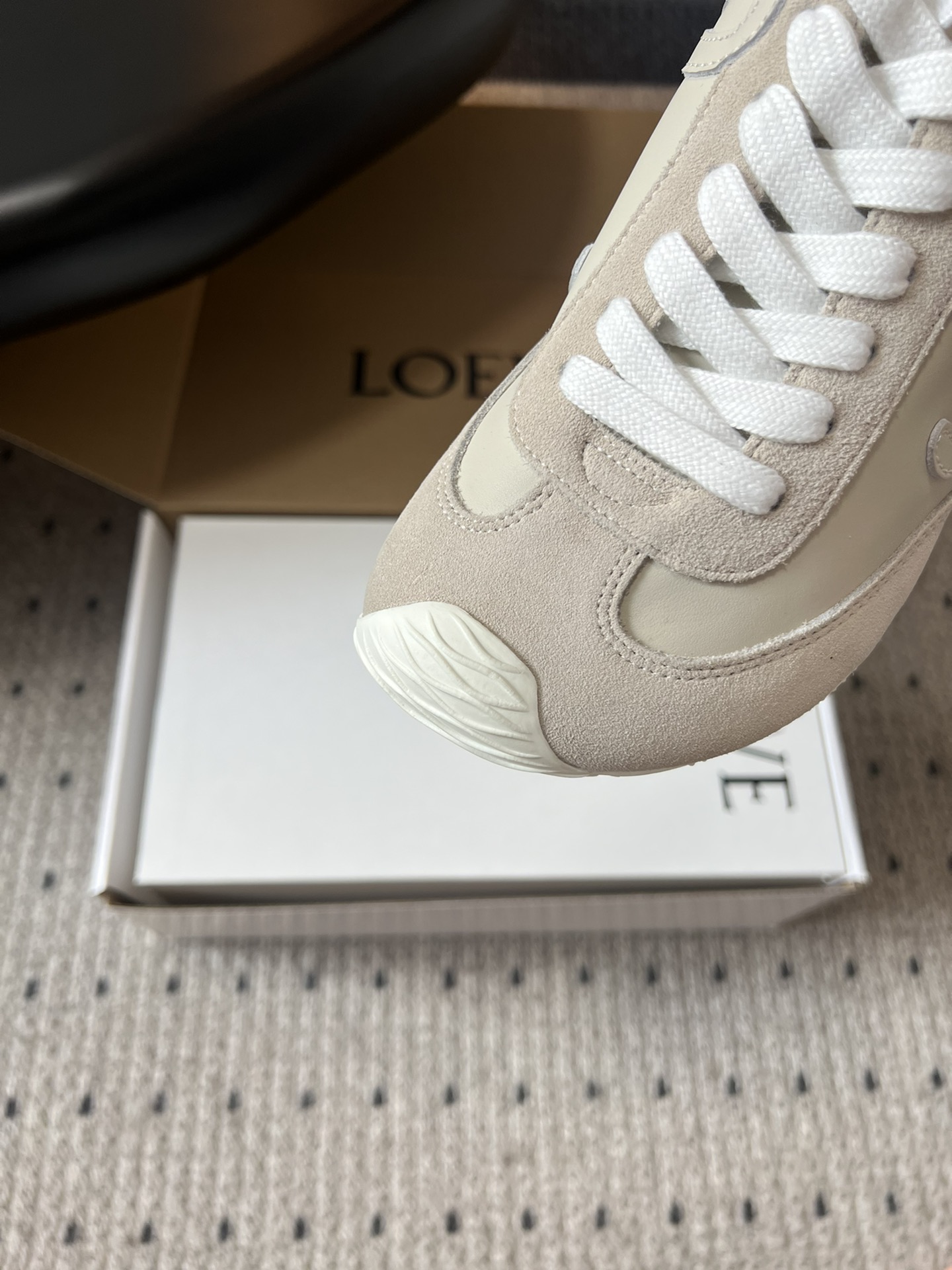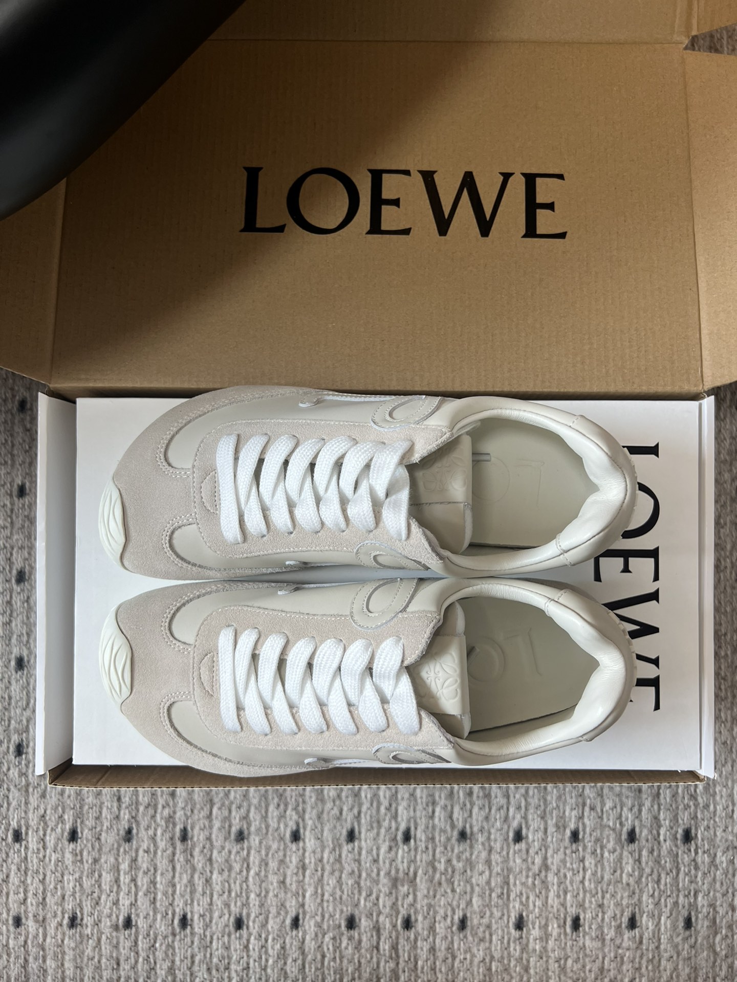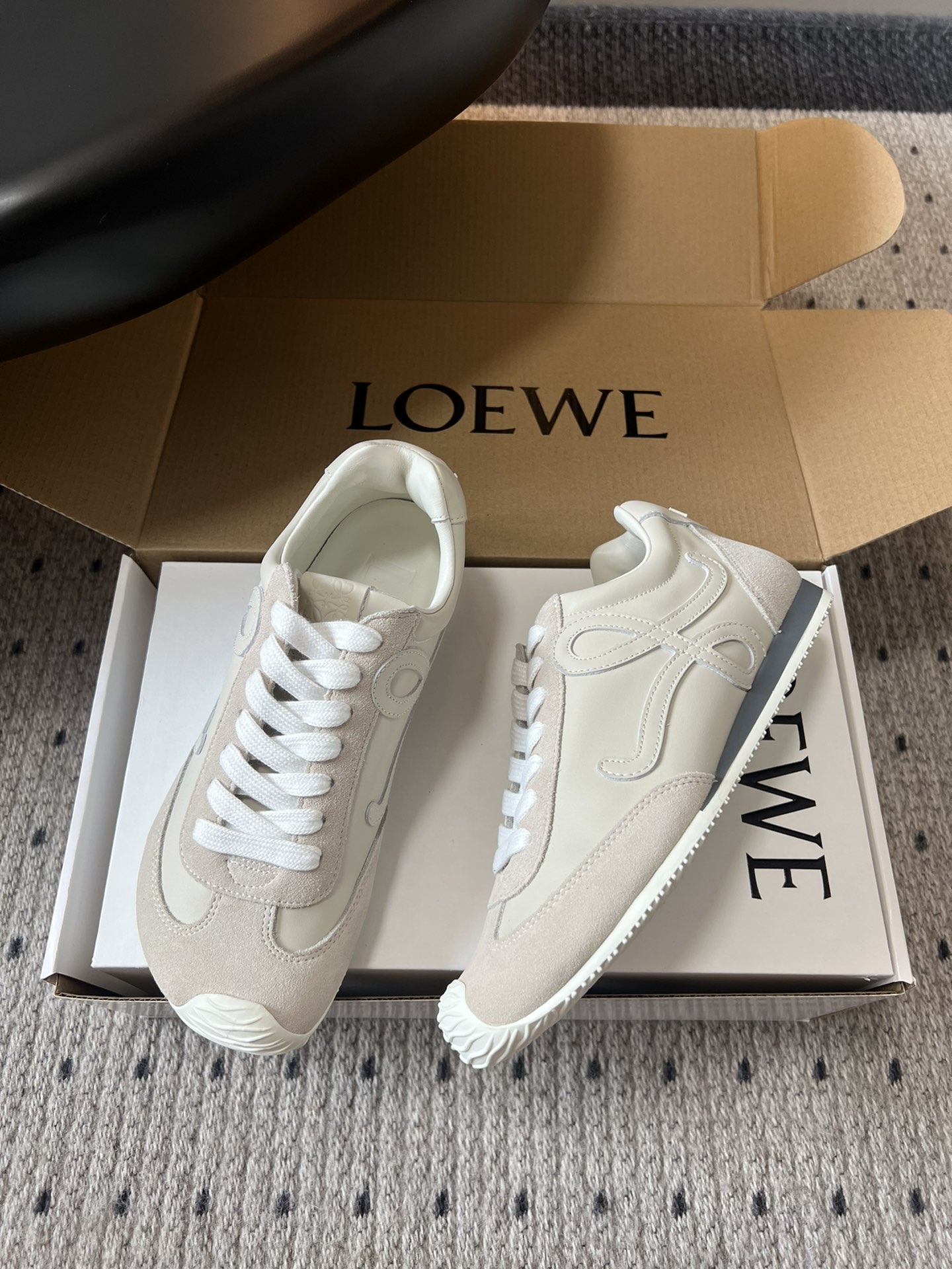 這款鞋子是AAAAA 1:1 質量(非常棒). 使用了和原版一模一樣的材料. 商標部分也保持了和Loewe一樣. 圖片拍攝是實物鞋子拍攝, 您所收到的實物保證和我們圖片一模一樣.