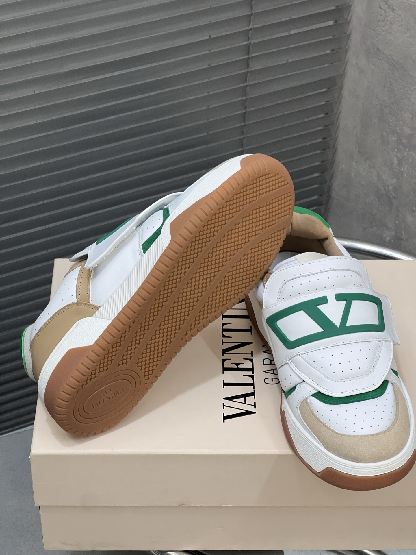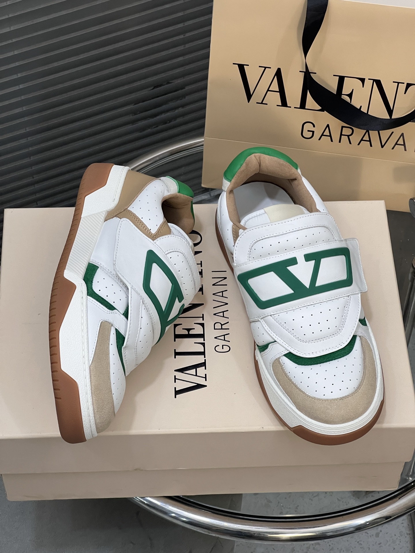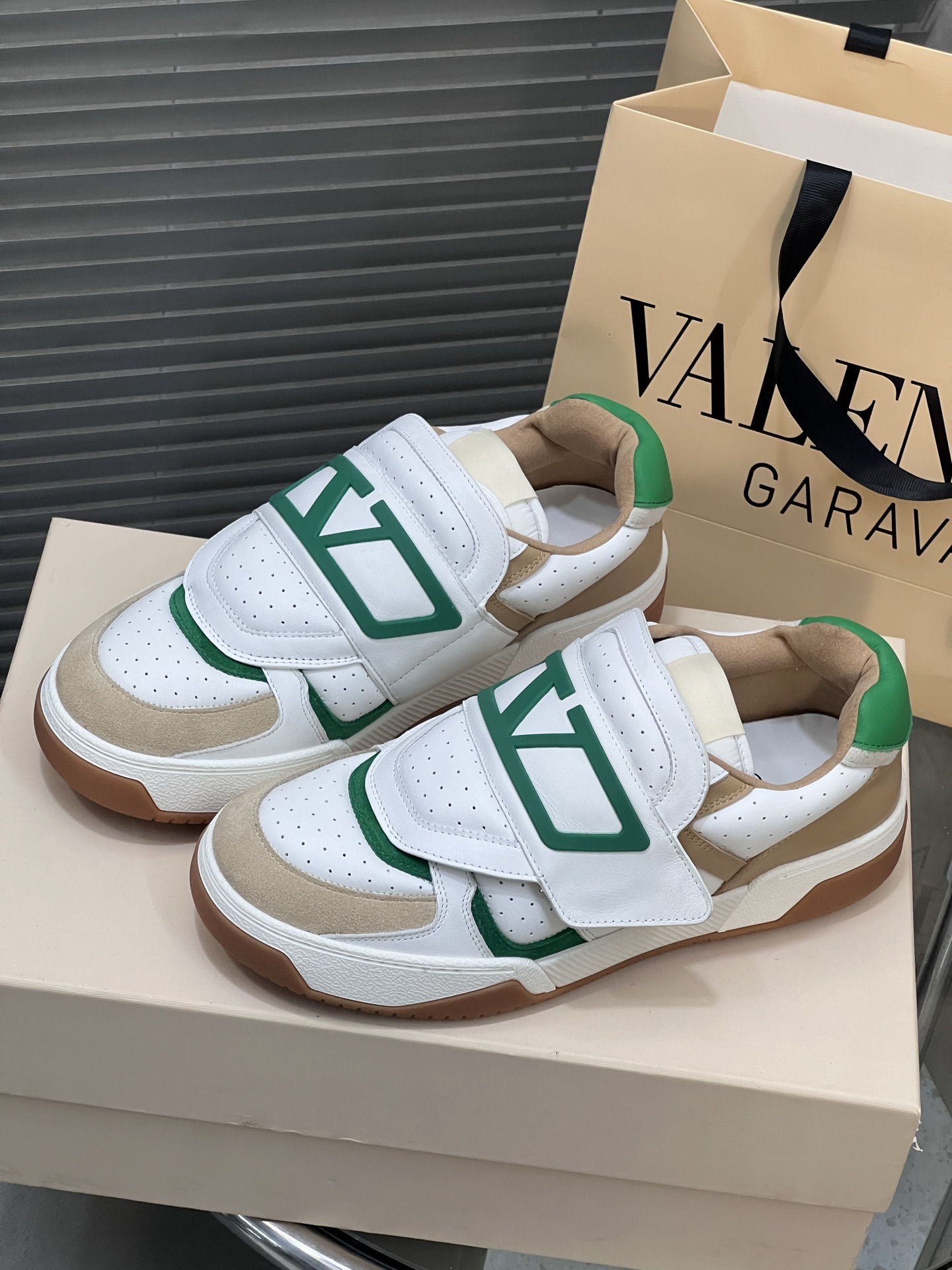 這款鞋子是AAAAA 1:1 質量(非常棒). 使用了和原版一模一樣的材料. 商標部分也保持了和瓦倫蒂諾/Valentino一樣. 圖片拍攝是實物鞋子拍攝, 您所收到的實物保證和我們圖片一模一樣.