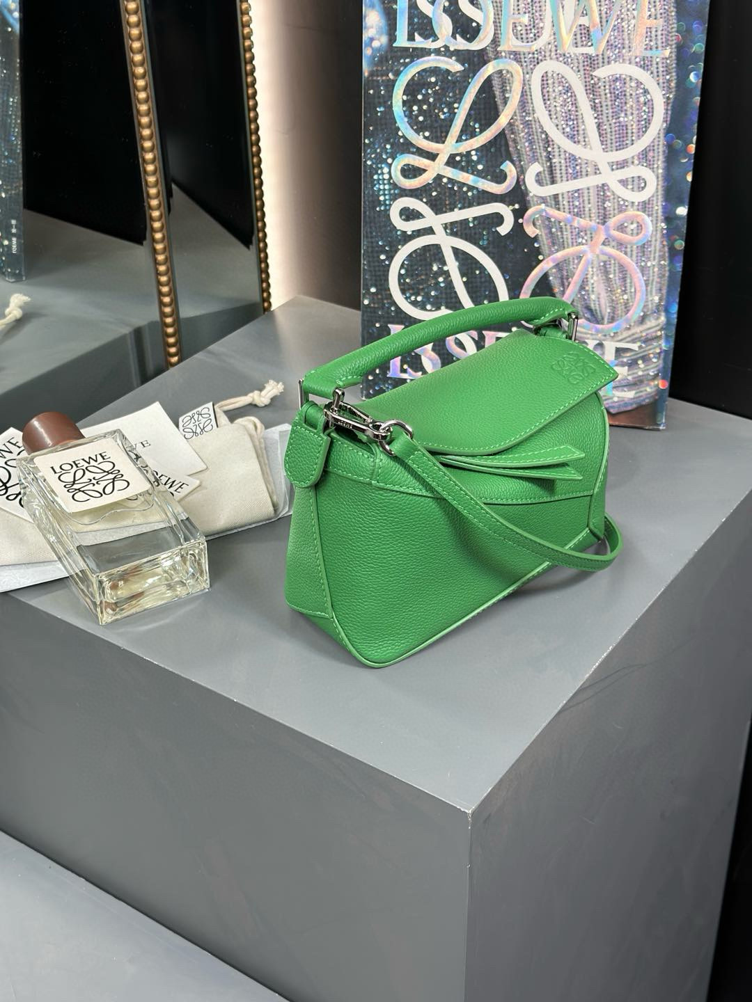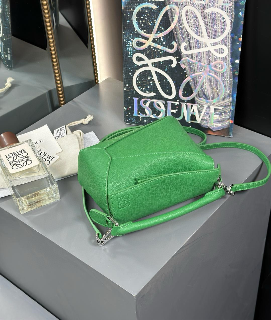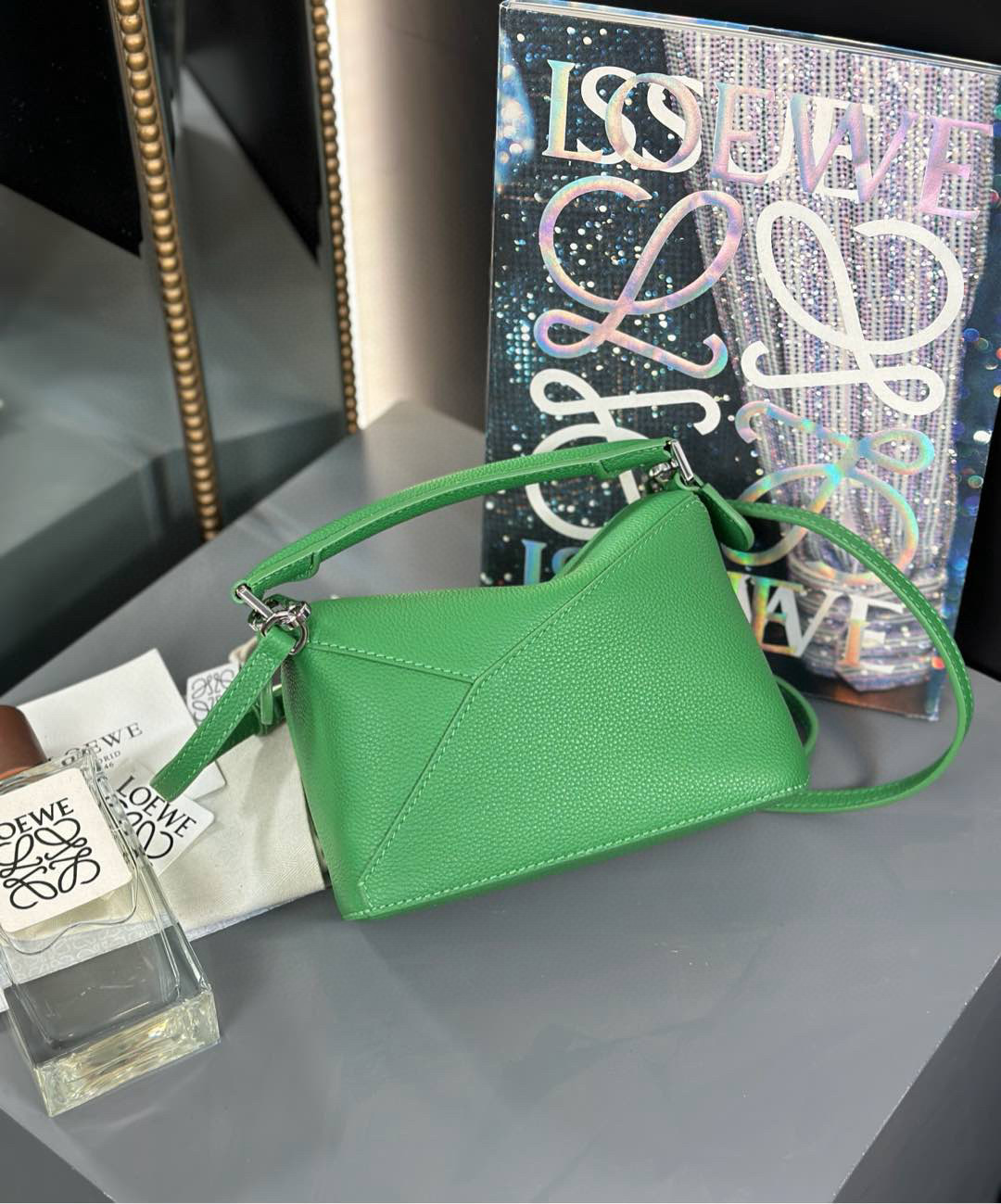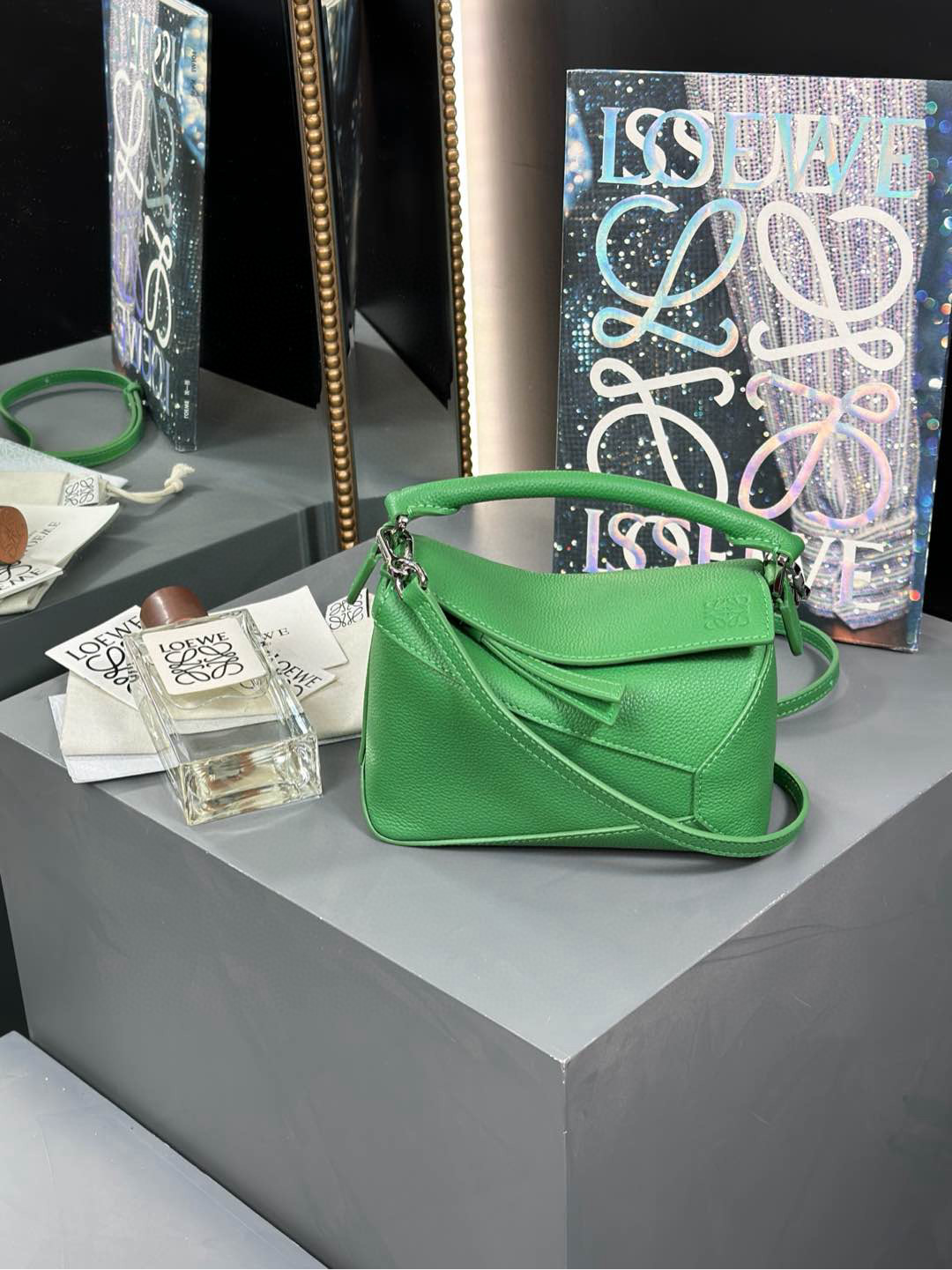 這款包包是AAAAA 1:1 質量(非常棒). 使用了和原版一模一樣的材料. 商標部分也保持了和Loewe一樣. 圖片拍攝是實物包包拍攝, 您所收到的實物保證和我們圖片一模一樣.