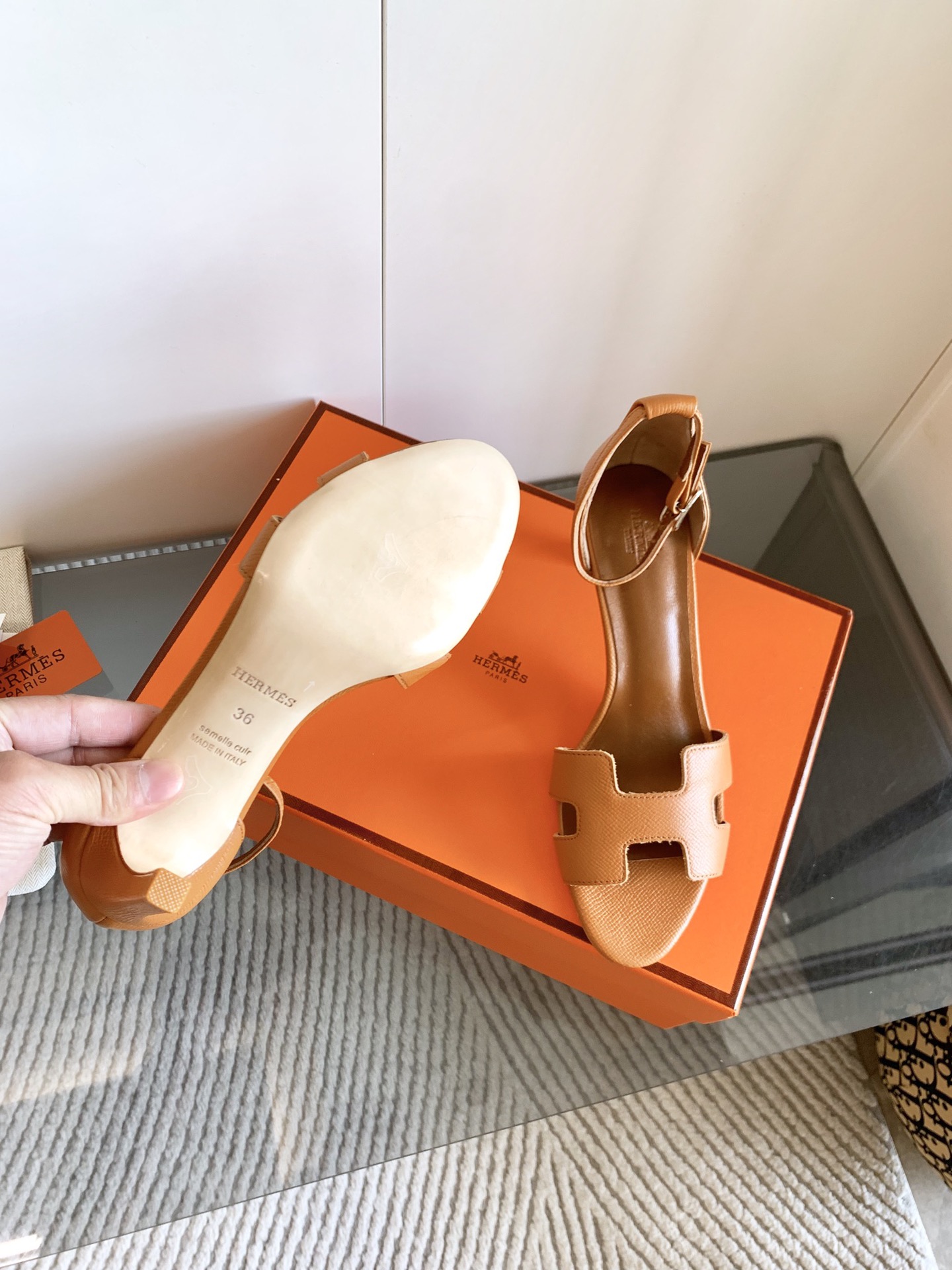 這款鞋子是AAAAA 1:1 質量(非常棒). 使用了和原版一模一樣的材料. 商標部分也保持了和愛馬仕/Hermes一樣. 圖片拍攝是實物鞋子拍攝, 您所收到的實物保證和我們圖片一模一樣.