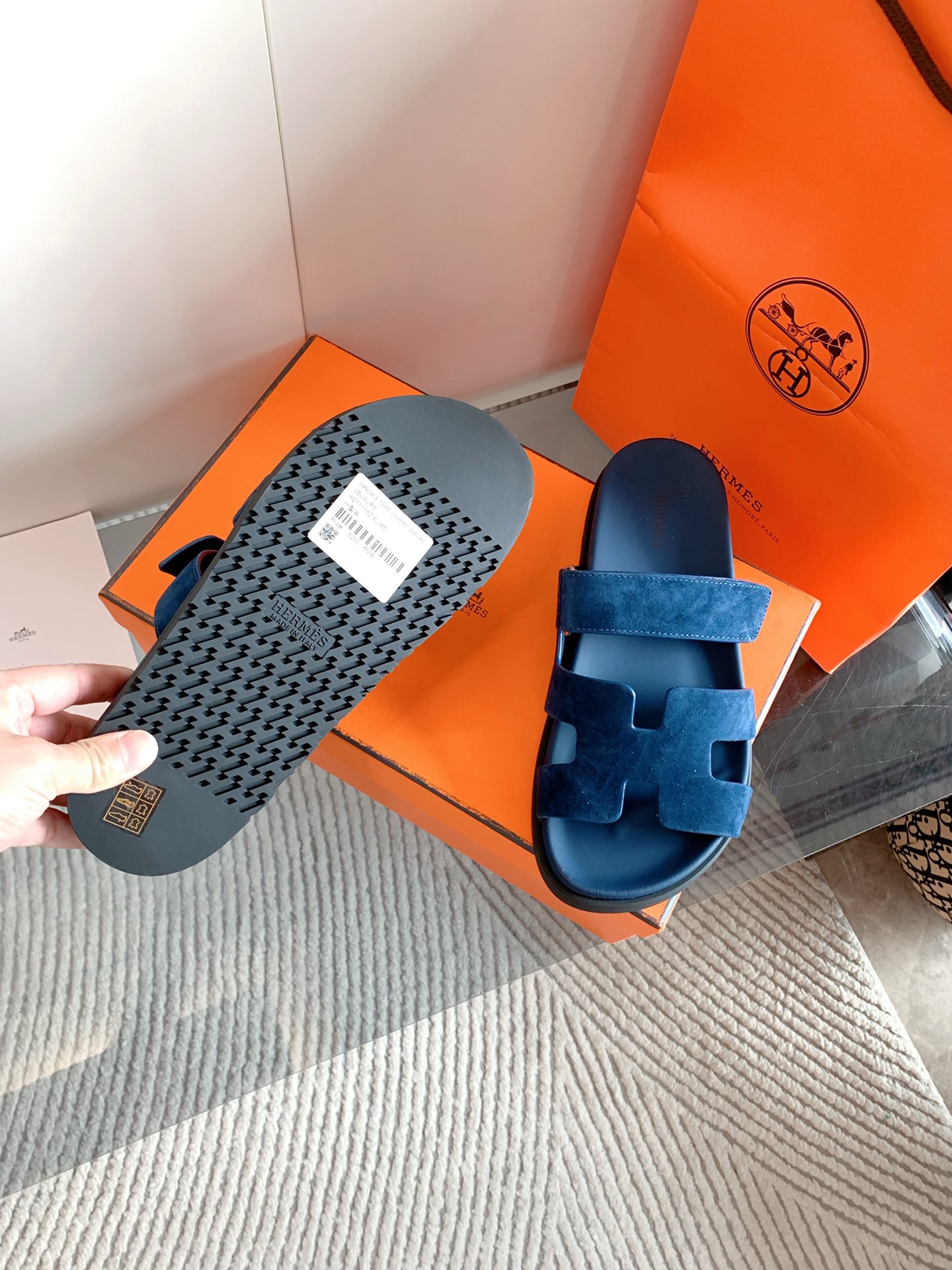 這款鞋子是AAAAA 1:1 質量(非常棒). 使用了和原版一模一樣的材料. 商標部分也保持了和愛馬仕/Hermes一樣. 圖片拍攝是實物鞋子拍攝, 您所收到的實物保證和我們圖片一模一樣.