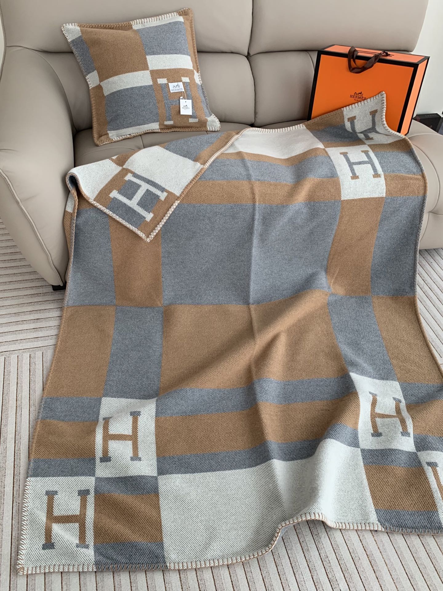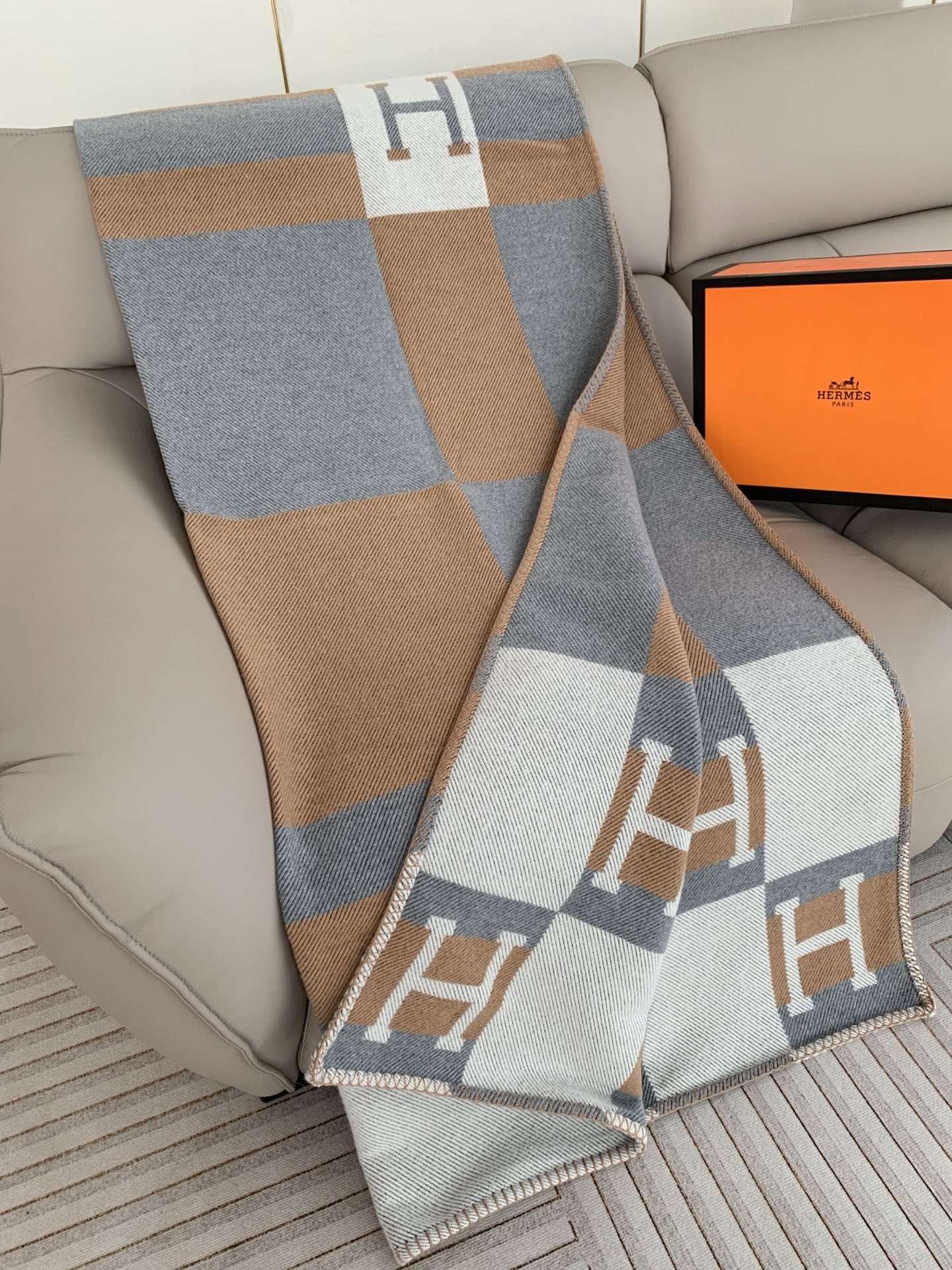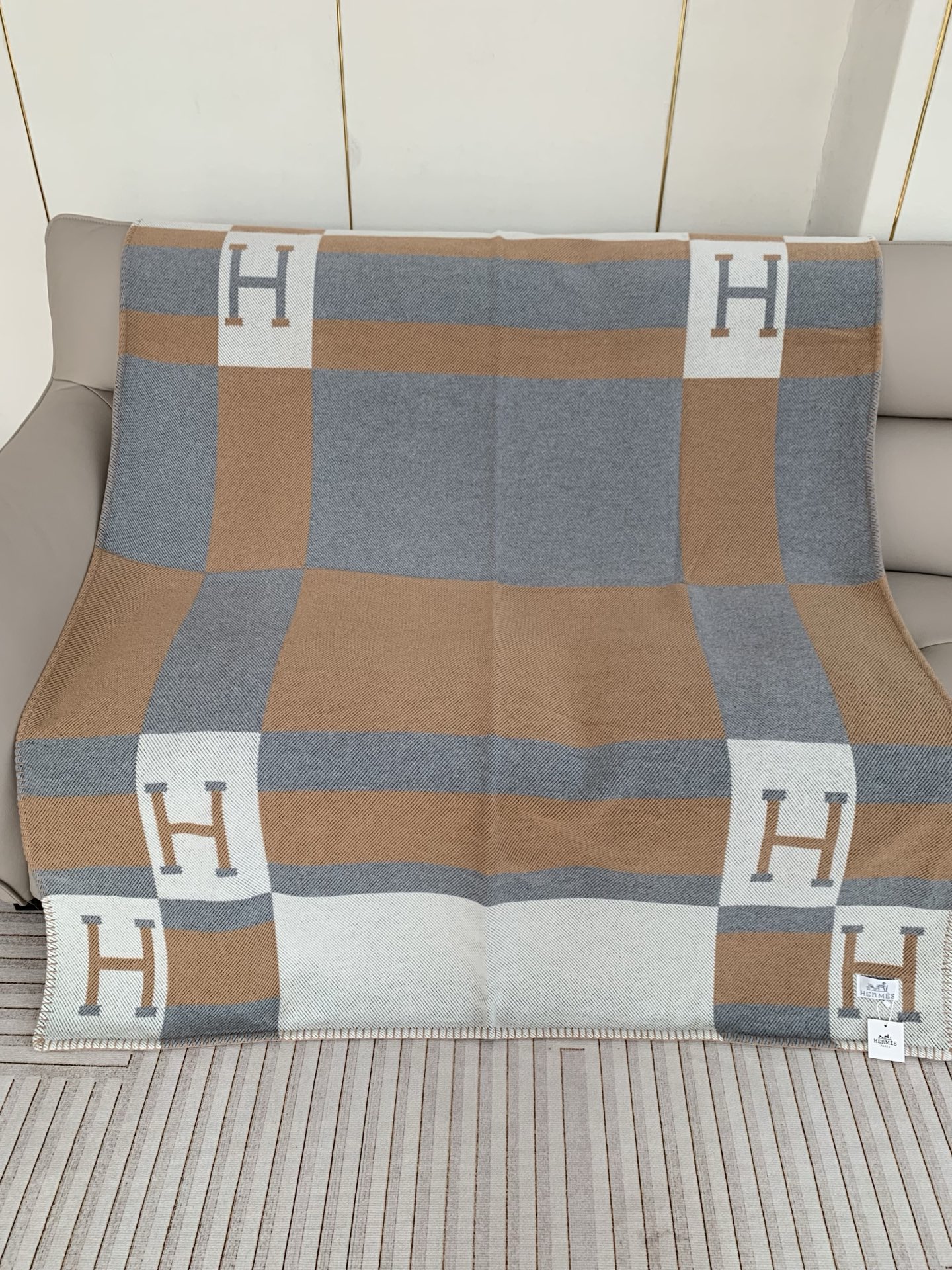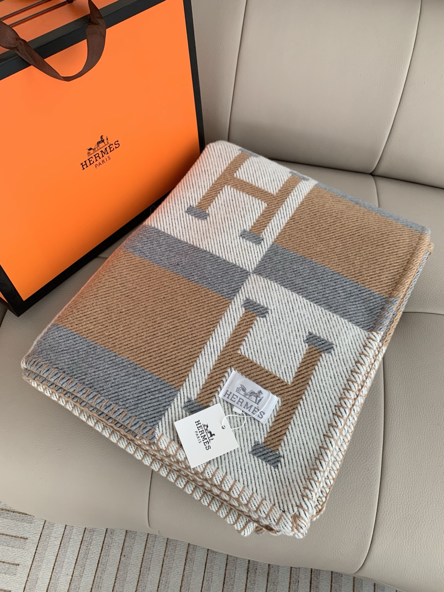 這款毯是AAAAA 1:1 質量(非常棒). 使用了和原版一模一樣的材料. 商標部分也保持了和愛馬仕/Hermes一樣. 圖片拍攝是實物毯拍攝, 您所收到的實物保證和我們圖片一模一樣.