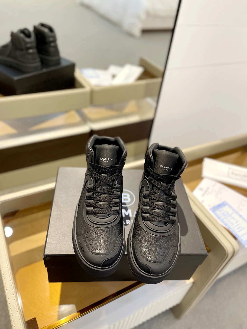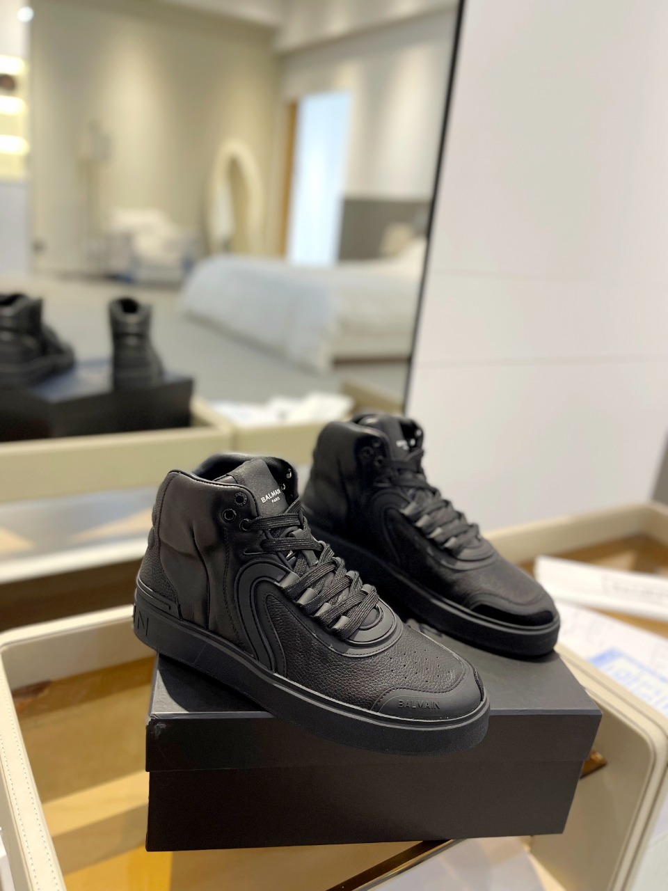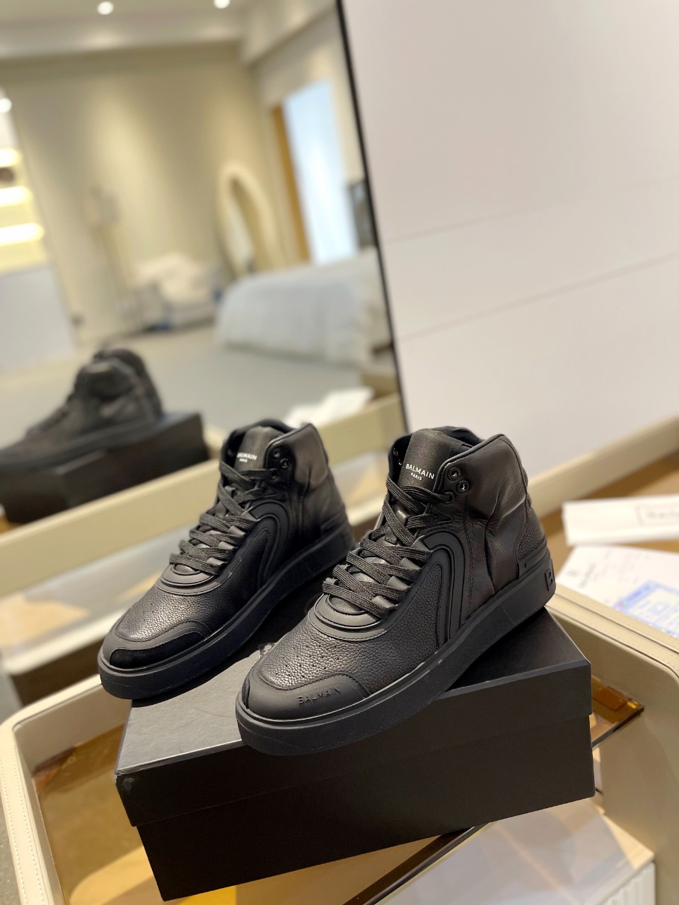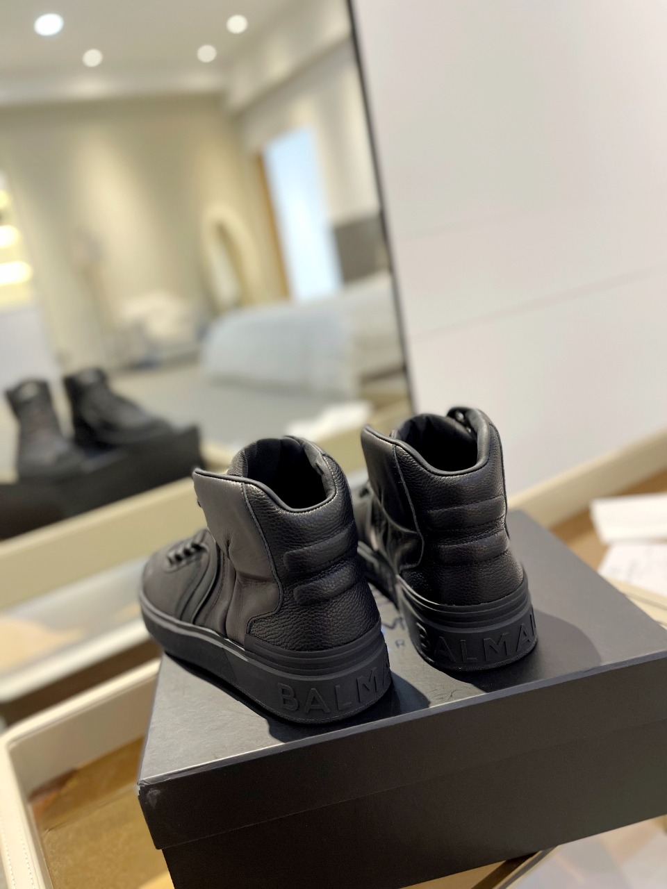 這款鞋子是AAAAA 1:1 質量(非常棒). 使用了和原版一模一樣的材料. 商標部分也保持了和巴爾曼/Balmain一樣. 圖片拍攝是實物鞋子拍攝, 您所收到的實物保證和我們圖片一模一樣.