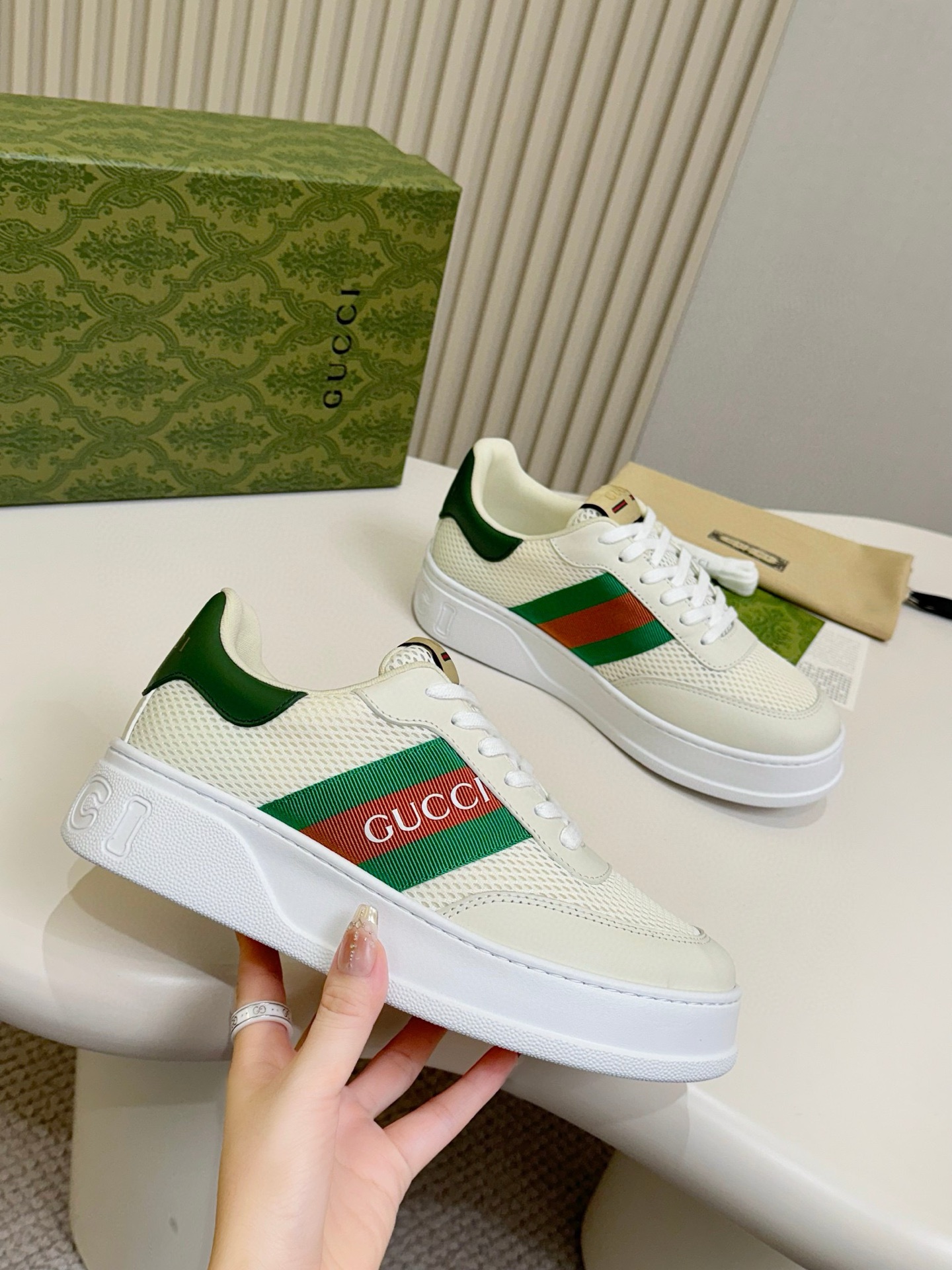 這款鞋子是AAAAA 1:1 質量(非常棒). 使用了和原版一模一樣的材料. 商標部分也保持了和古奇/Gucci一樣. 圖片拍攝是實物鞋子拍攝, 您所收到的實物保證和我們圖片一模一樣.