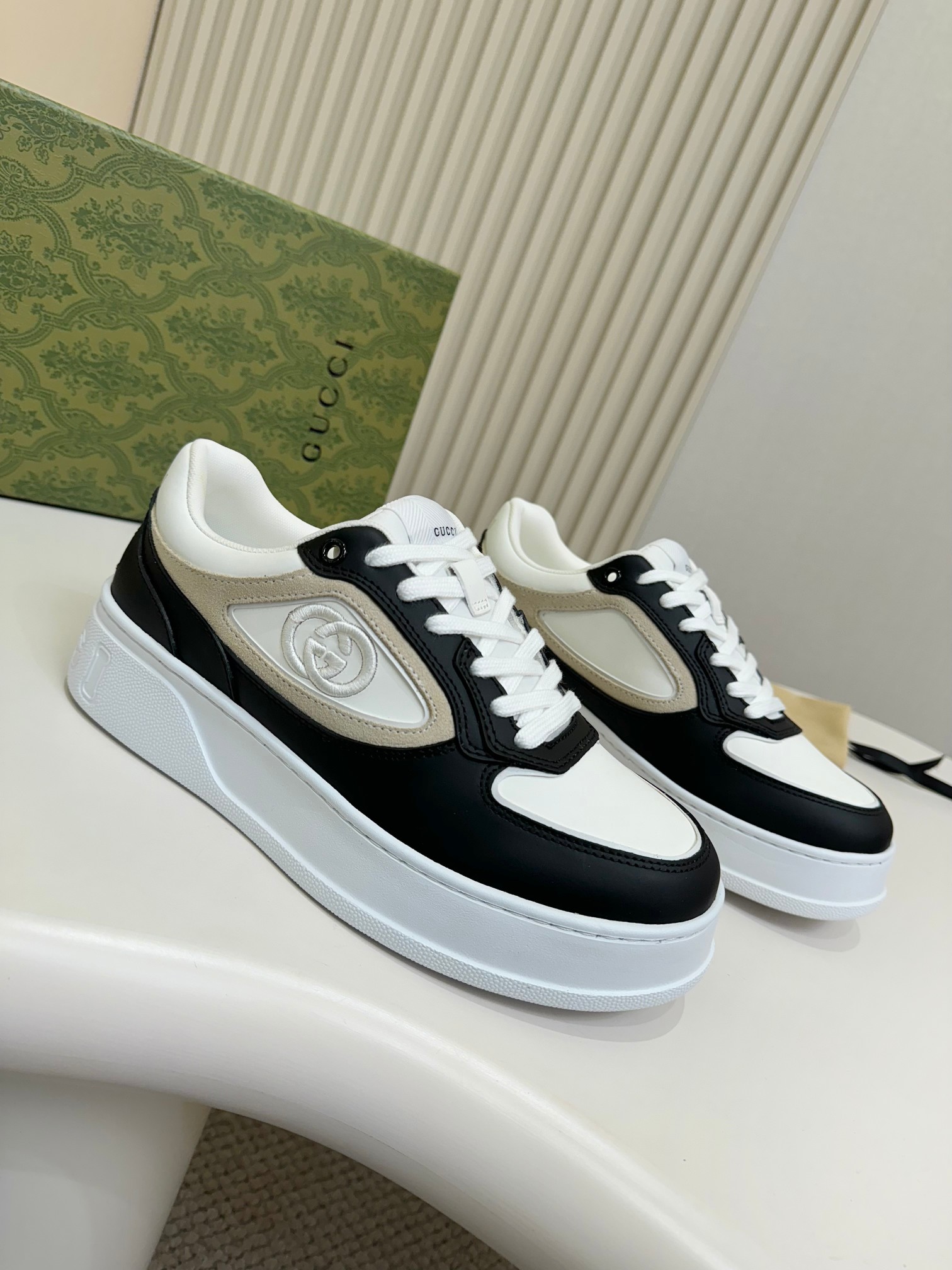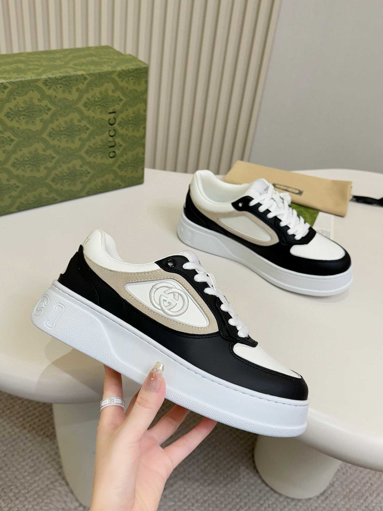 這款鞋子是AAAAA 1:1 質量(非常棒). 使用了和原版一模一樣的材料. 商標部分也保持了和古奇/Gucci一樣. 圖片拍攝是實物鞋子拍攝, 您所收到的實物保證和我們圖片一模一樣.