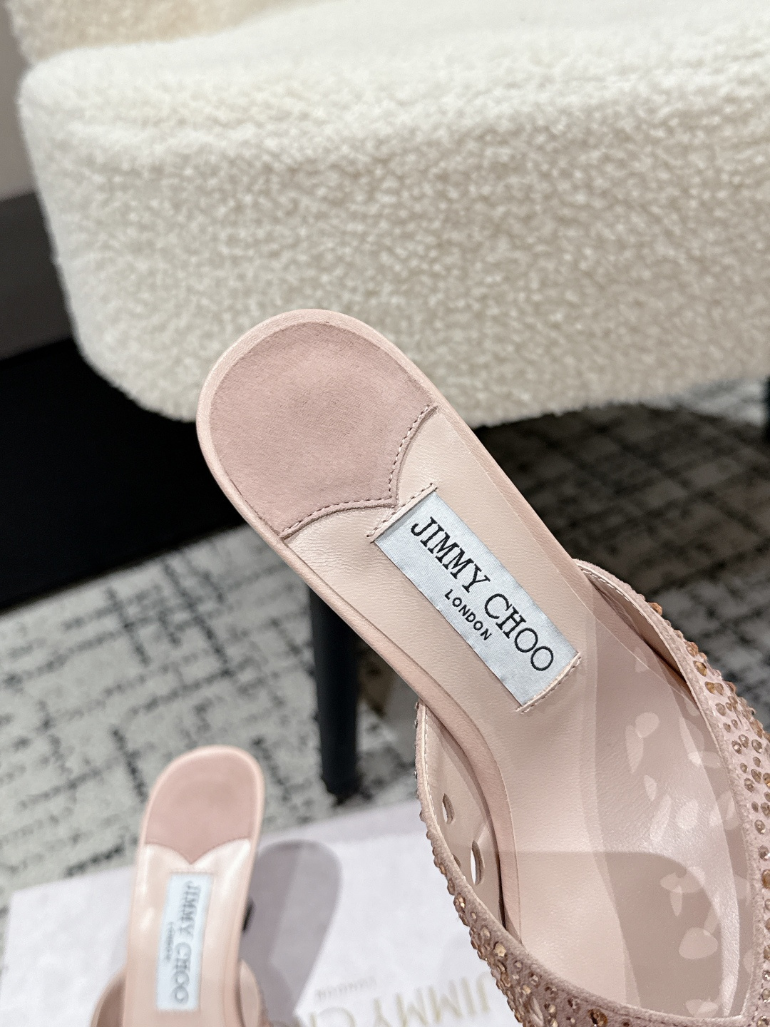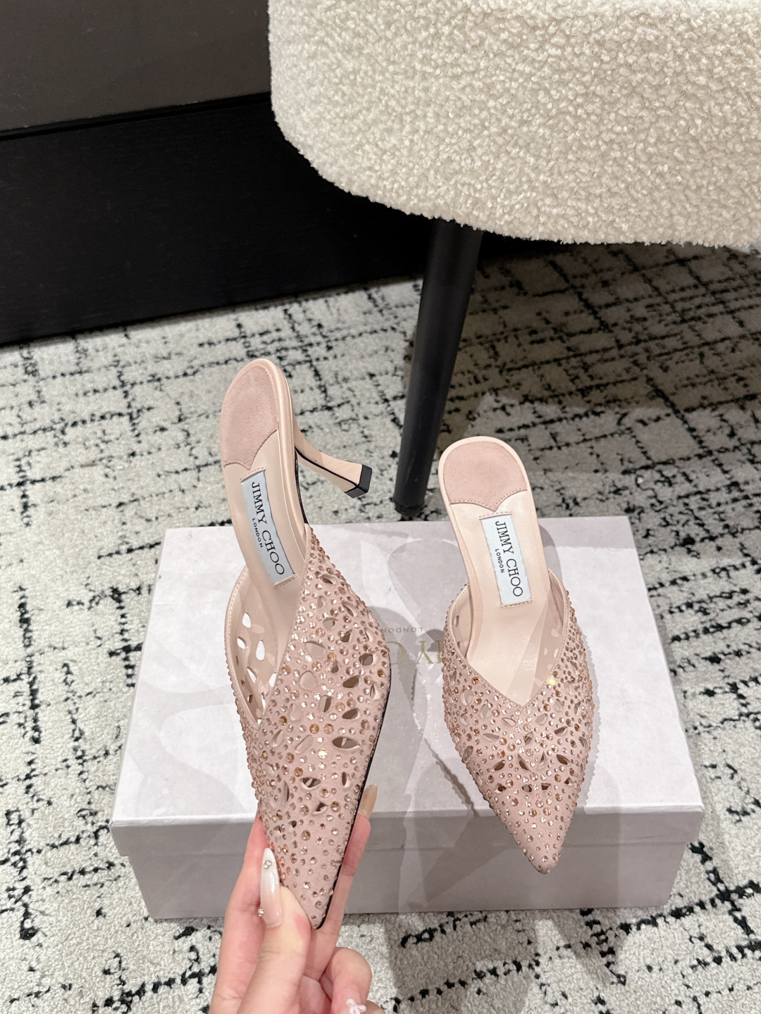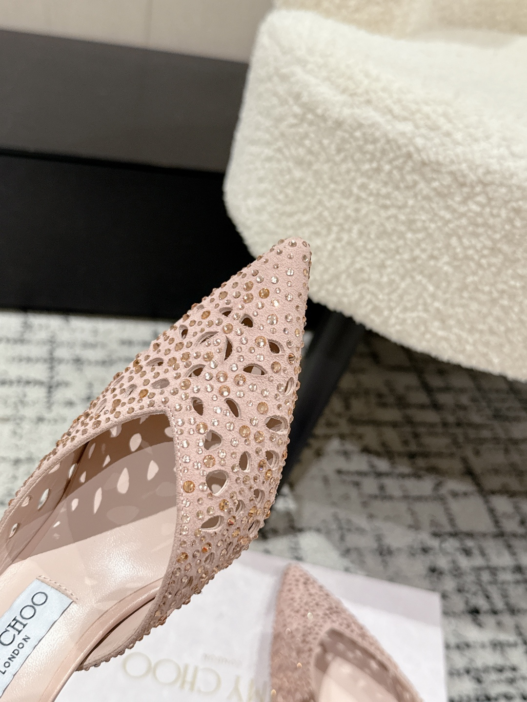 這款鞋子是AAAAA 1:1 質量(非常棒). 使用了和原版一模一樣的材料. 商標部分也保持了和吉米喬/JIMMY CHOO一樣. 圖片拍攝是實物鞋子拍攝, 您所收到的實物保證和我們圖片一模一樣.