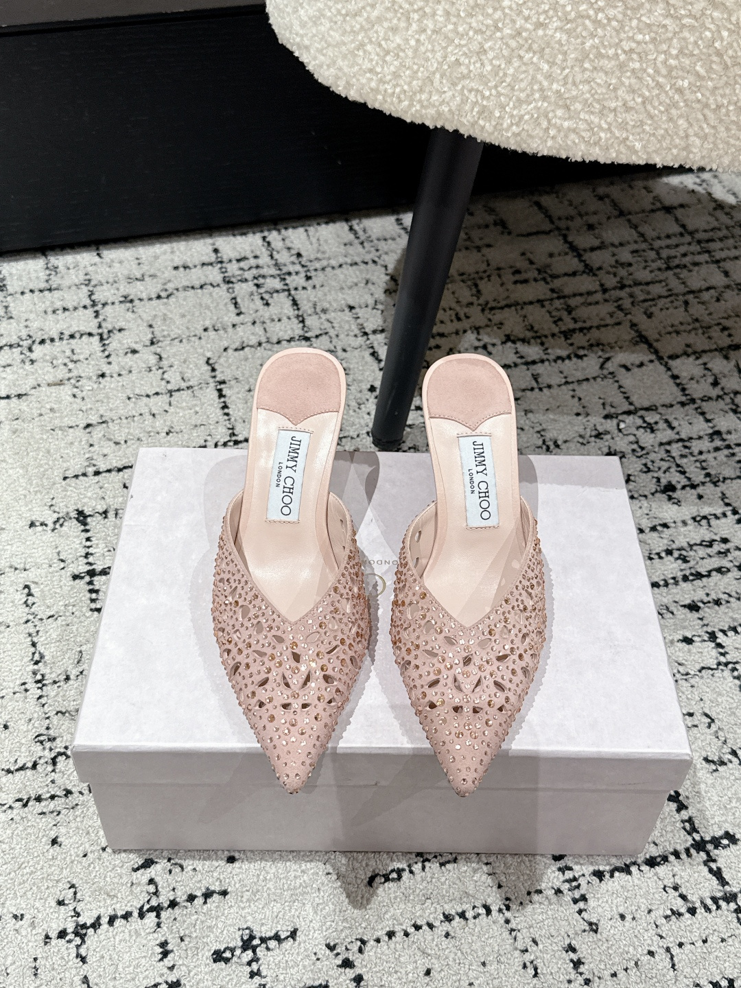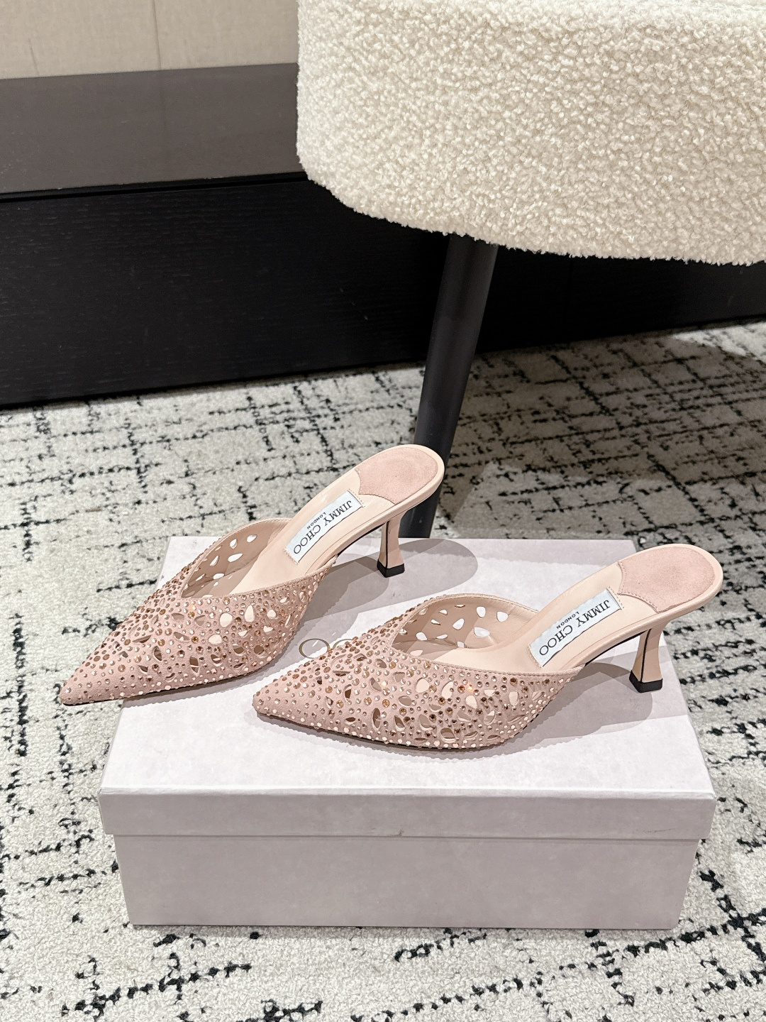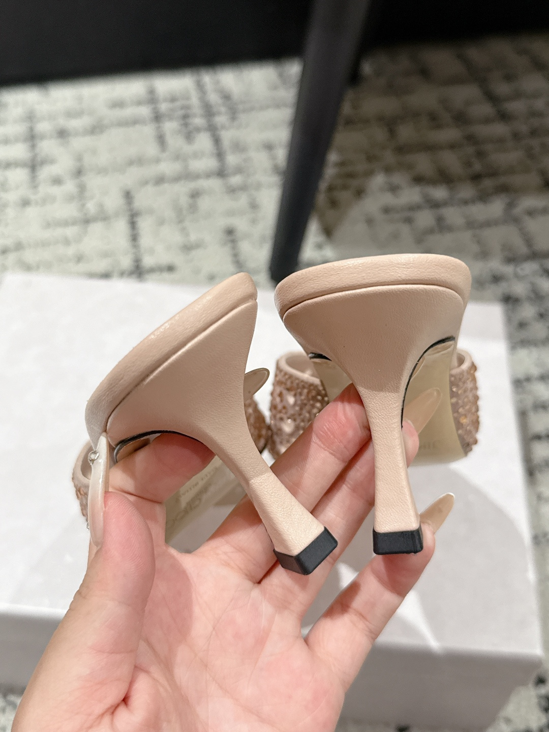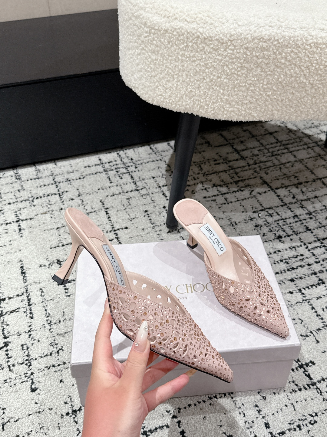這款鞋子是AAAAA 1:1 質量(非常棒). 使用了和原版一模一樣的材料. 商標部分也保持了和吉米喬/JIMMY CHOO一樣. 圖片拍攝是實物鞋子拍攝, 您所收到的實物保證和我們圖片一模一樣.