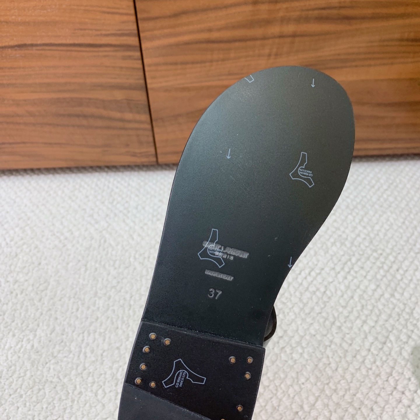 這款鞋子是AAAAA 1:1 質量(非常棒). 使用了和原版一模一樣的材料. 商標部分也保持了和聖羅蘭/Saint Laurent一樣. 圖片拍攝是實物鞋子拍攝, 您所收到的實物保證和我們圖片一模一樣.