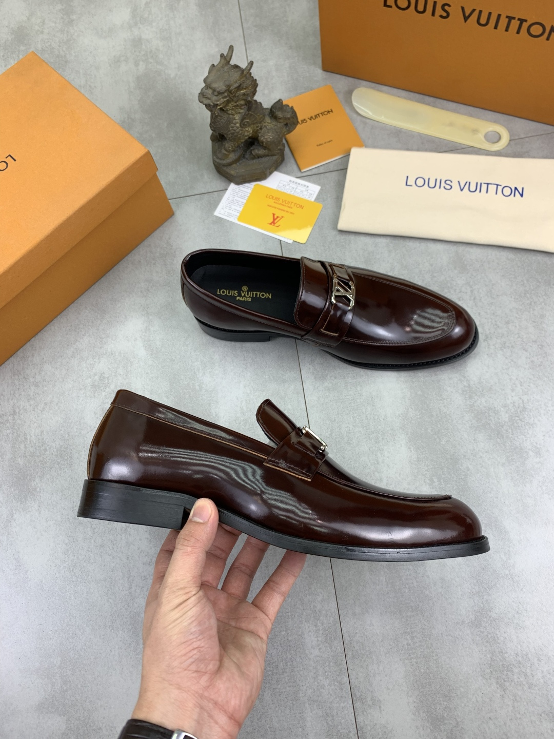 這款鞋子是AAAAA 1:1 質量(非常棒). 使用了和原版一模一樣的材料. 商標部分也保持了和路易威登/Louis Vuitton一樣. 圖片拍攝是實物鞋子拍攝, 您所收到的實物保證和我們圖片一模一樣.