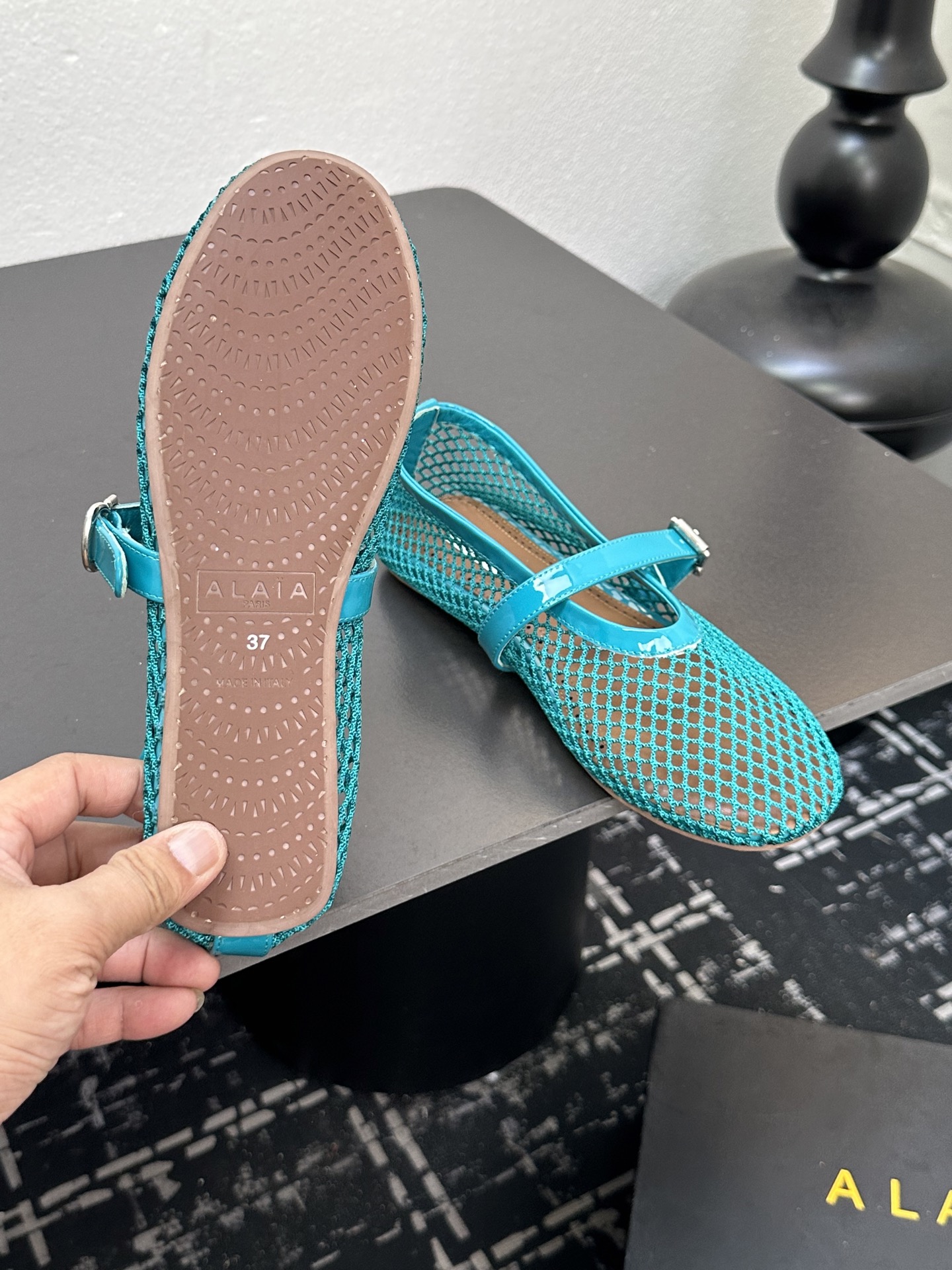 這款鞋子是AAAAA 1:1 質量(非常棒). 使用了和原版一模一樣的材料. 商標部分也保持了和Alaia一樣. 圖片拍攝是實物鞋子拍攝, 您所收到的實物保證和我們圖片一模一樣.