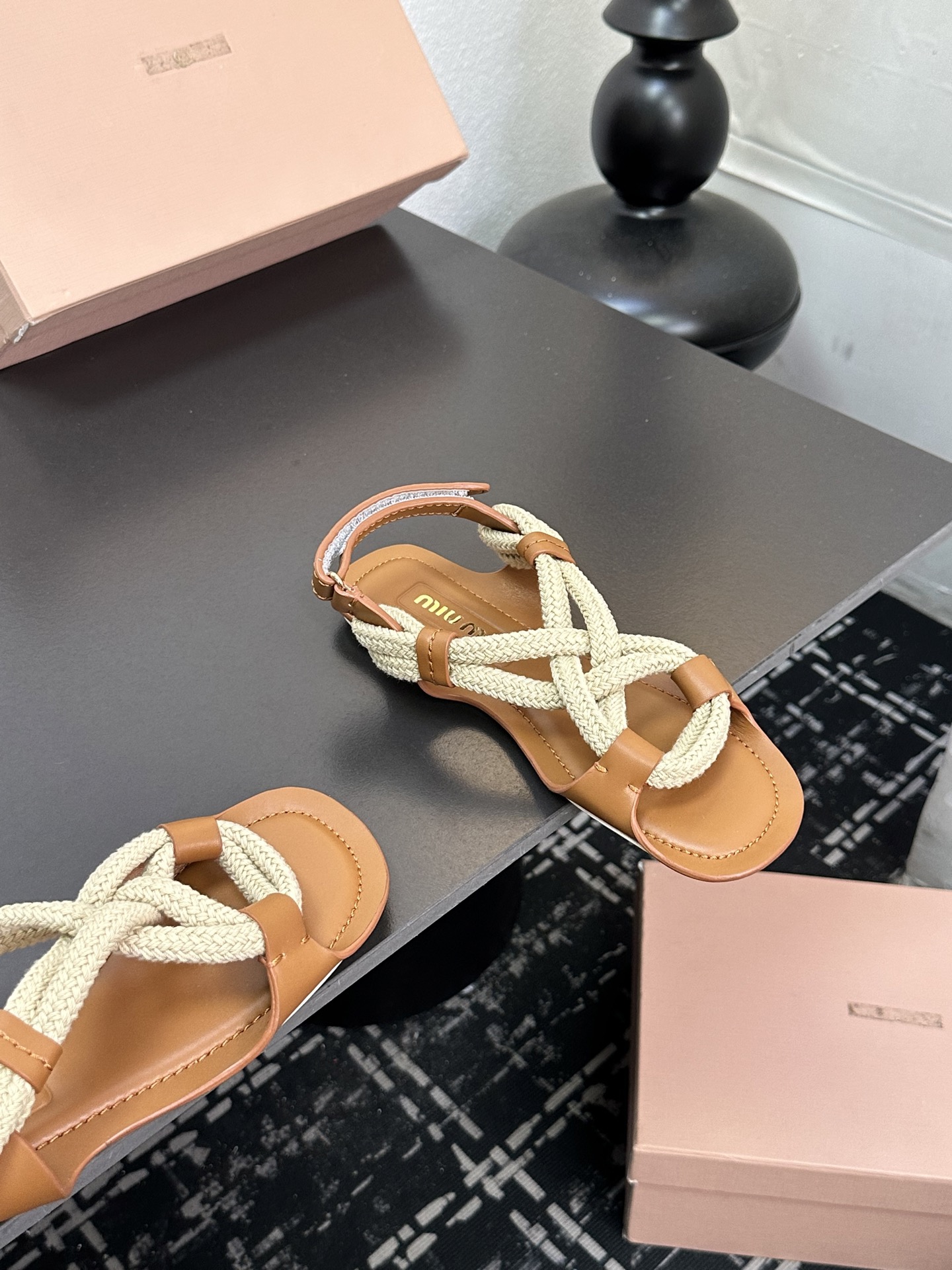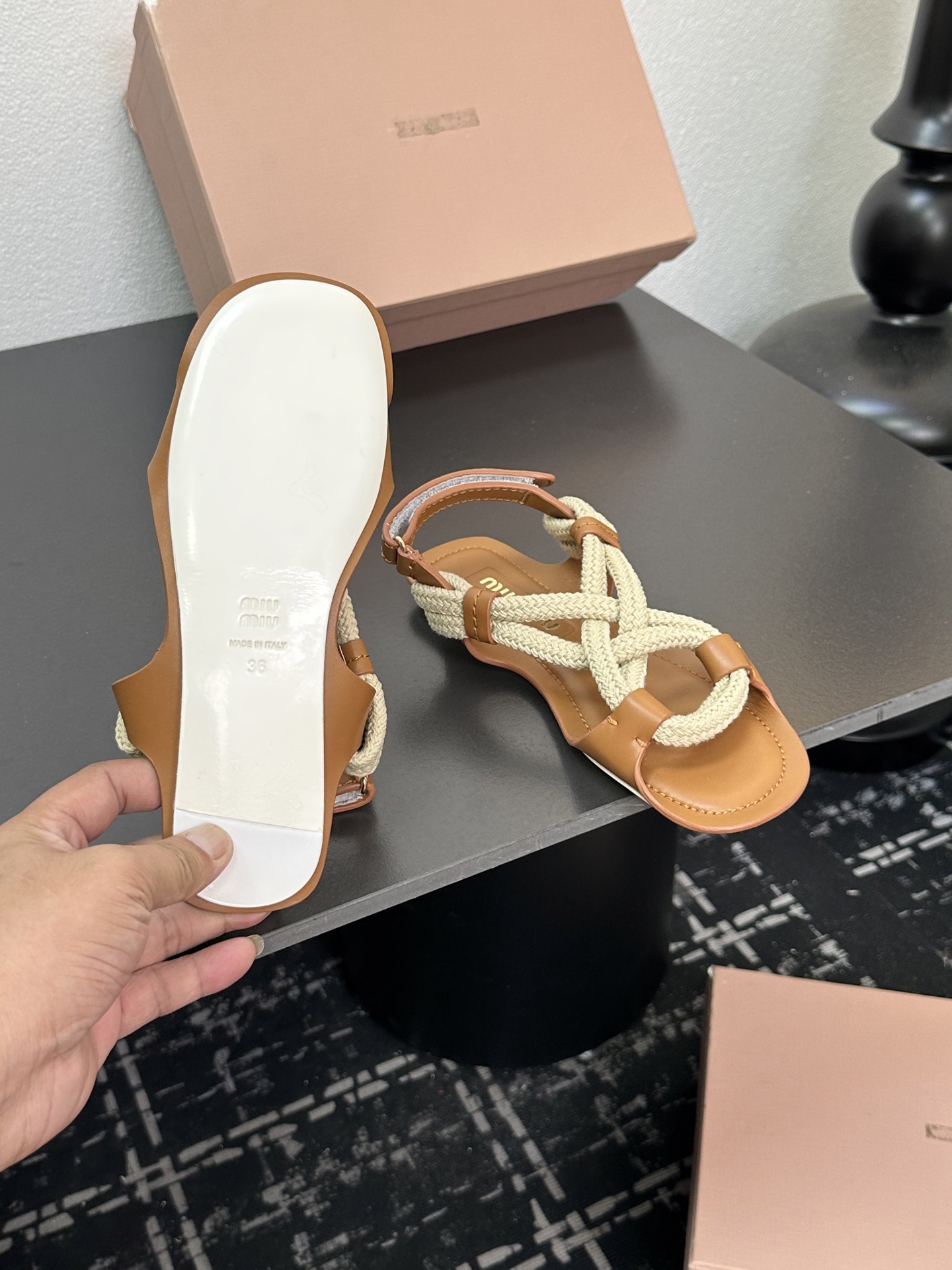 這款鞋子是AAAAA 1:1 質量(非常棒). 使用了和原版一模一樣的材料. 商標部分也保持了和繆繆/Miu Miu一樣. 圖片拍攝是實物鞋子拍攝, 您所收到的實物保證和我們圖片一模一樣.