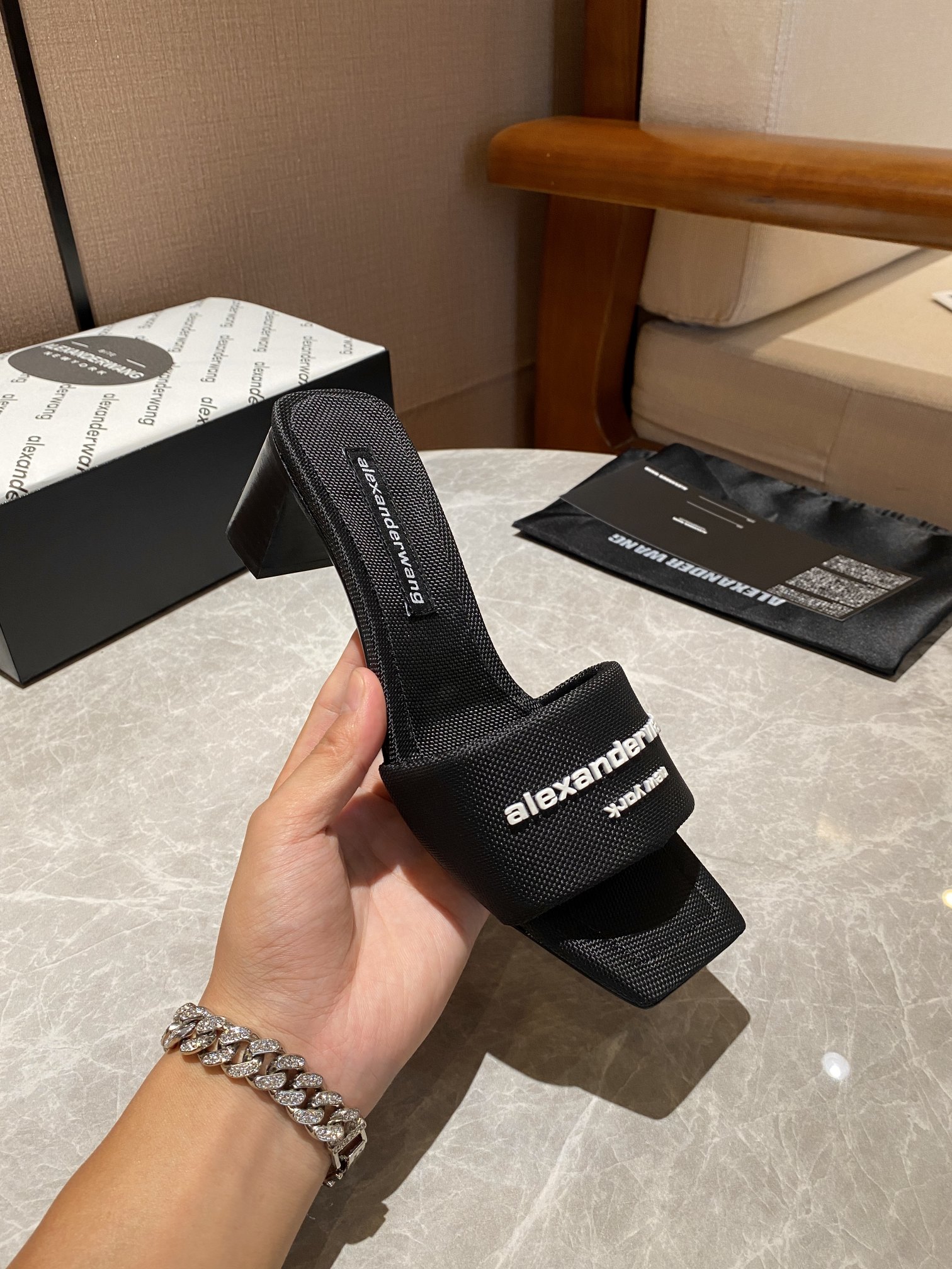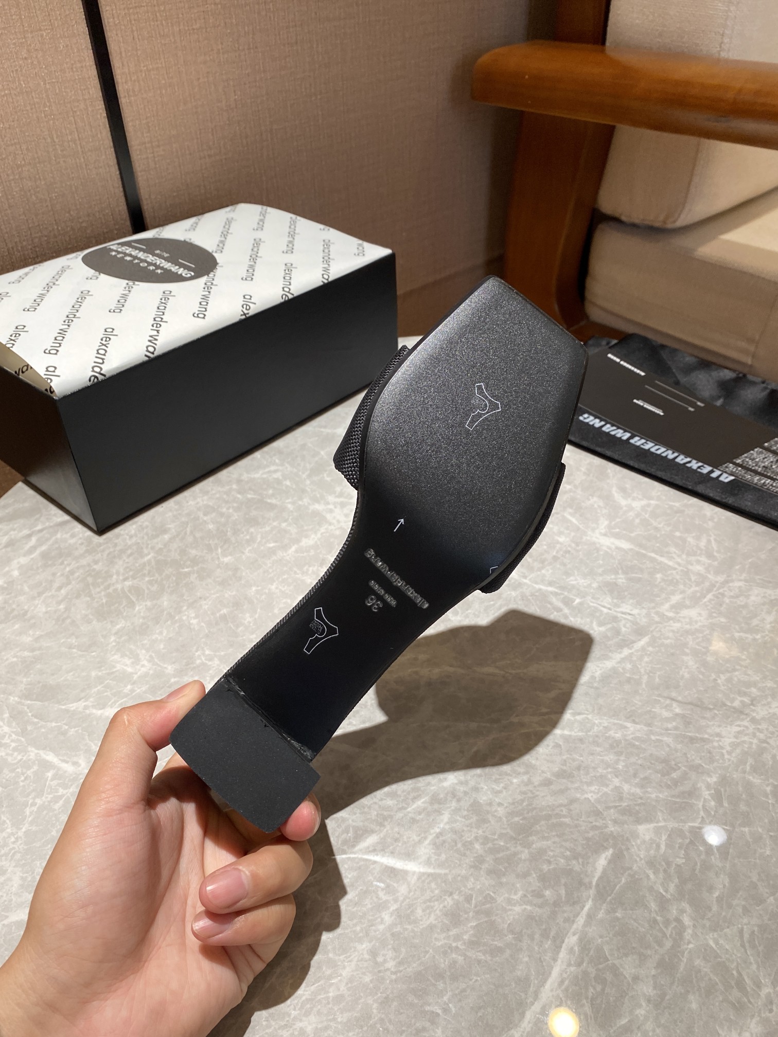 這款鞋子是AAAAA 1:1 質量(非常棒). 使用了和原版一模一樣的材料. 商標部分也保持了和Alexander Wang一樣. 圖片拍攝是實物鞋子拍攝, 您所收到的實物保證和我們圖片一模一樣.