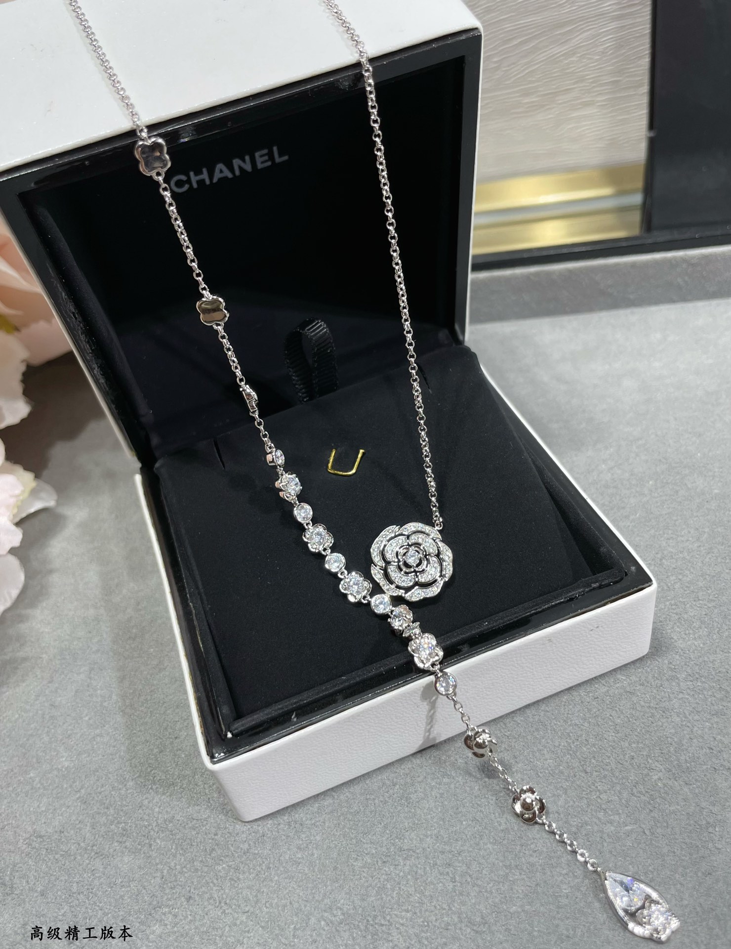 這款首飾是AAAAA 1:1 質量(非常棒). 使用了和原版一模一樣的材料. 商標部分也保持了和香奈兒/Chanel一樣. 圖片拍攝是實物首飾拍攝, 您所收到的實物保證和我們圖片一模一樣.