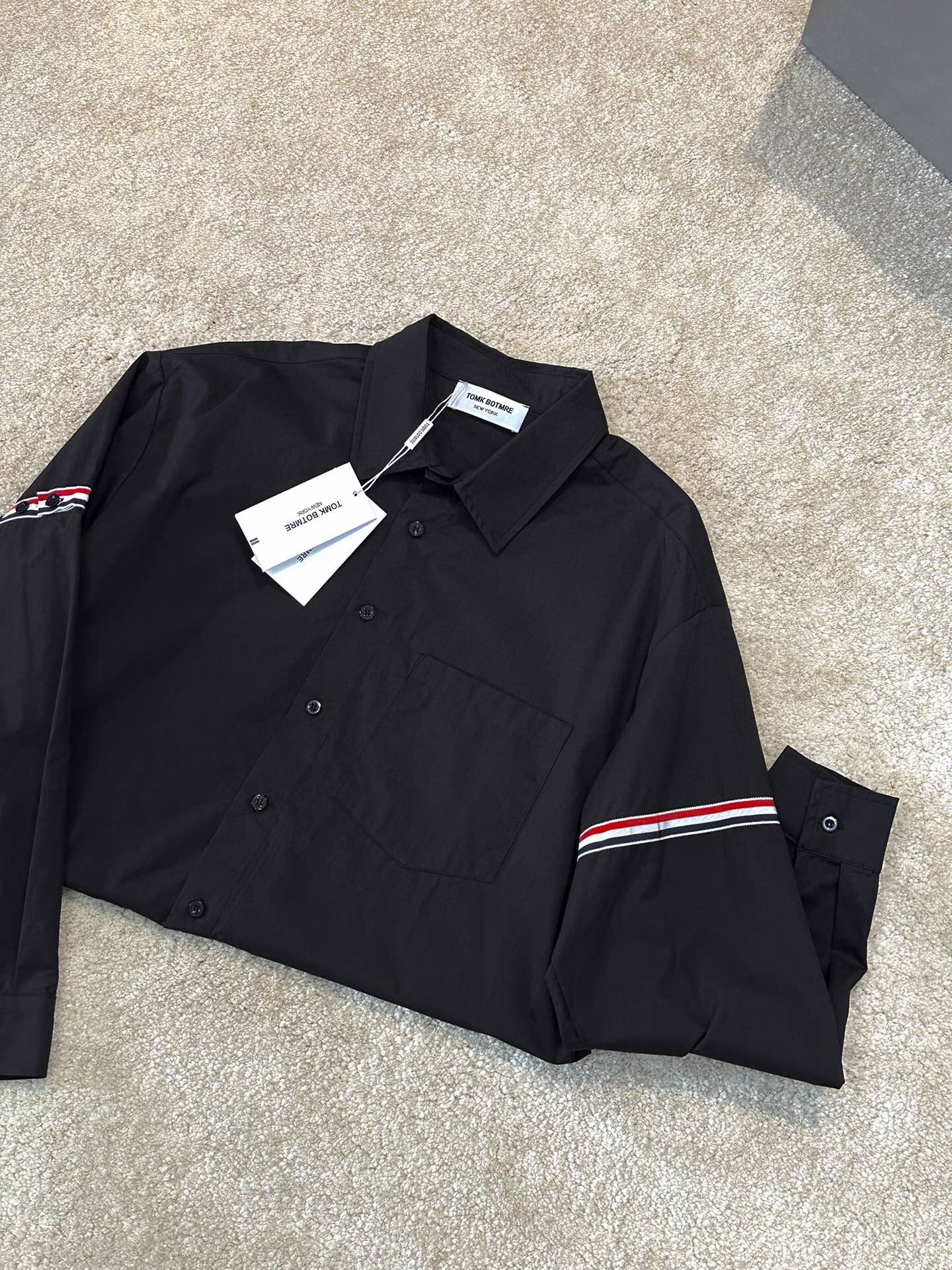 這款衣服是AAAAA 1:1 質量(非常棒). 使用了和原版一模一樣的材料. 商標部分也保持了和湯姆布朗/Thom Browne一樣. 圖片拍攝是實物衣服拍攝, 您所收到的實物保證和我們圖片一模一樣.