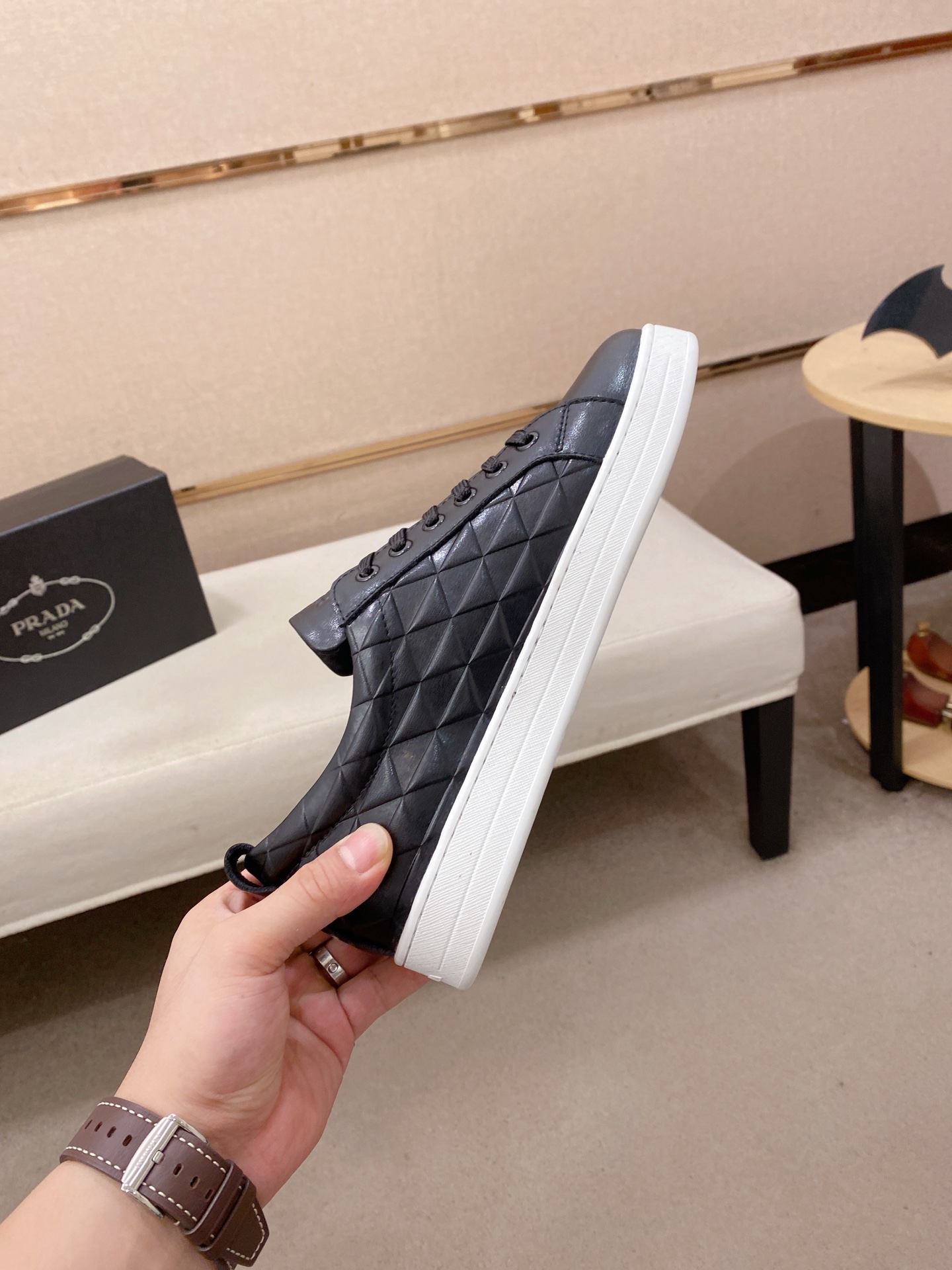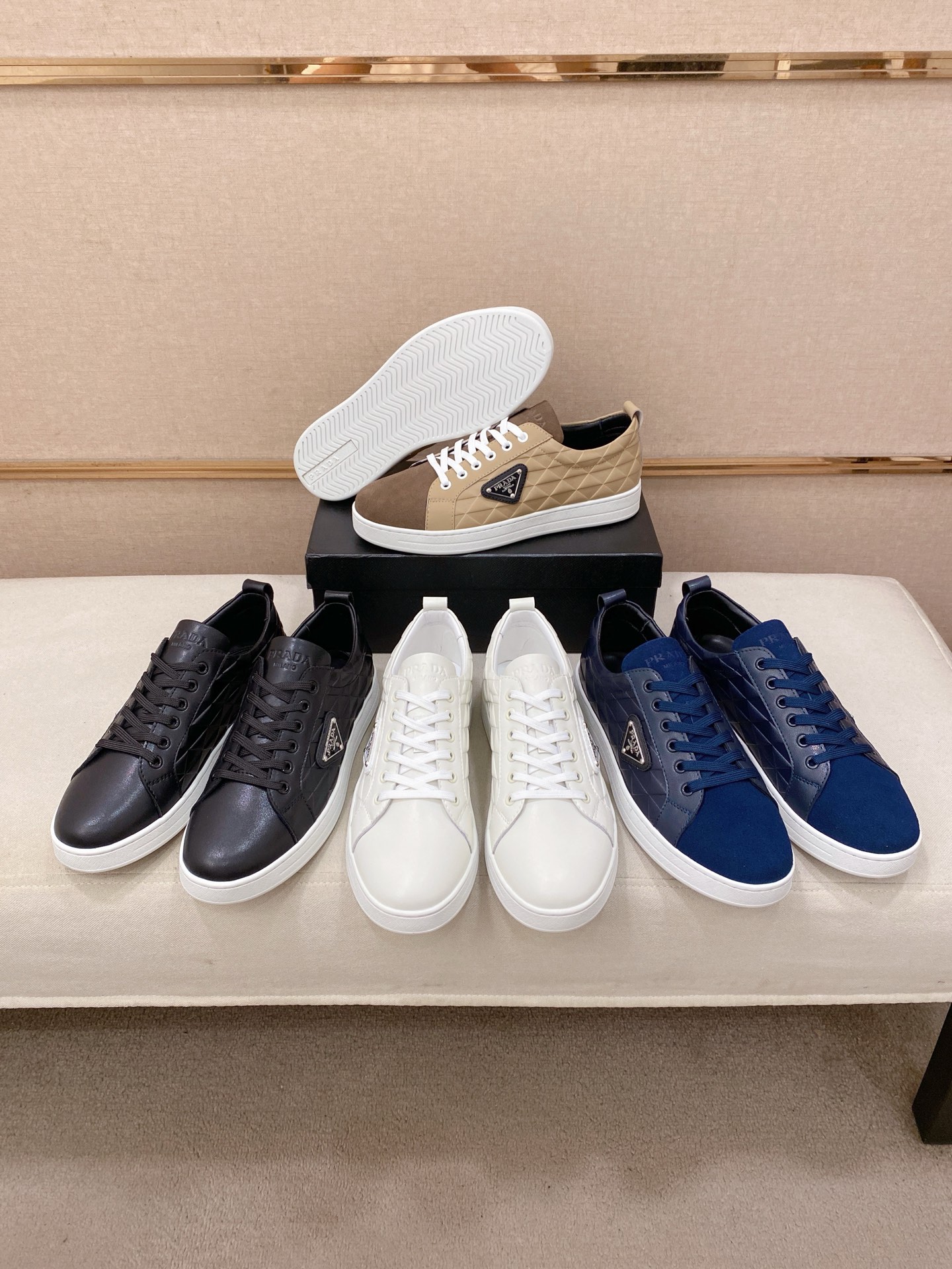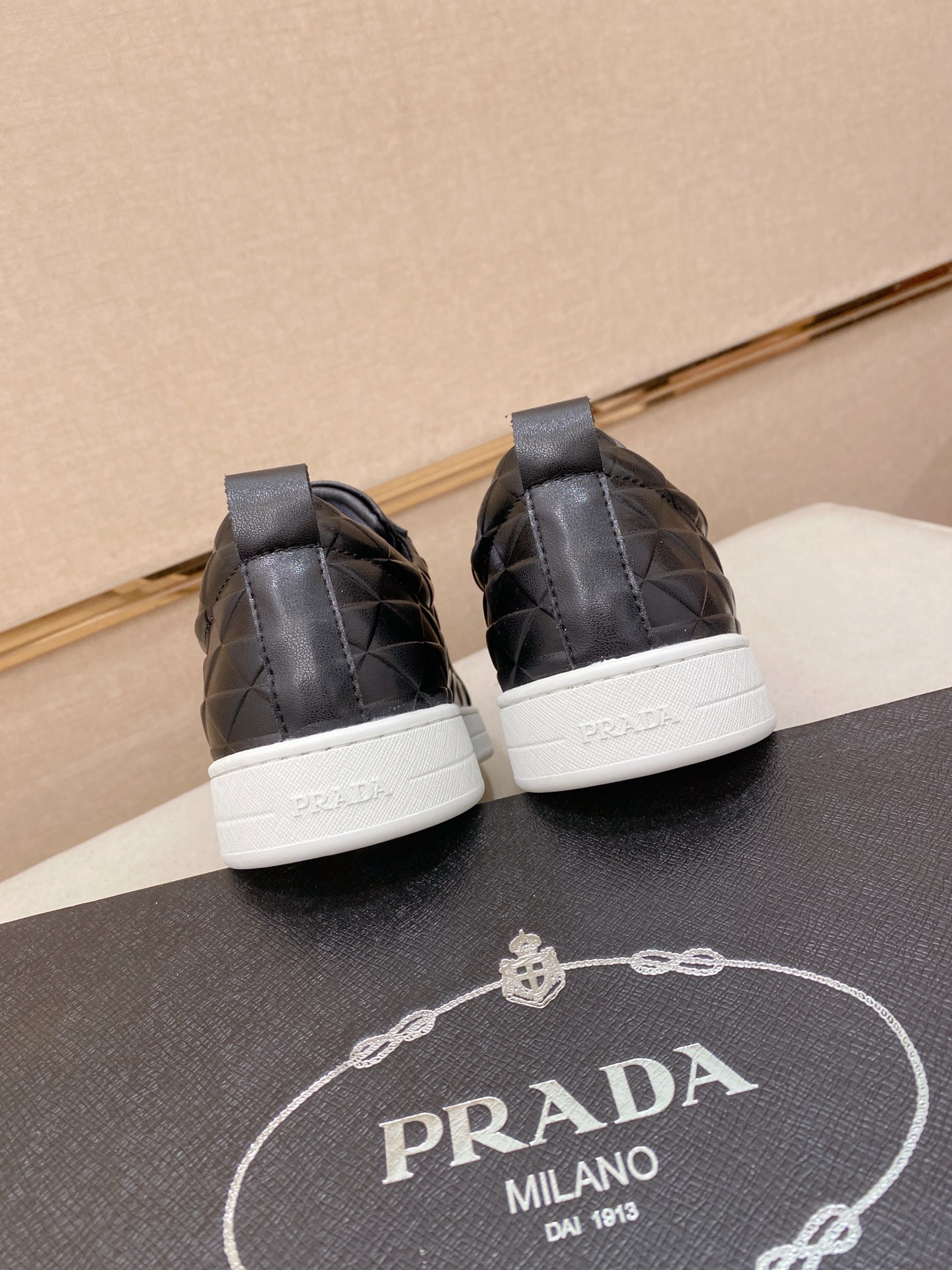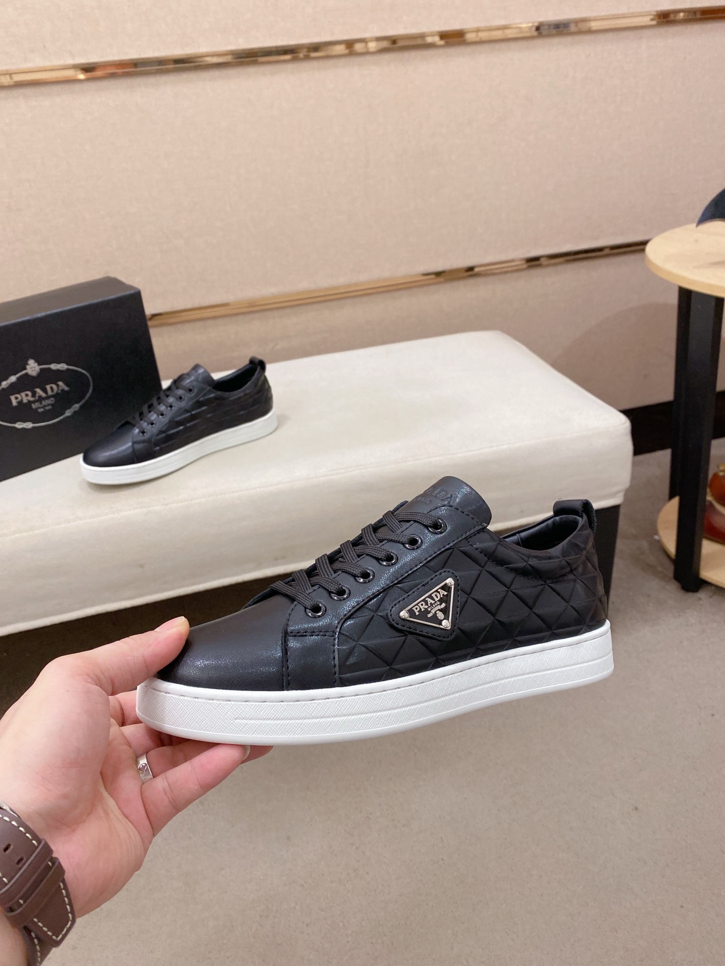 這款鞋子是AAAAA 1:1 質量(非常棒). 使用了和原版一模一樣的材料. 商標部分也保持了和普拉達/Prada一樣. 圖片拍攝是實物鞋子拍攝, 您所收到的實物保證和我們圖片一模一樣.