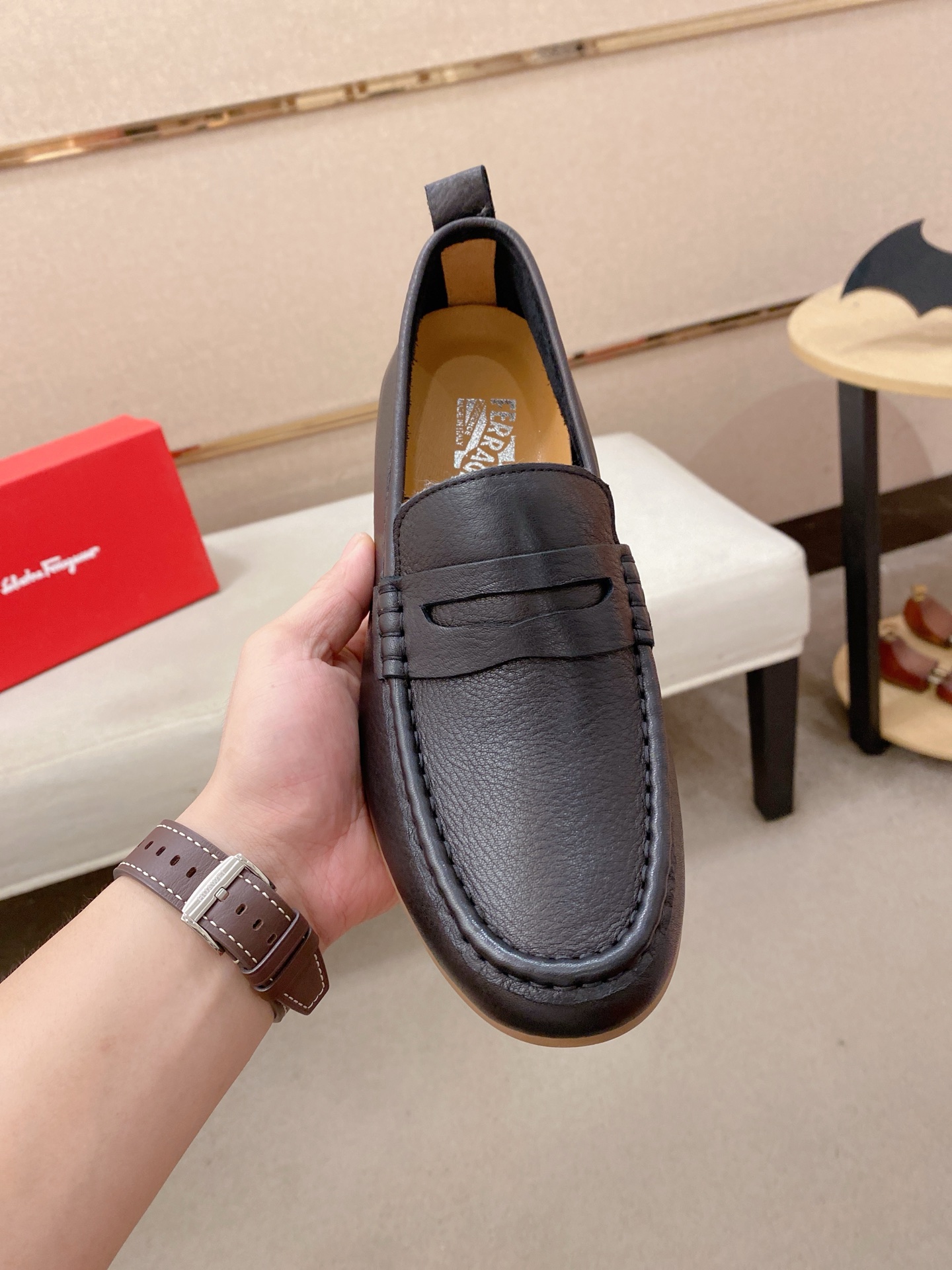 這款鞋子是AAAAA 1:1 質量(非常棒). 使用了和原版一模一樣的材料. 商標部分也保持了和菲拉格慕/Salvatore Ferragamo一樣. 圖片拍攝是實物鞋子拍攝, 您所收到的實物保證和我們圖片一模一樣.