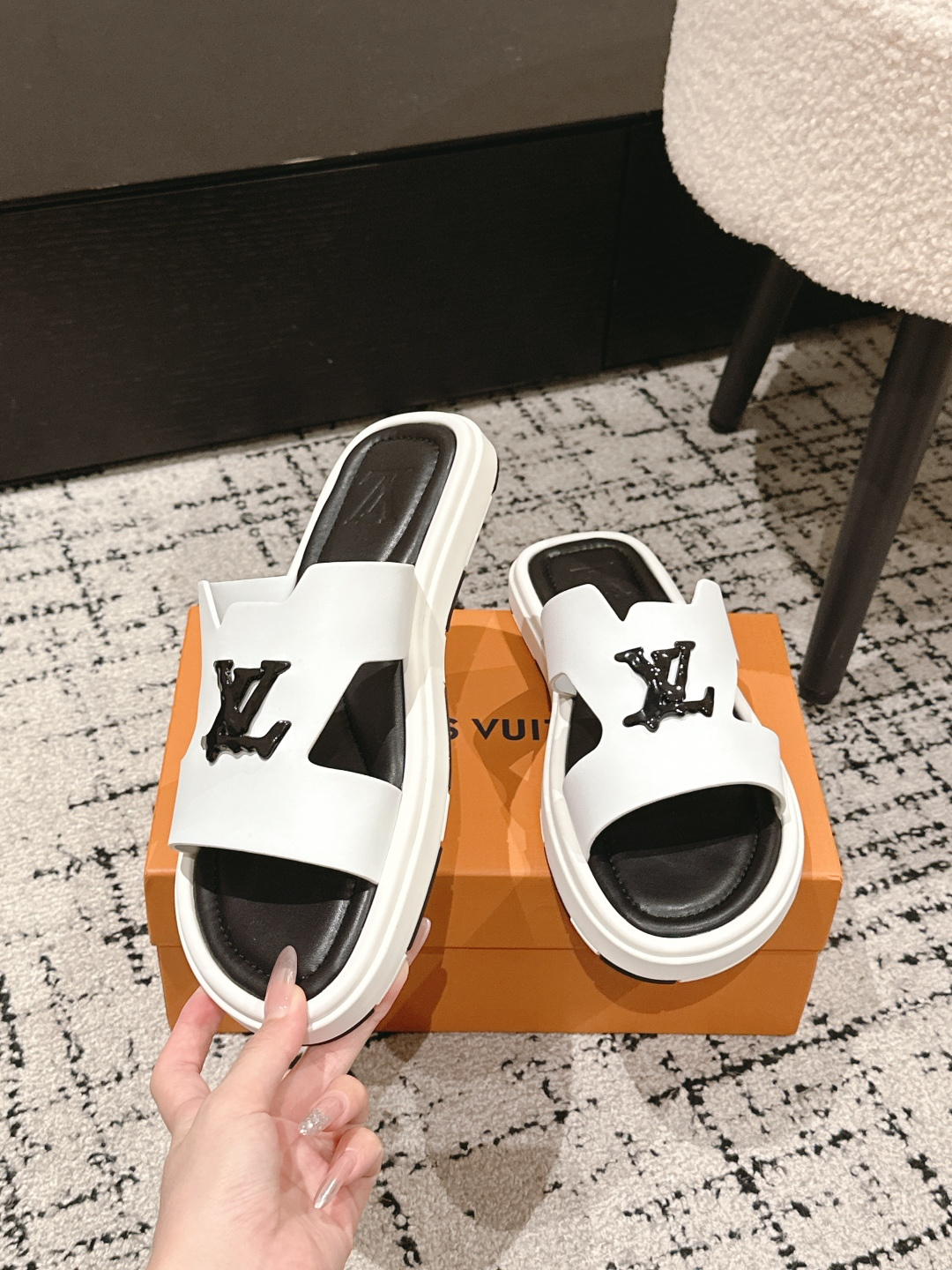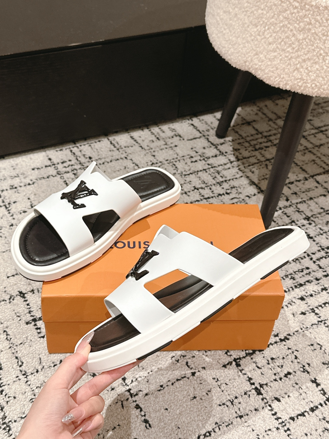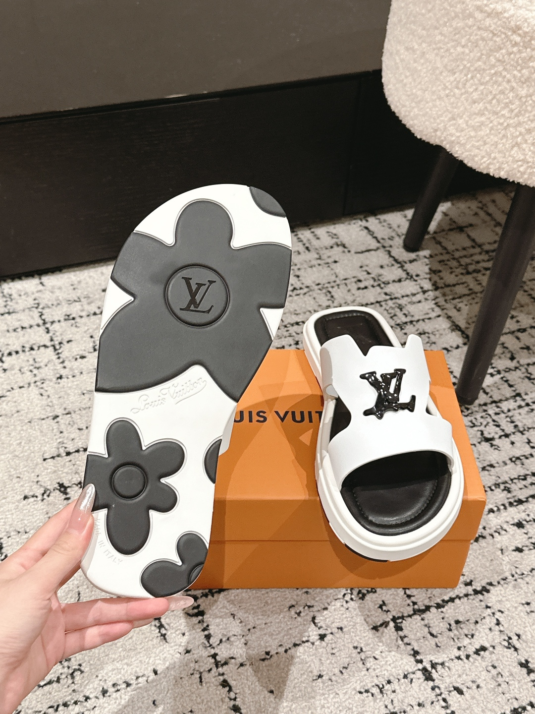 這款鞋子是AAAAA 1:1 質量(非常棒). 使用了和原版一模一樣的材料. 商標部分也保持了和路易威登/Louis Vuitton一樣. 圖片拍攝是實物鞋子拍攝, 您所收到的實物保證和我們圖片一模一樣.