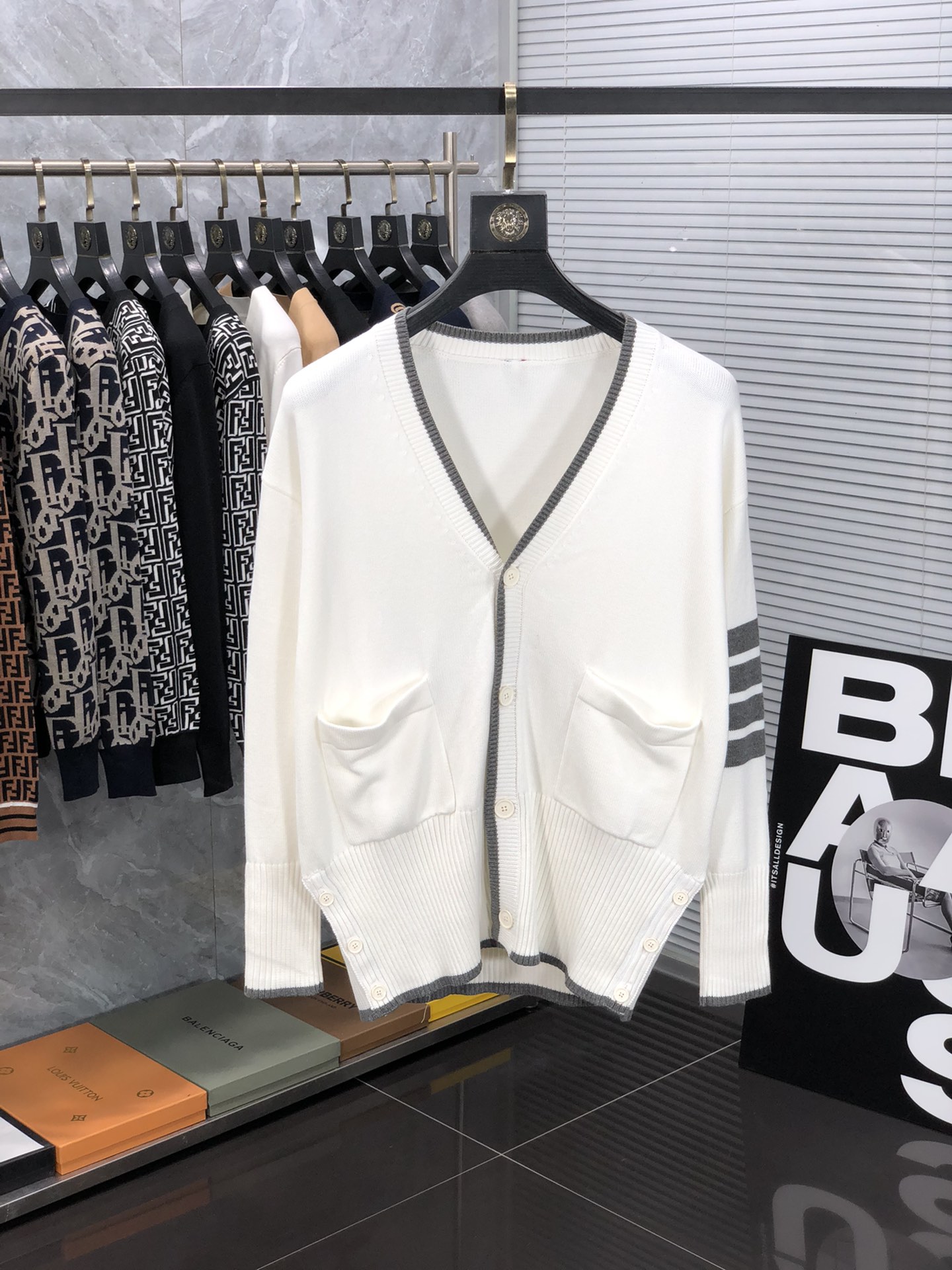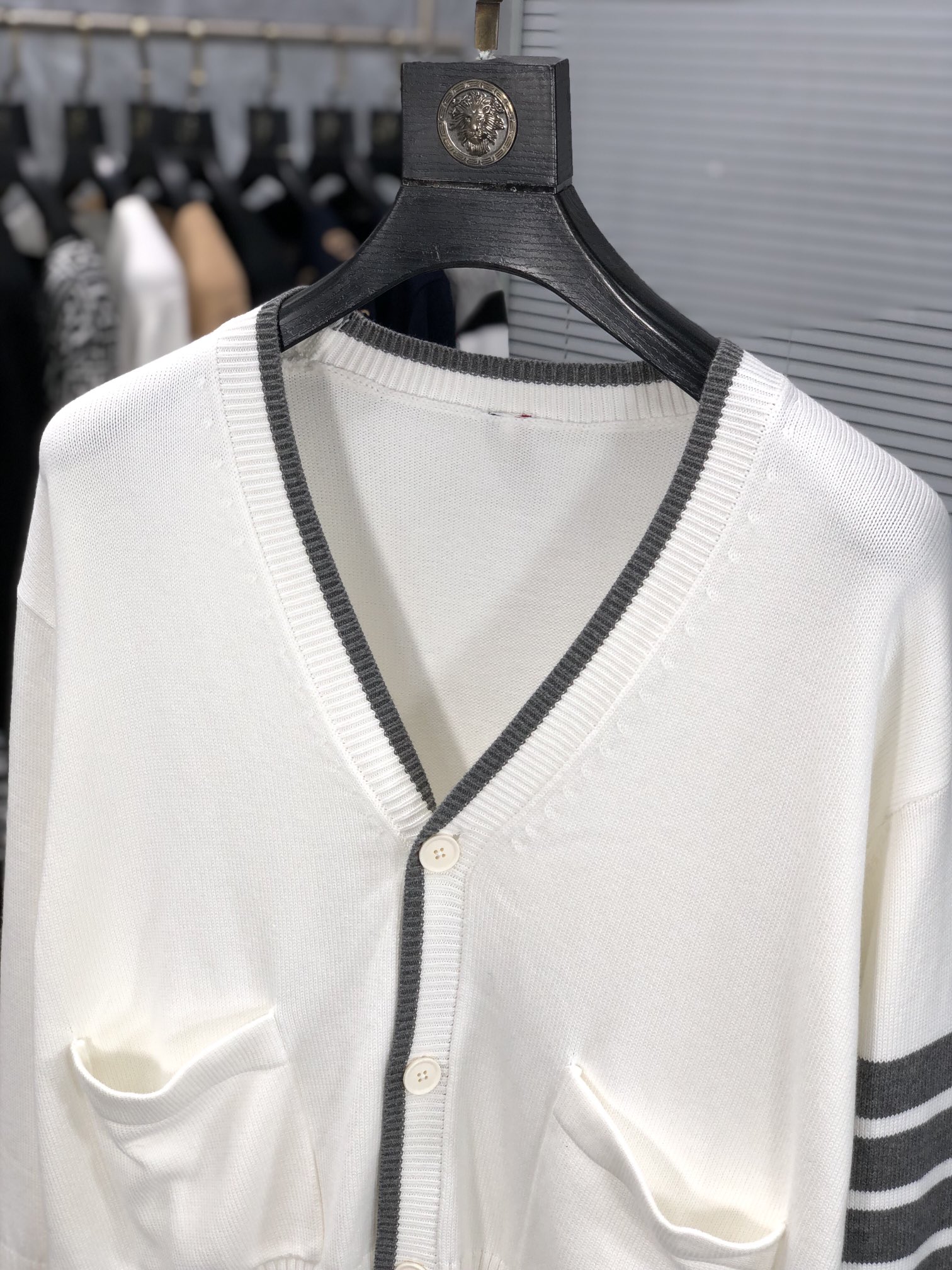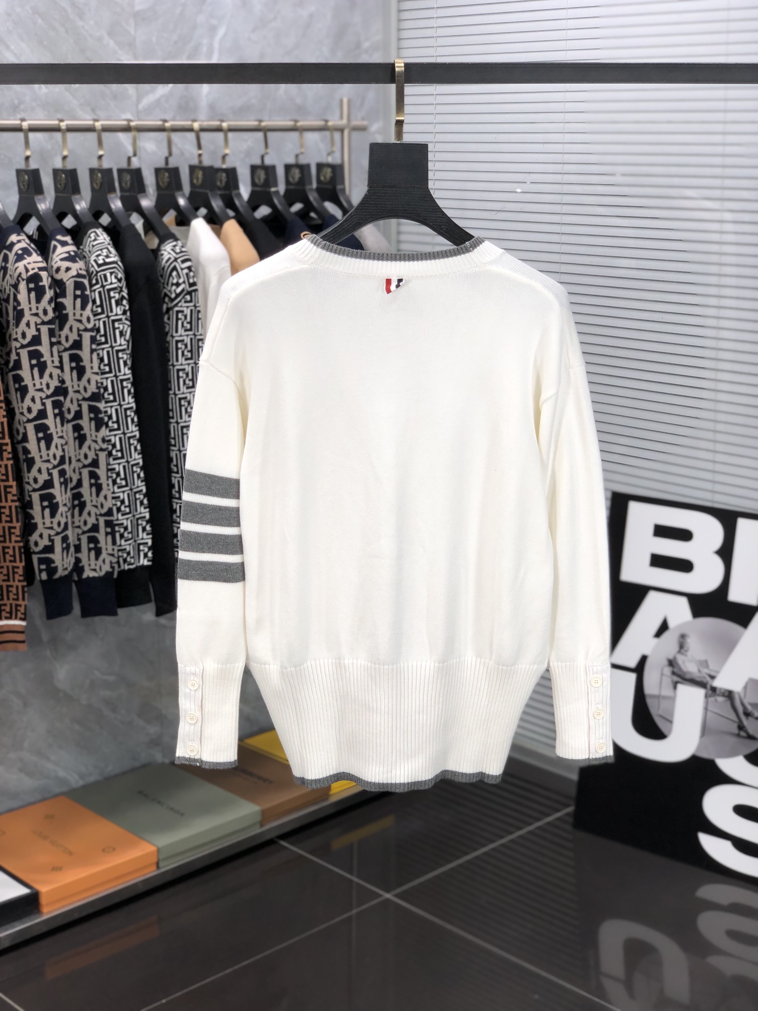 這款衣服是AAAAA 1:1 質量(非常棒). 使用了和原版一模一樣的材料. 商標部分也保持了和湯姆布朗/Thom Browne一樣. 圖片拍攝是實物衣服拍攝, 您所收到的實物保證和我們圖片一模一樣.