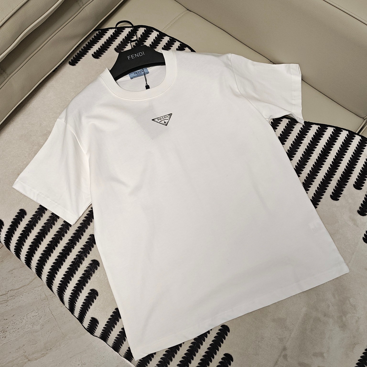 這款衣服是AAAAA 1:1 質量(非常棒). 使用了和原版一模一樣的材料. 商標部分也保持了和普拉達/Prada一樣. 圖片拍攝是實物衣服拍攝, 您所收到的實物保證和我們圖片一模一樣.