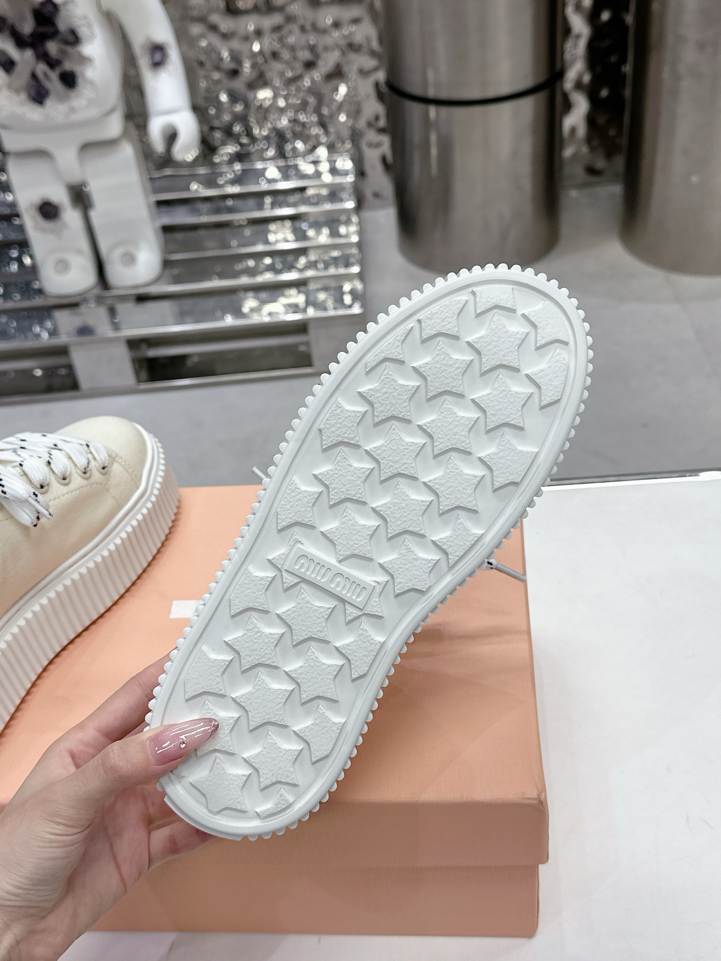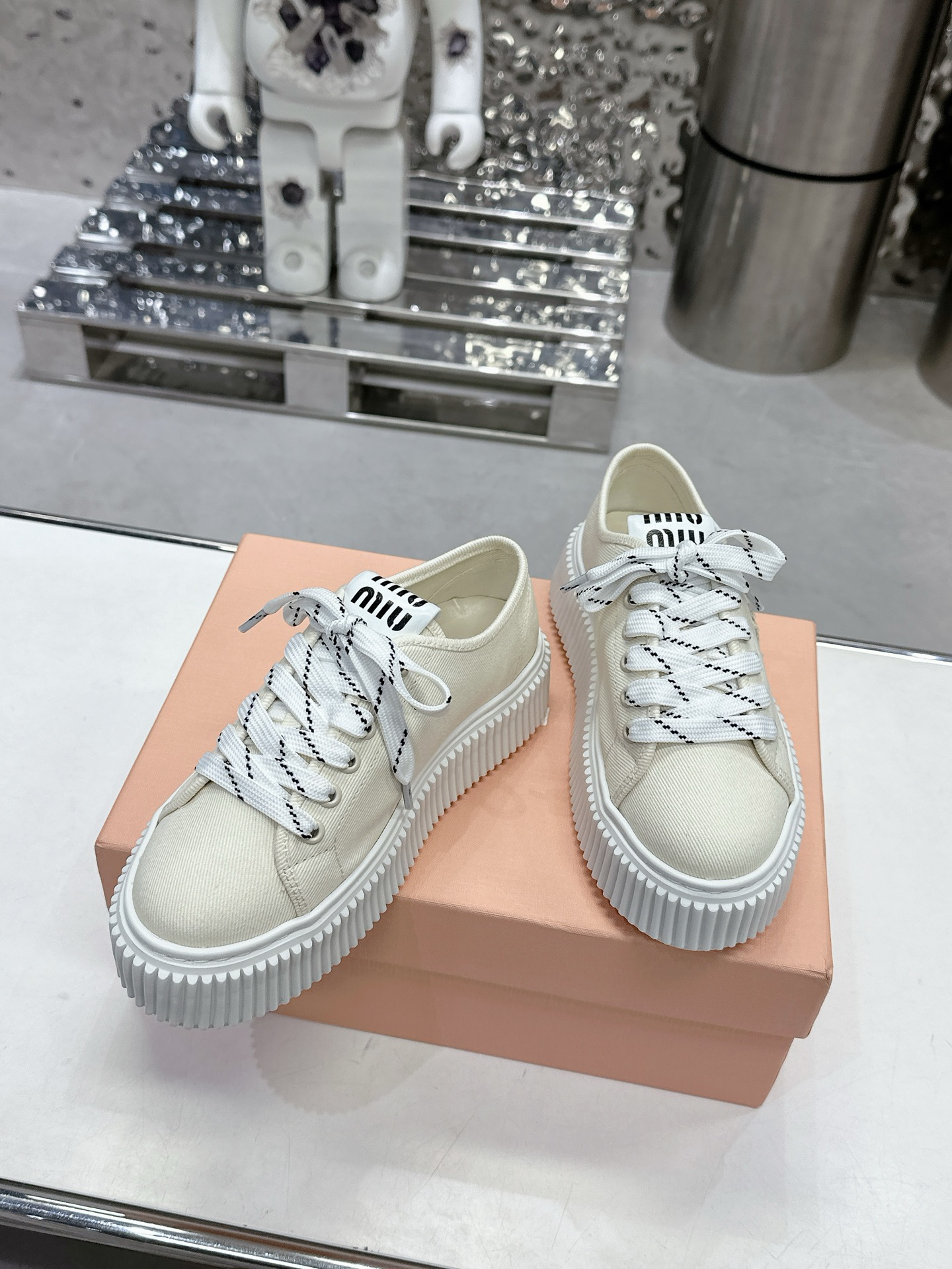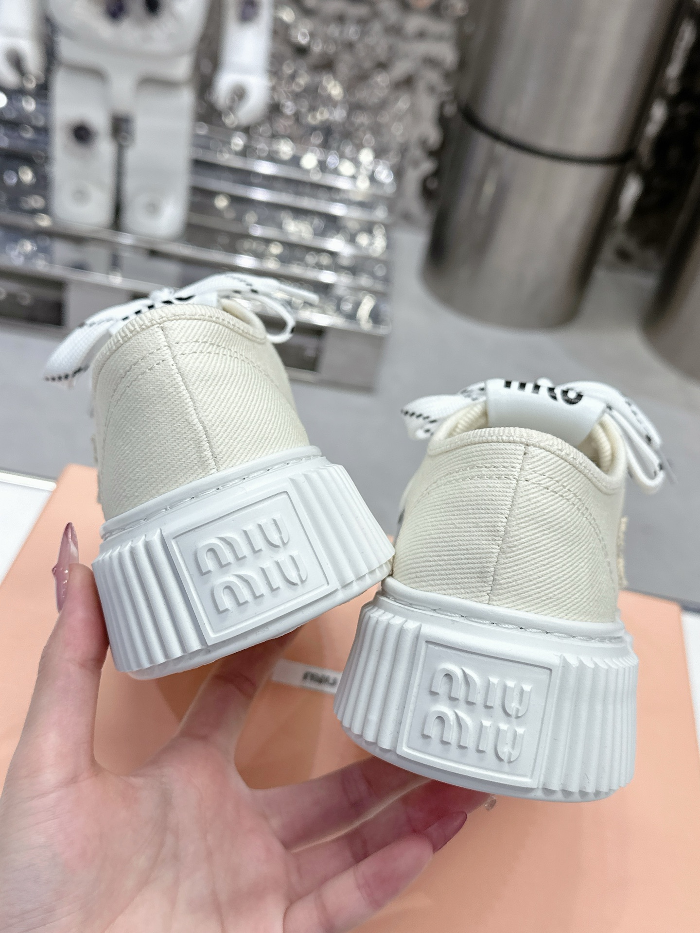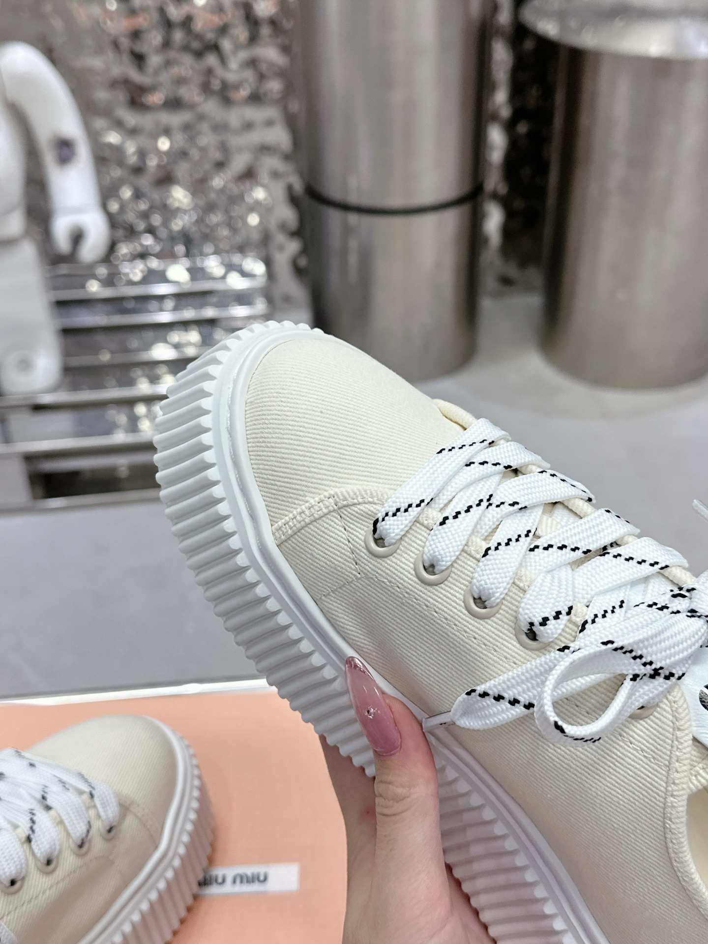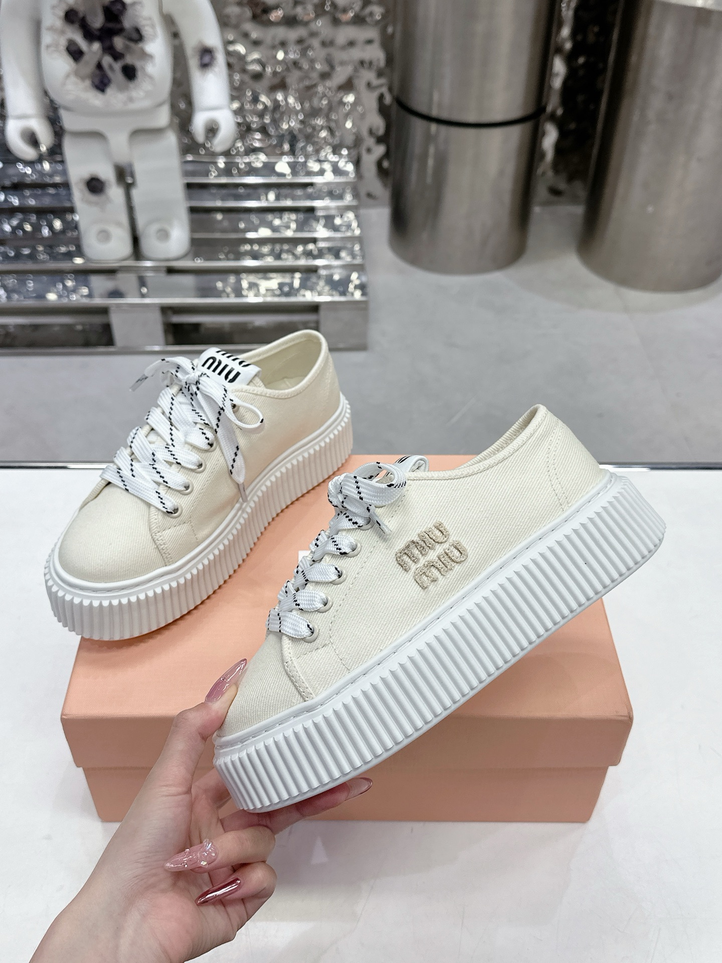 這款鞋子是AAAAA 1:1 質量(非常棒). 使用了和原版一模一樣的材料. 商標部分也保持了和繆繆/Miu Miu一樣. 圖片拍攝是實物鞋子拍攝, 您所收到的實物保證和我們圖片一模一樣.