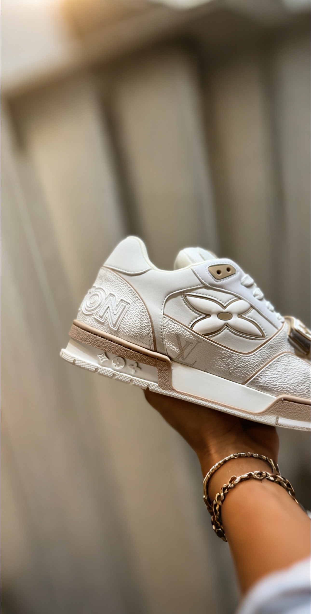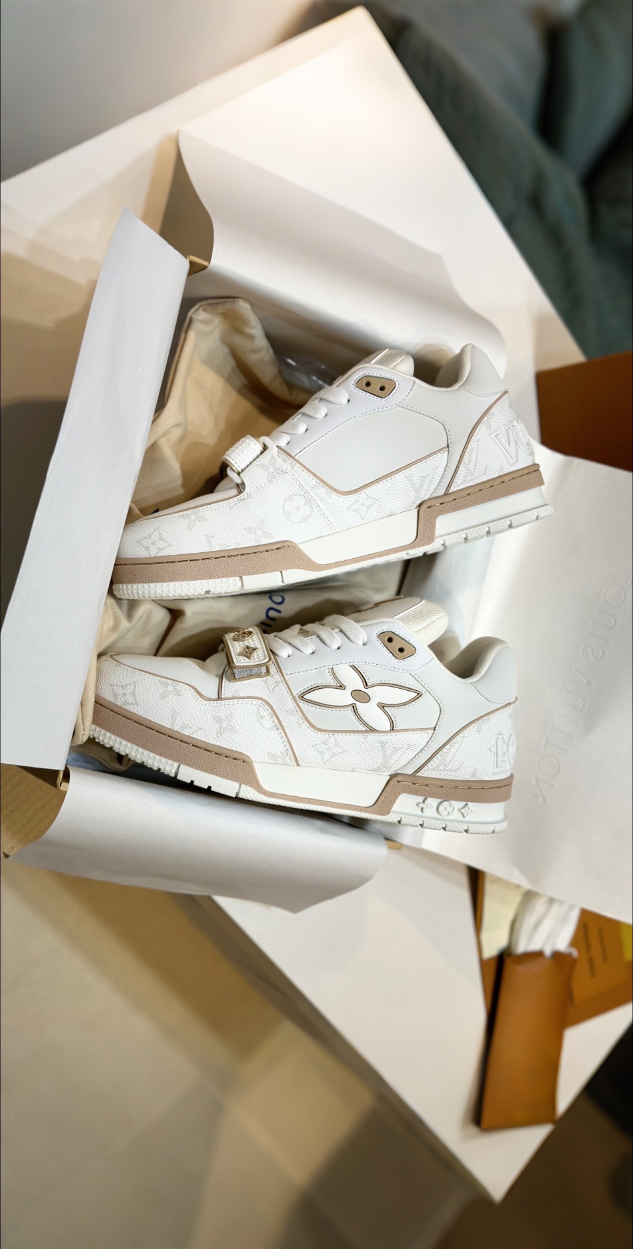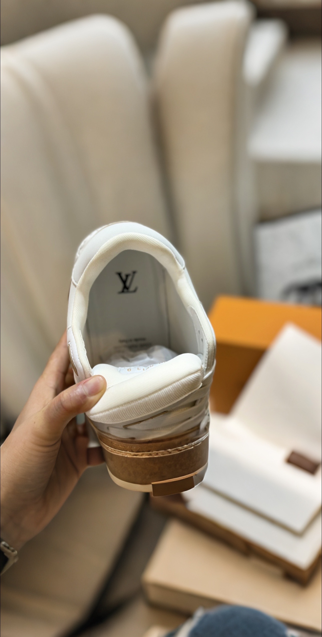 這款鞋子是AAAAA 1:1 質量(非常棒). 使用了和原版一模一樣的材料. 商標部分也保持了和路易威登/Louis Vuitton一樣. 圖片拍攝是實物鞋子拍攝, 您所收到的實物保證和我們圖片一模一樣.