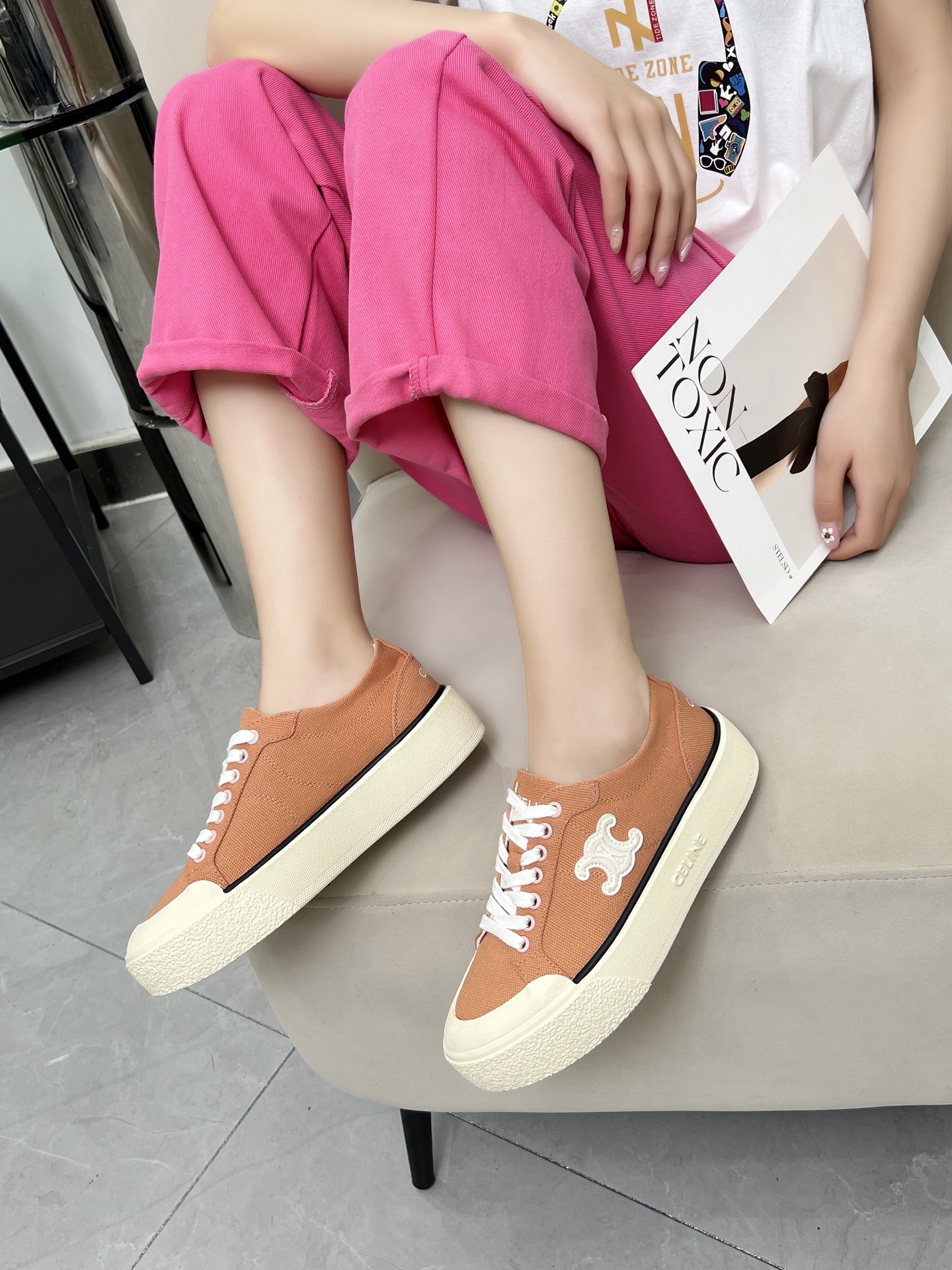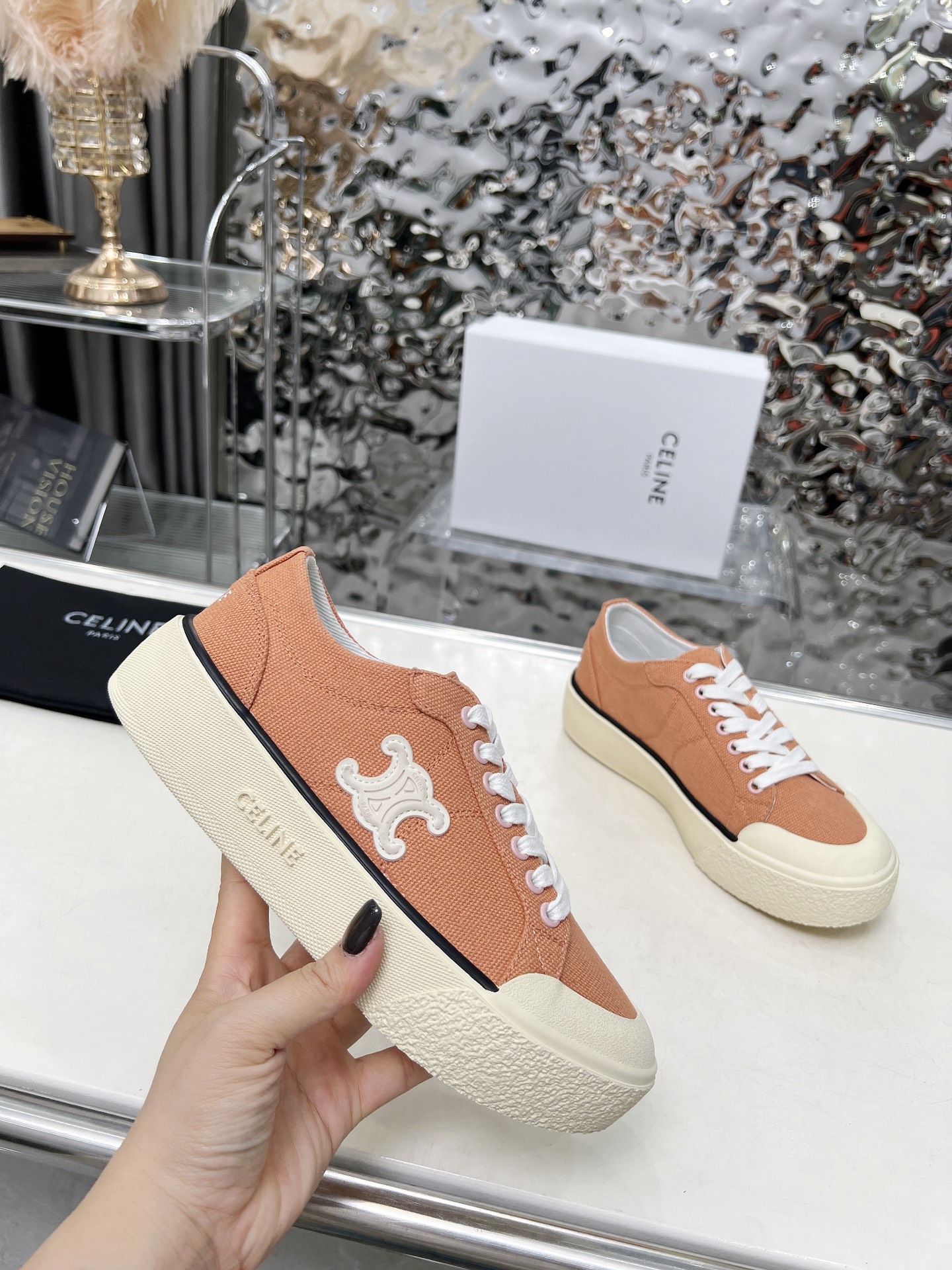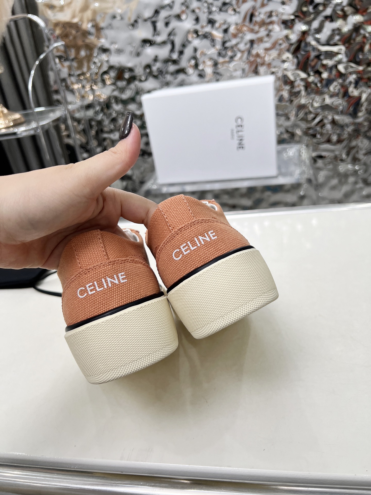 這款鞋子是AAAAA 1:1 質量(非常棒). 使用了和原版一模一樣的材料. 商標部分也保持了和思琳/赛琳/Celine一樣. 圖片拍攝是實物鞋子拍攝, 您所收到的實物保證和我們圖片一模一樣.
