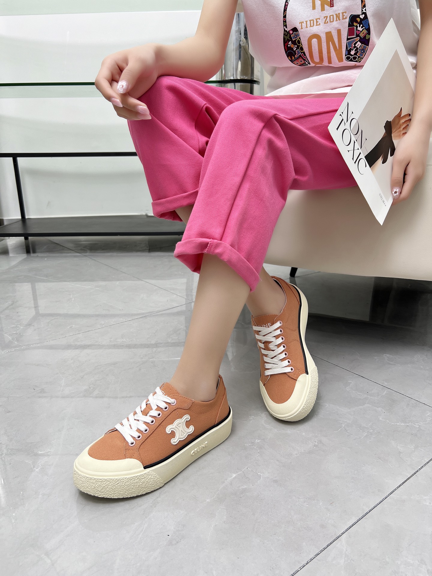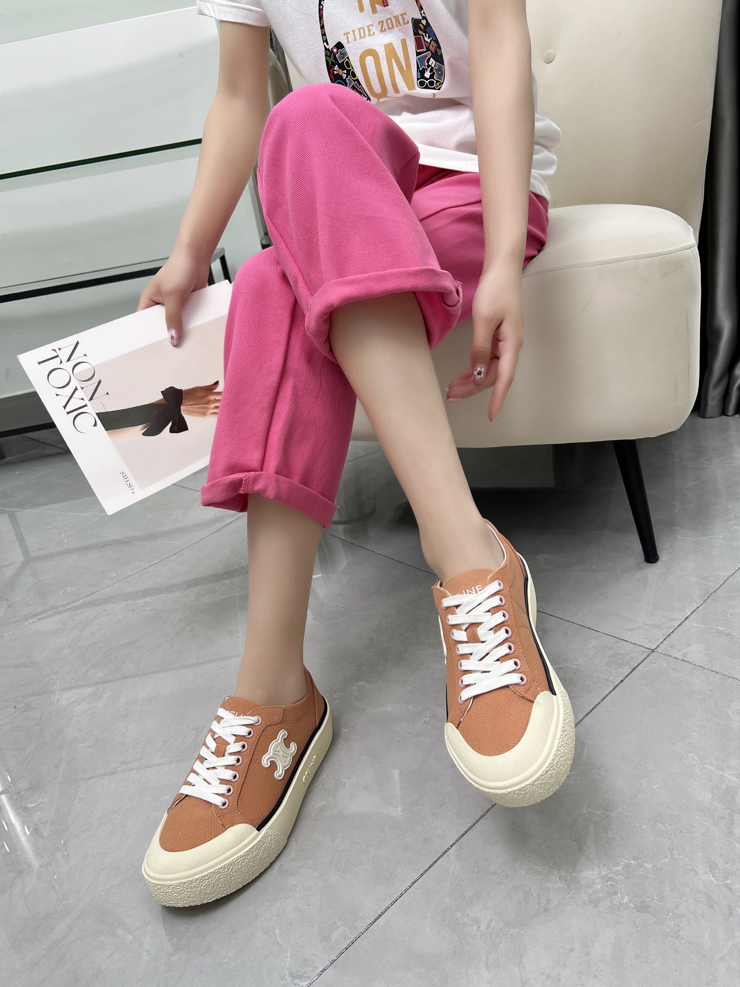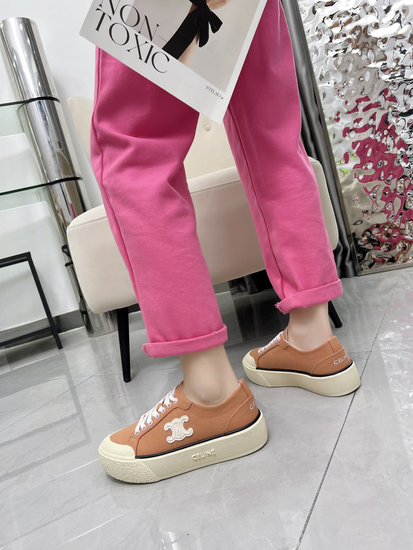 這款鞋子是AAAAA 1:1 質量(非常棒). 使用了和原版一模一樣的材料. 商標部分也保持了和思琳/赛琳/Celine一樣. 圖片拍攝是實物鞋子拍攝, 您所收到的實物保證和我們圖片一模一樣.