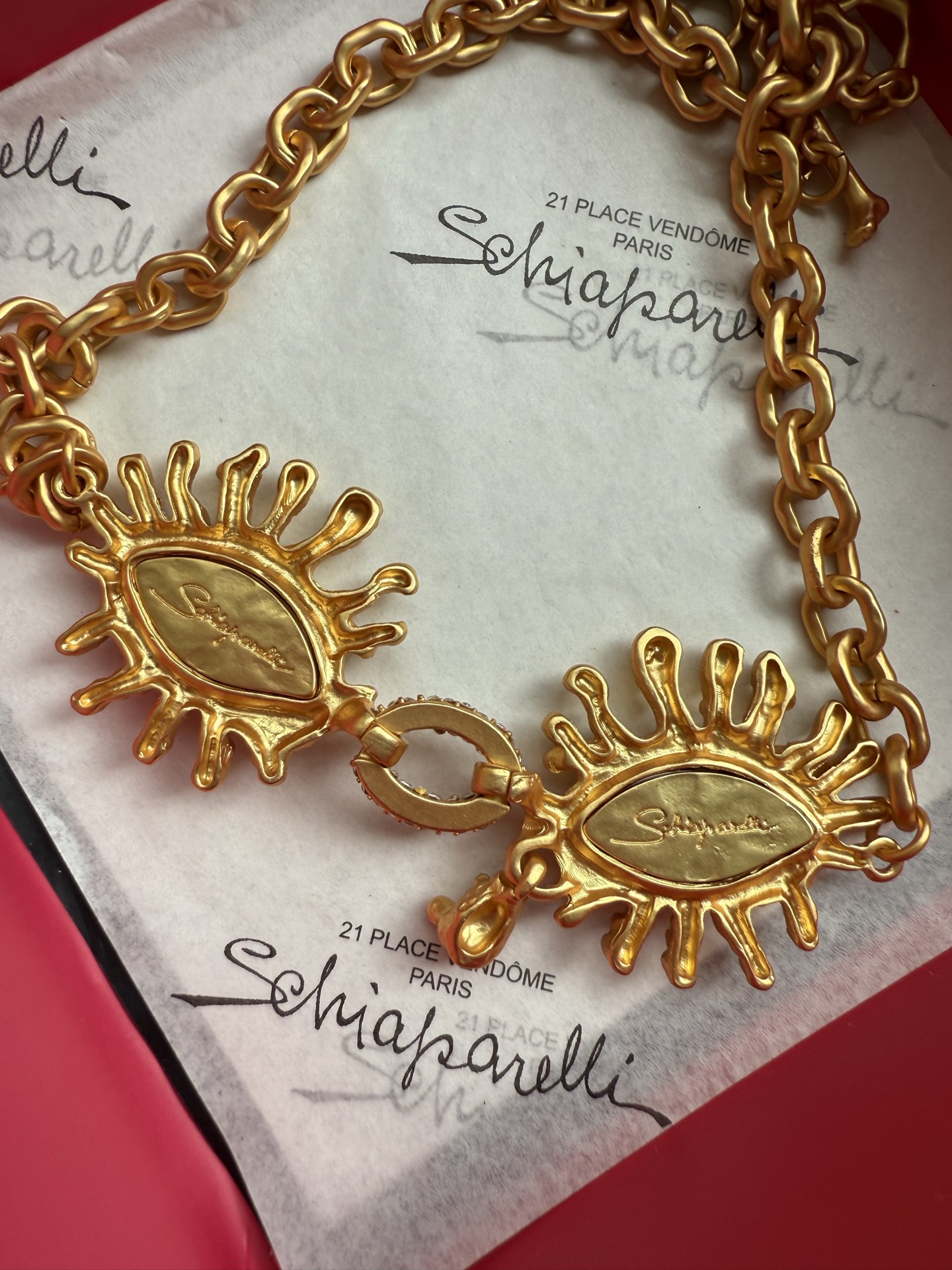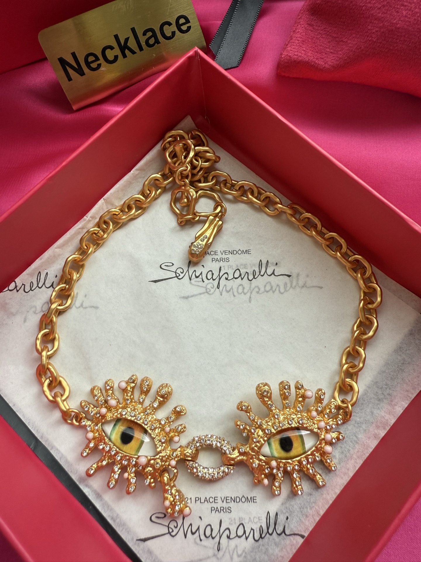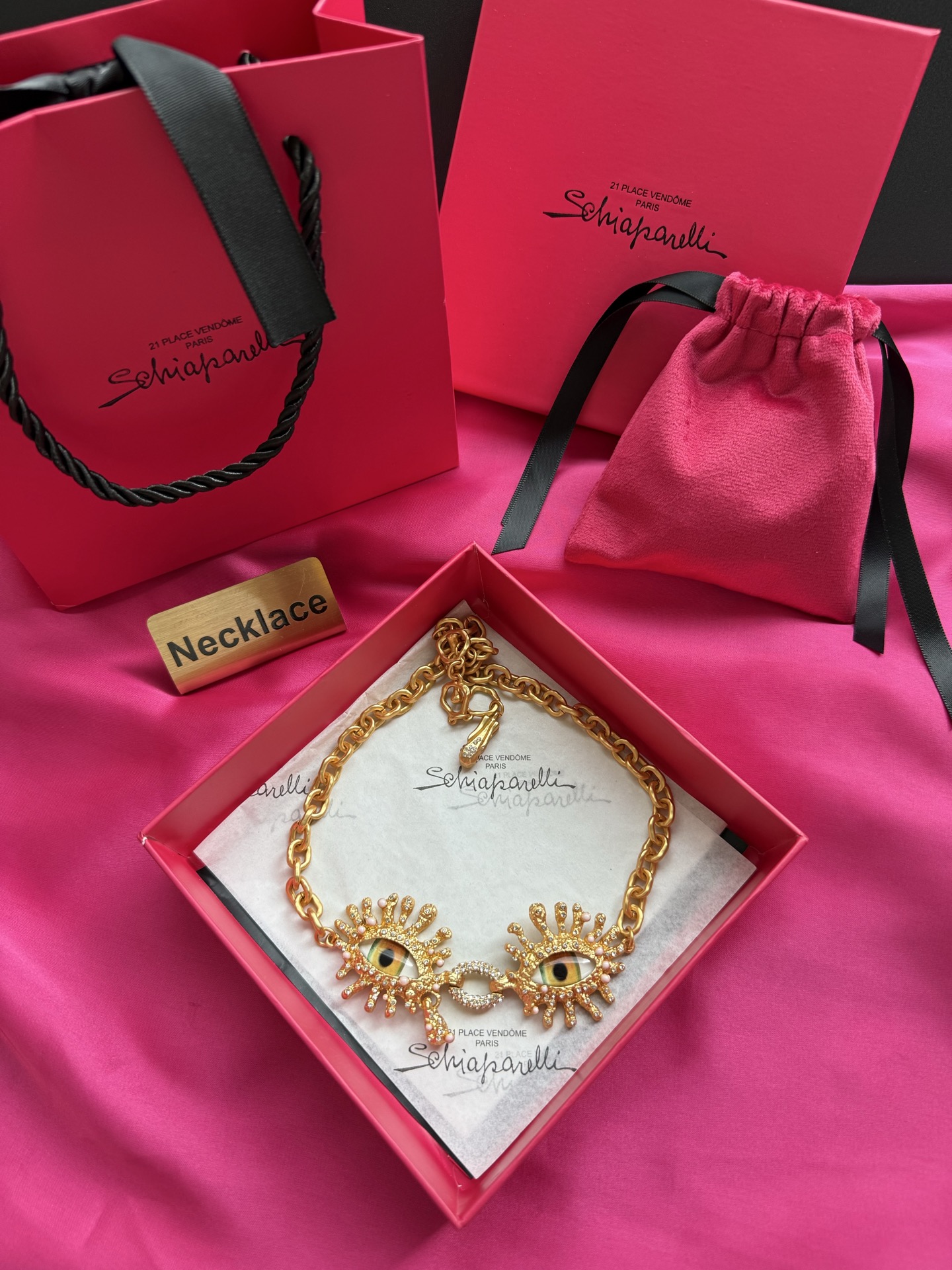這款首飾是AAAAA 1:1 質量(非常棒). 使用了和原版一模一樣的材料. 商標部分也保持了和Schiaparelli一樣. 圖片拍攝是實物首飾拍攝, 您所收到的實物保證和我們圖片一模一樣.