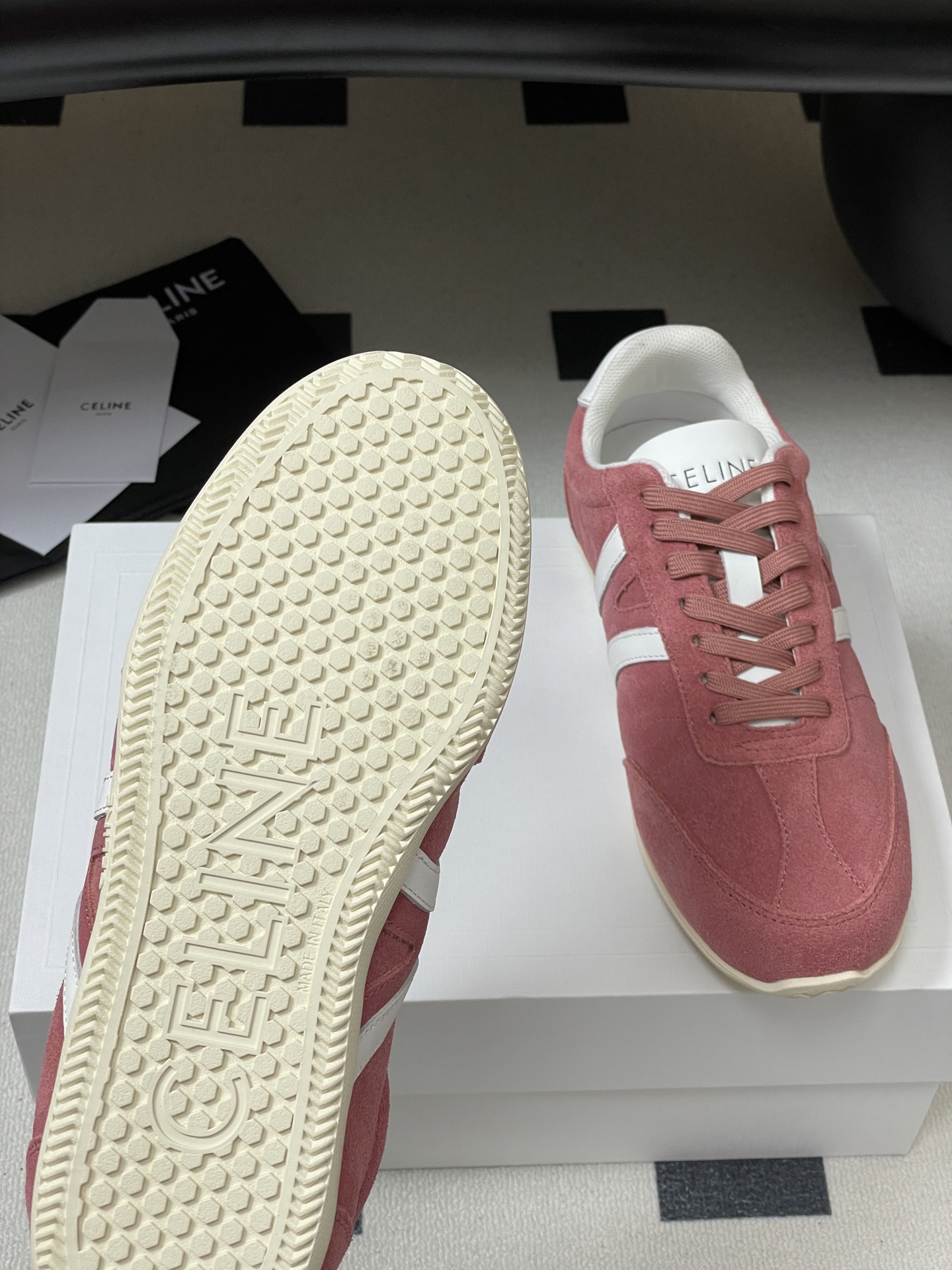 這款鞋子是AAAAA 1:1 質量(非常棒). 使用了和原版一模一樣的材料. 商標部分也保持了和思琳/赛琳/Celine一樣. 圖片拍攝是實物鞋子拍攝, 您所收到的實物保證和我們圖片一模一樣.