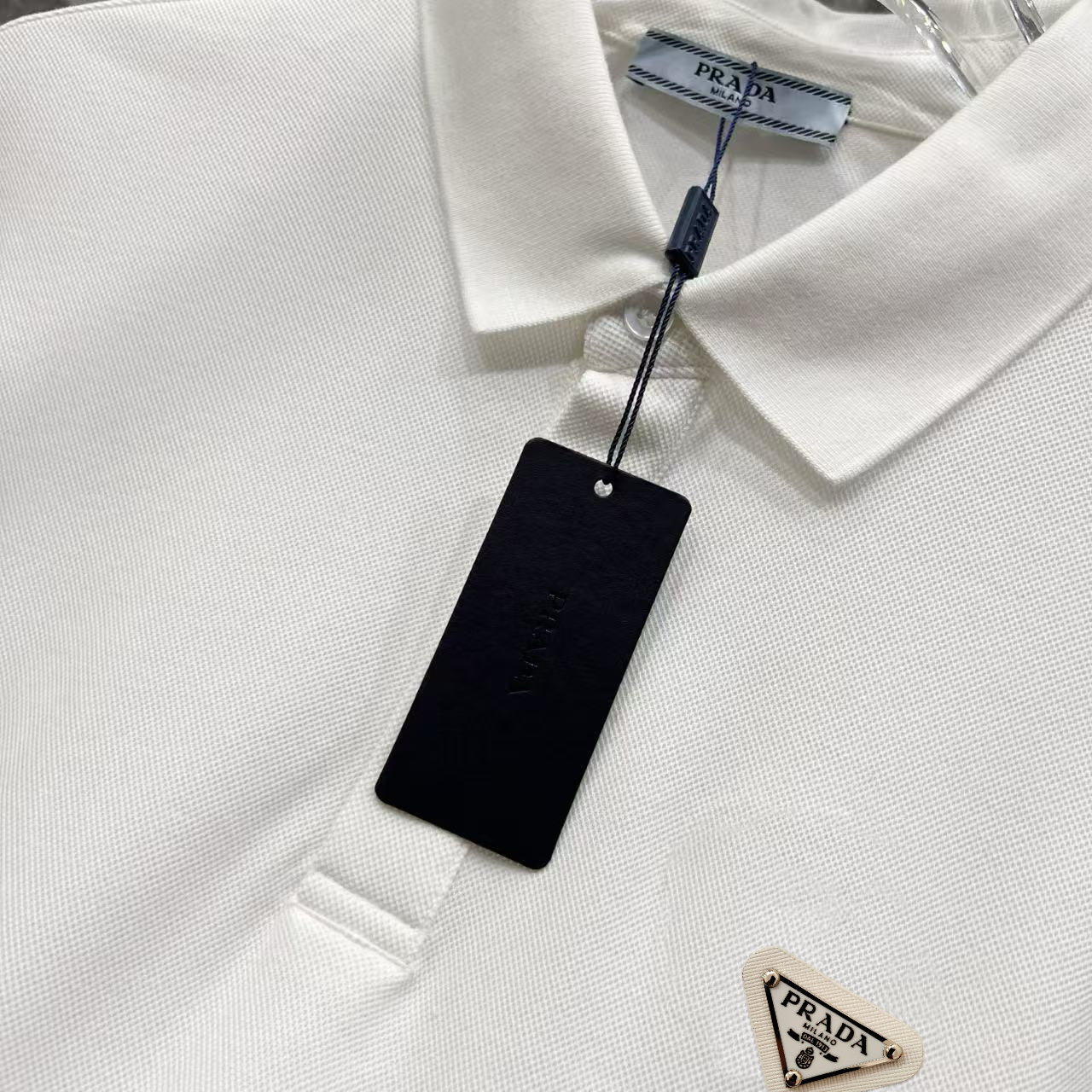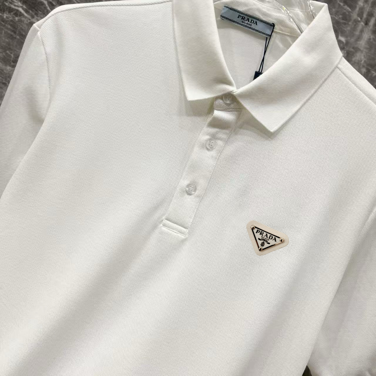 這款衣服是AAAAA 1:1 質量(非常棒). 使用了和原版一模一樣的材料. 商標部分也保持了和普拉達/Prada一樣. 圖片拍攝是實物衣服拍攝, 您所收到的實物保證和我們圖片一模一樣.