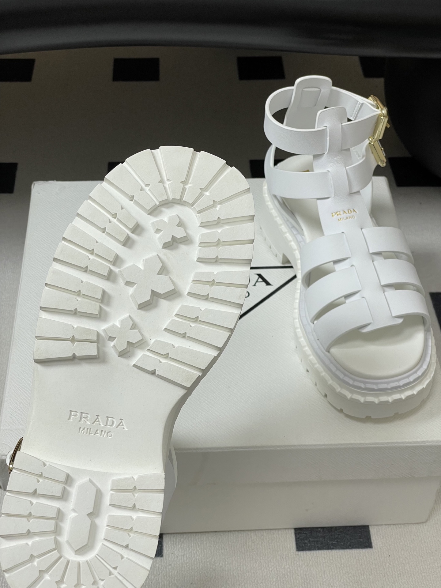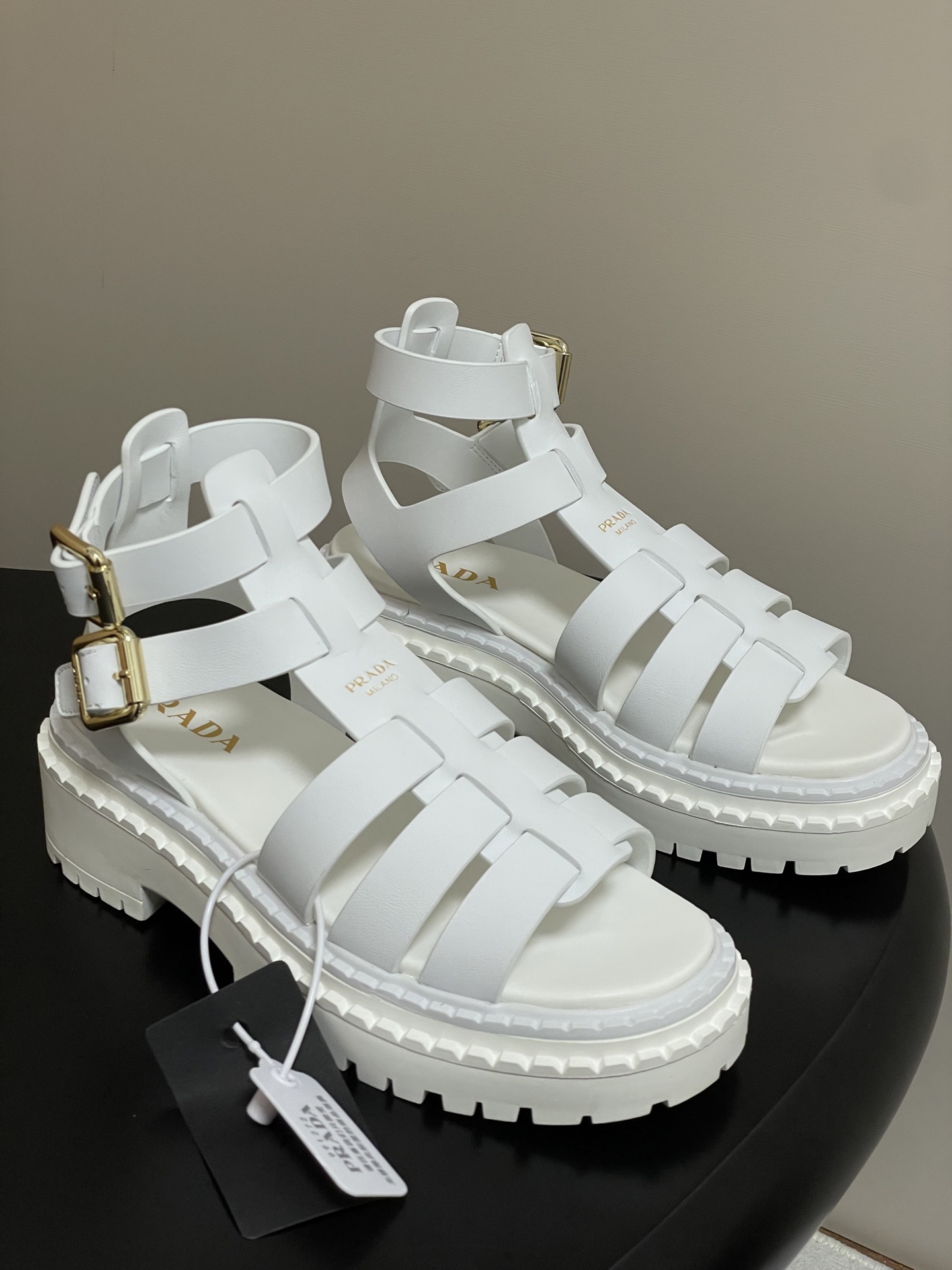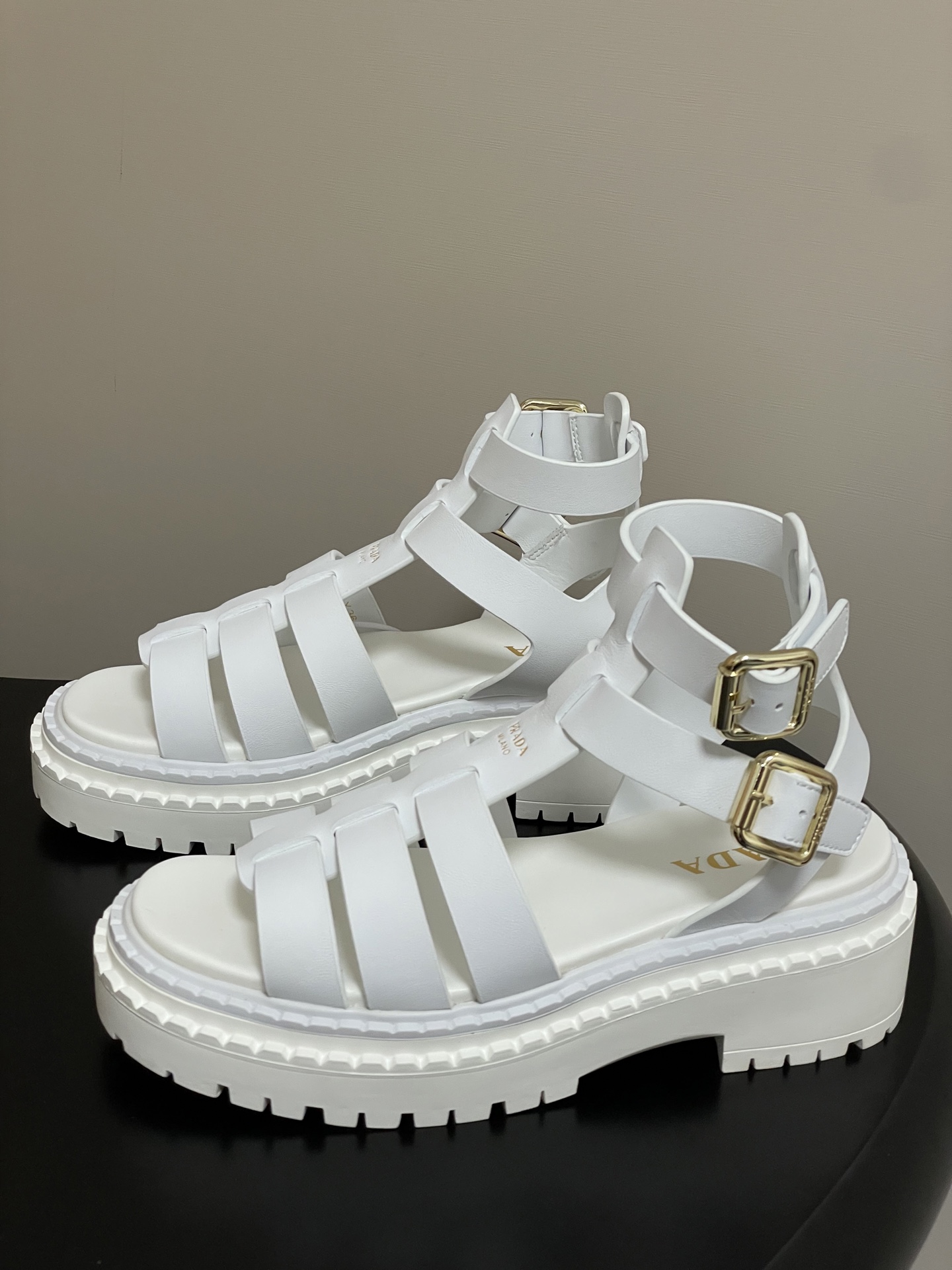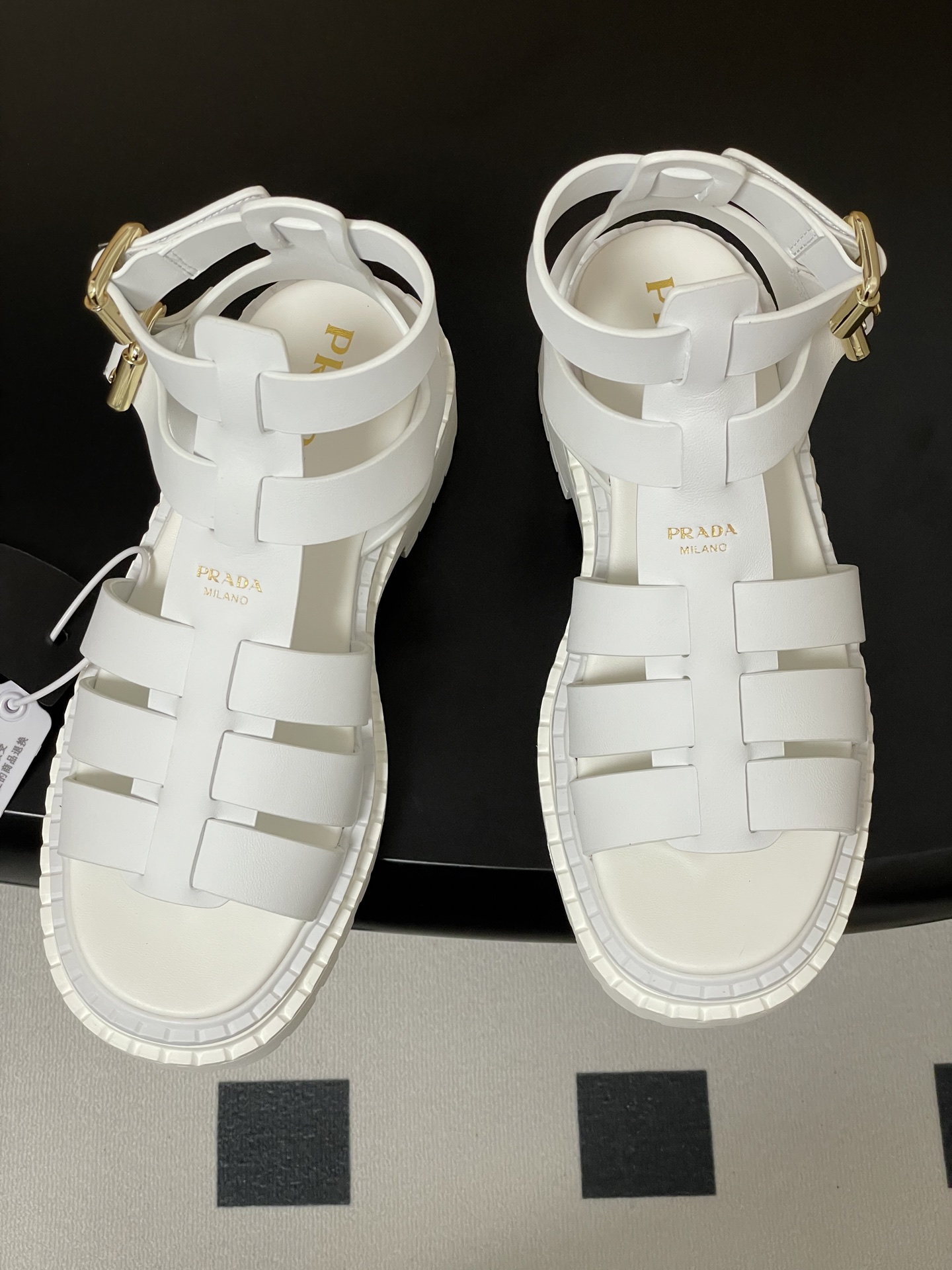 這款鞋子是AAAAA 1:1 質量(非常棒). 使用了和原版一模一樣的材料. 商標部分也保持了和普拉達/Prada一樣. 圖片拍攝是實物鞋子拍攝, 您所收到的實物保證和我們圖片一模一樣.